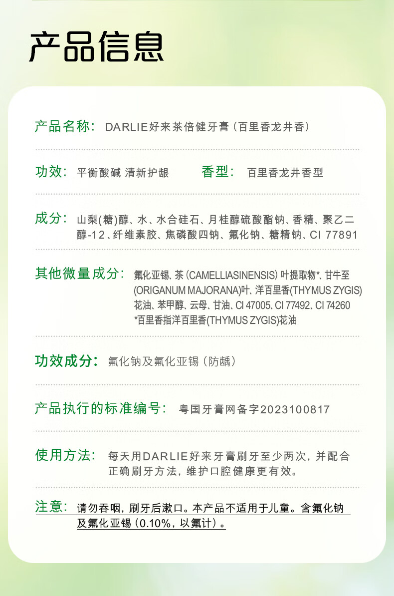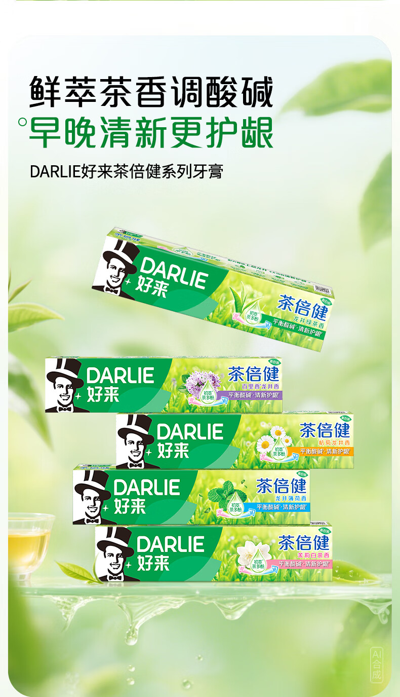 好来(DARLIE)(原黑人)茶倍健百里香龙井牙膏清新口气健齿190g新旧包装随机
