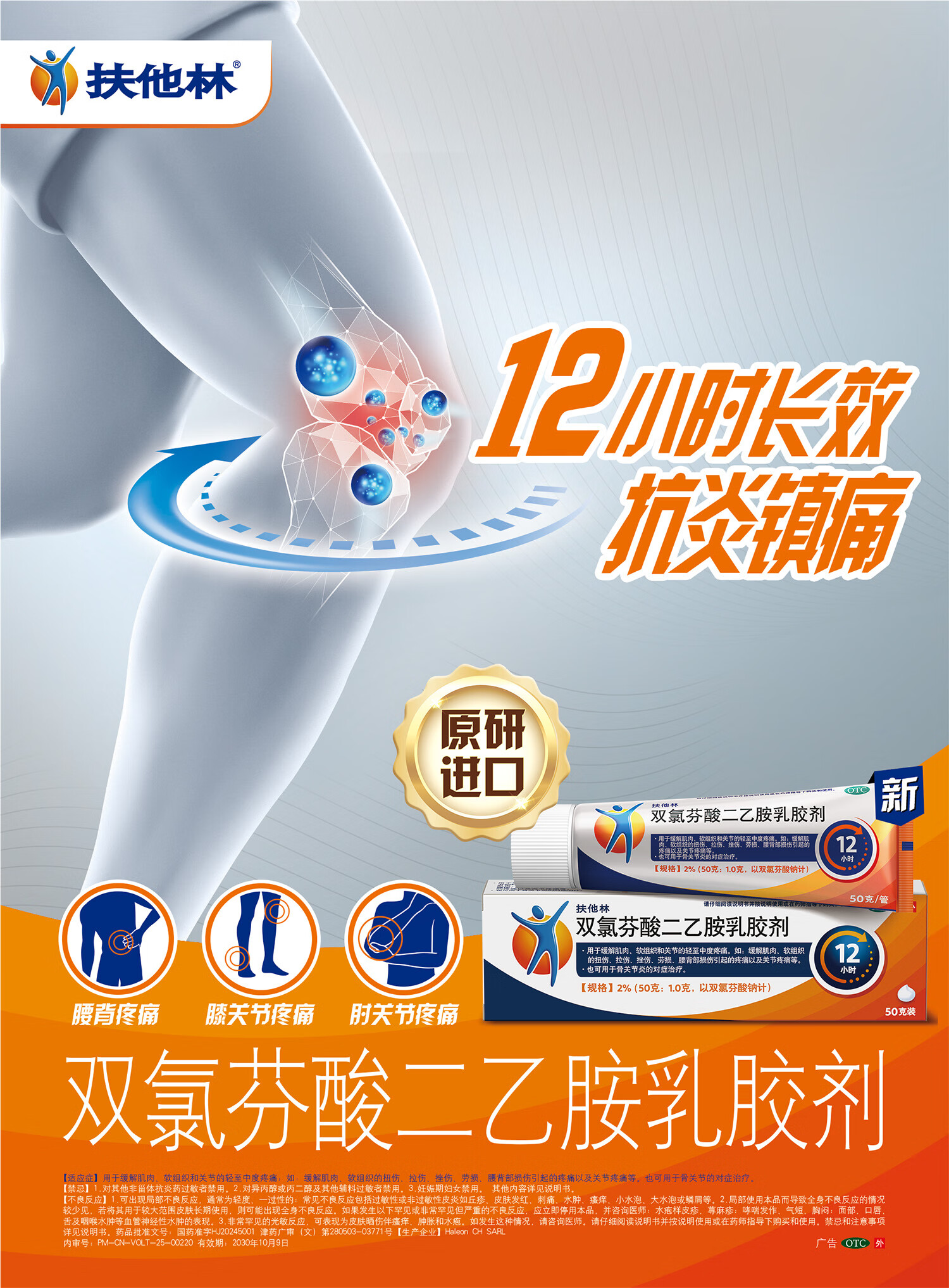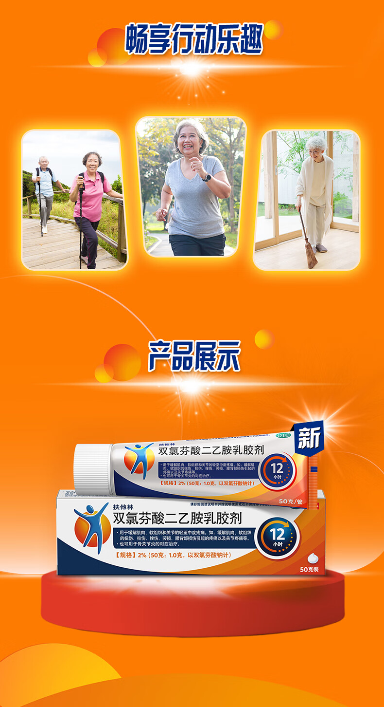 【原研进口】扶他林 双氯芬酸二乙胺乳胶剂 2%*50g 缓解肌肉关节疼痛软组织扭伤拉伤挫伤腰背部损伤骨关节炎