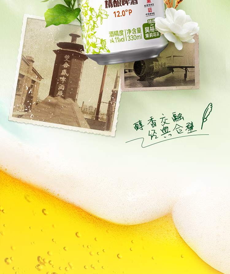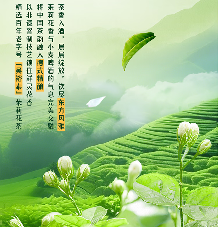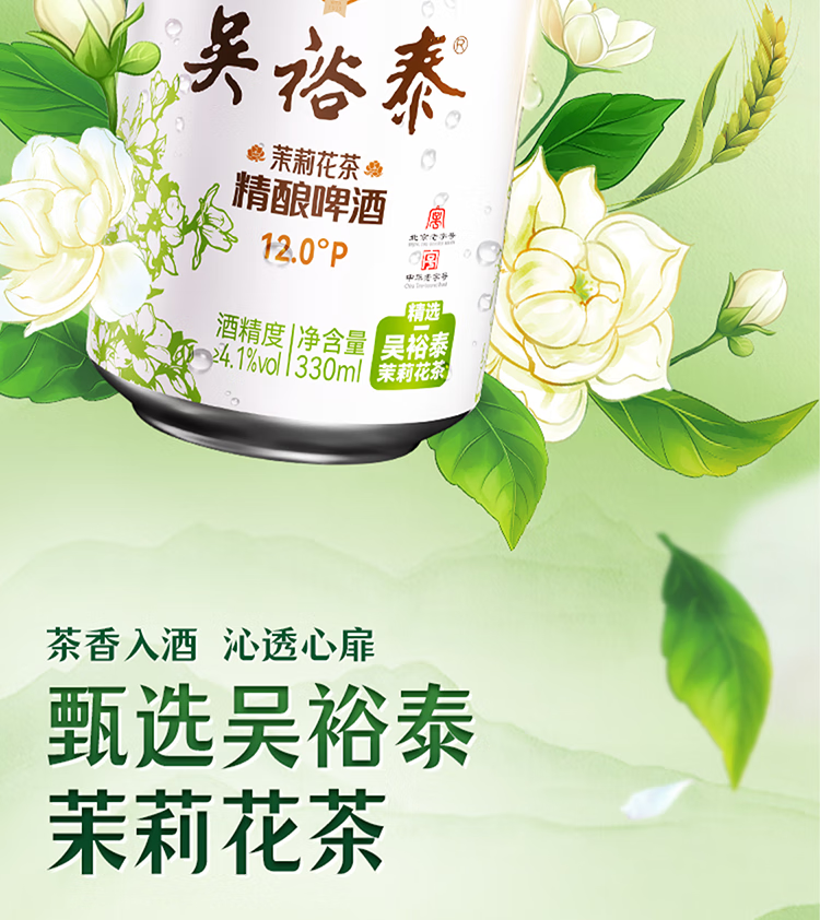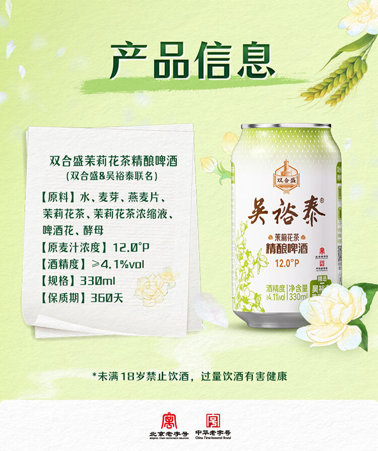 双合盛精酿啤酒 茉莉花茶啤 吴裕泰联名款 茶韵入酒 330mL 12罐 整箱装