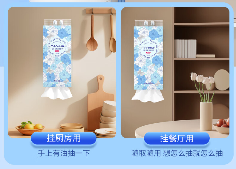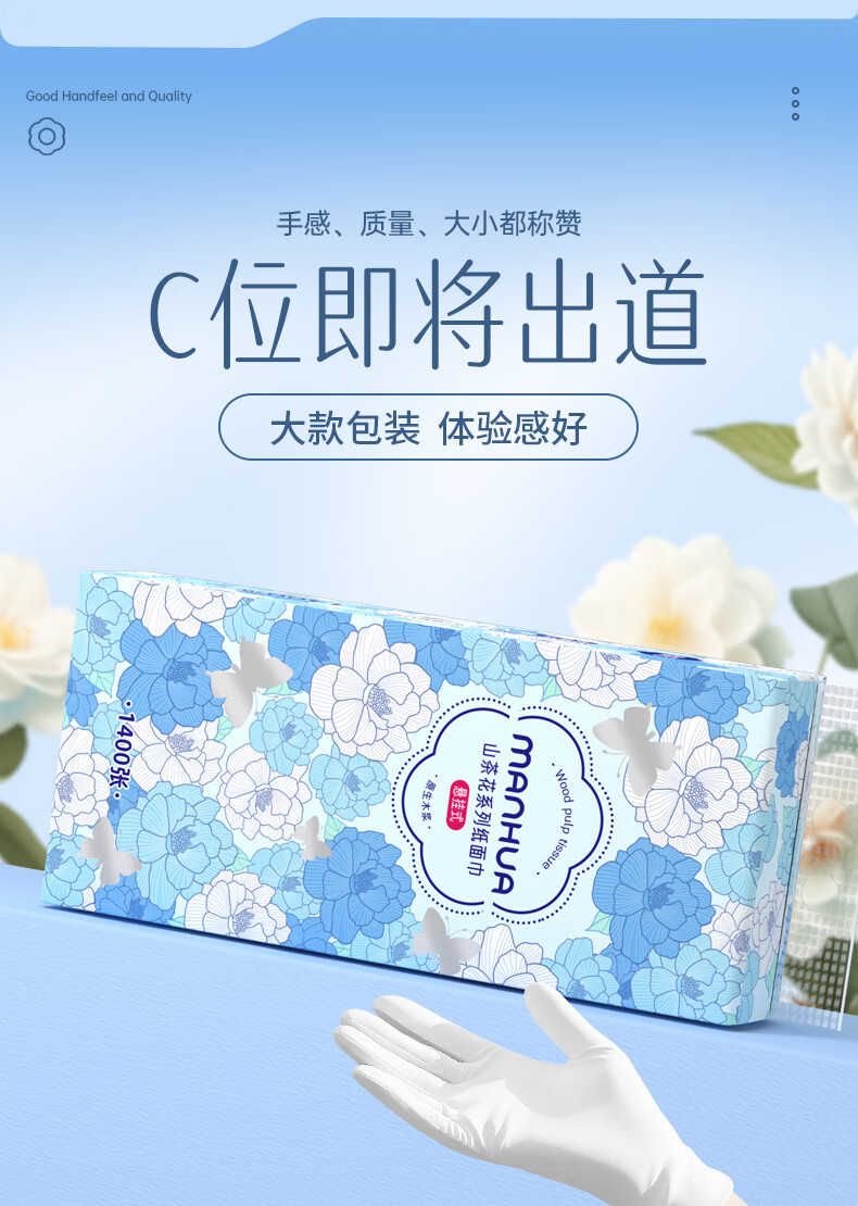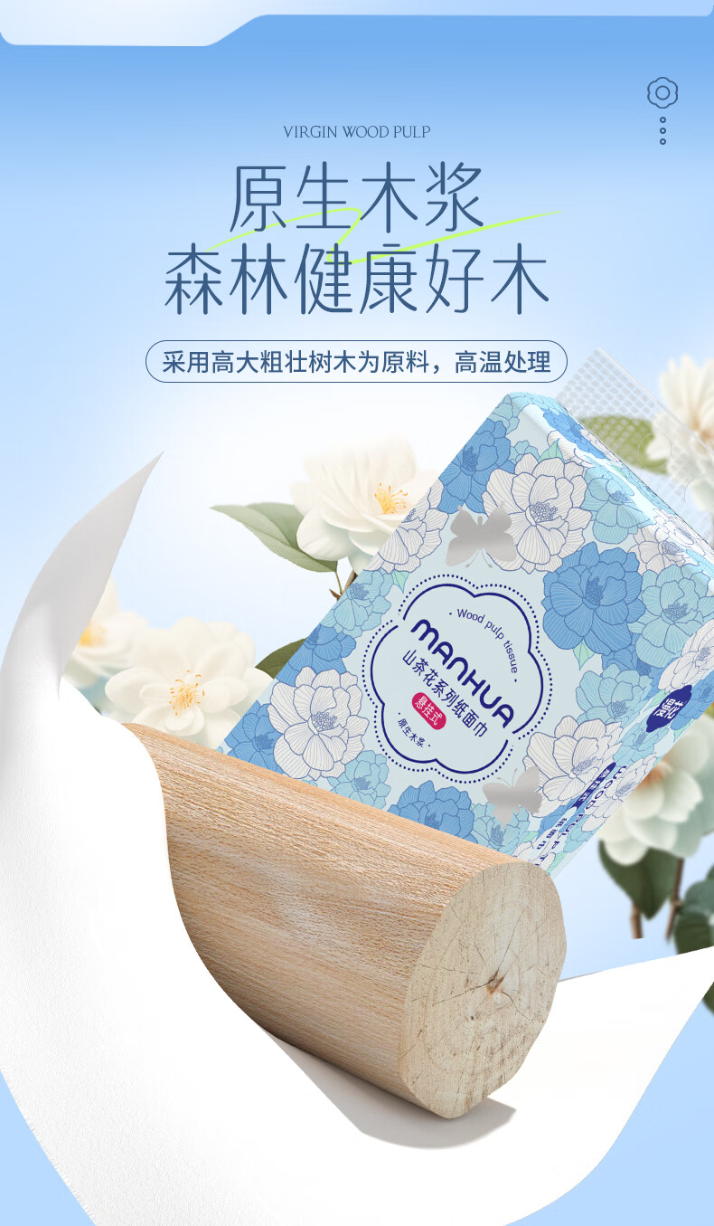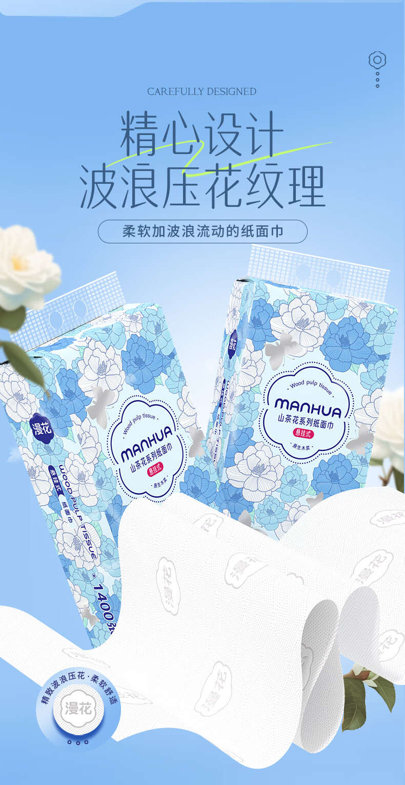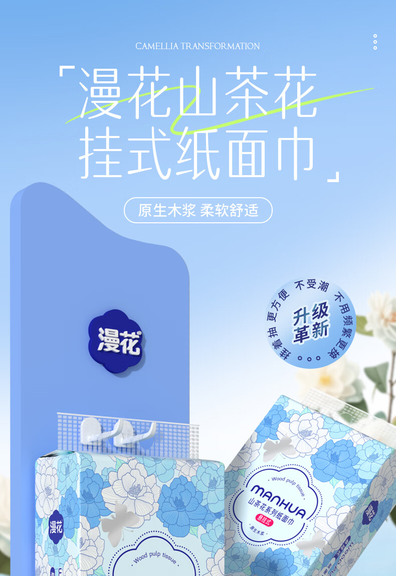 漫花悬挂式抽纸底部抽取式纸面巾4层350抽加量装卫生纸厕纸家用擦手纸 山茶花 4层 1400张*6提