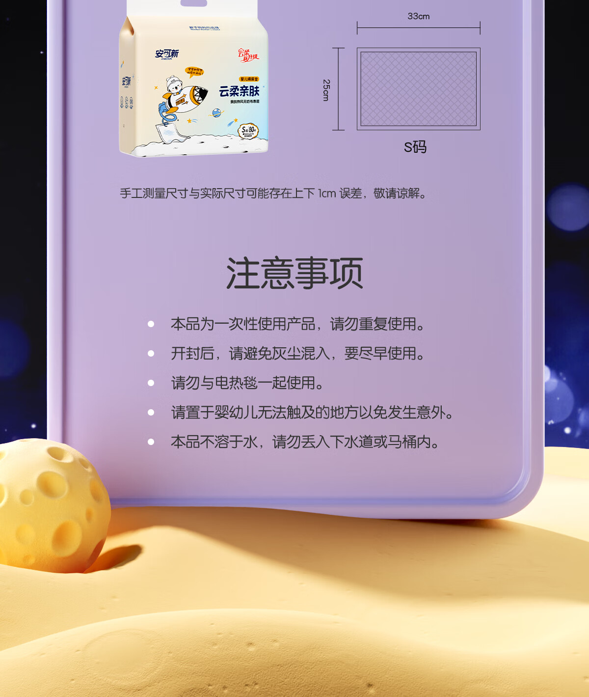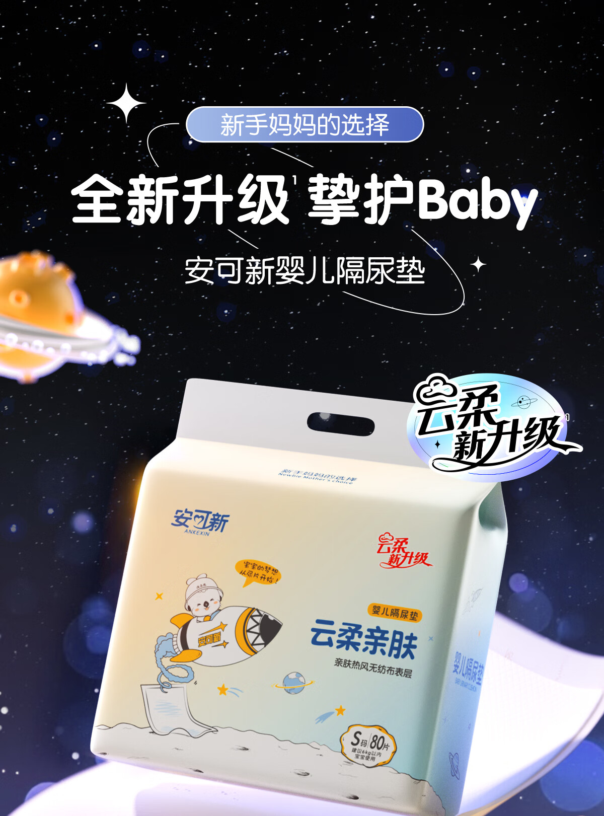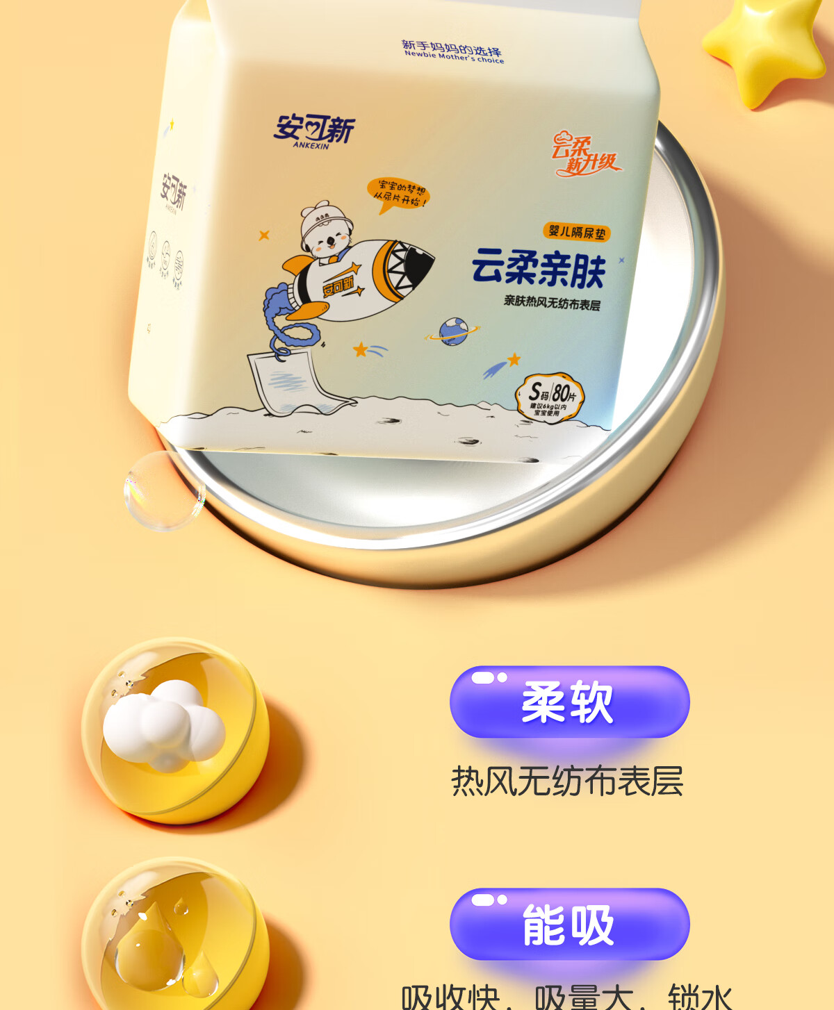 安可新全新升级婴儿一次性隔尿垫46片33*45cm云柔护理垫新生儿透气尿垫