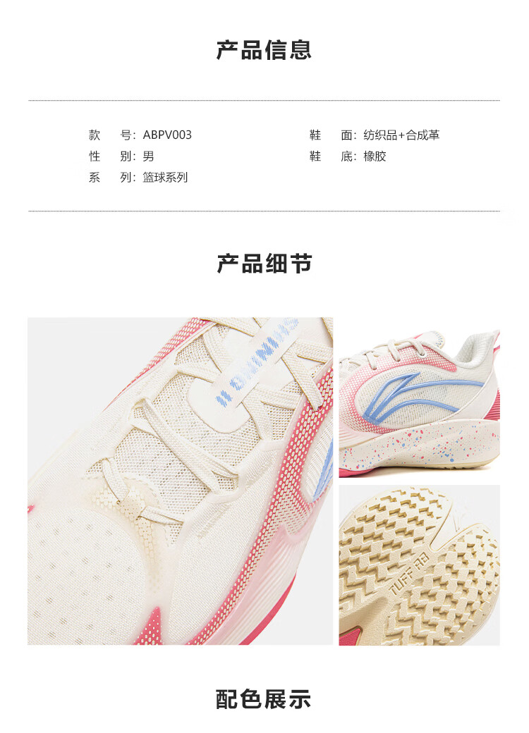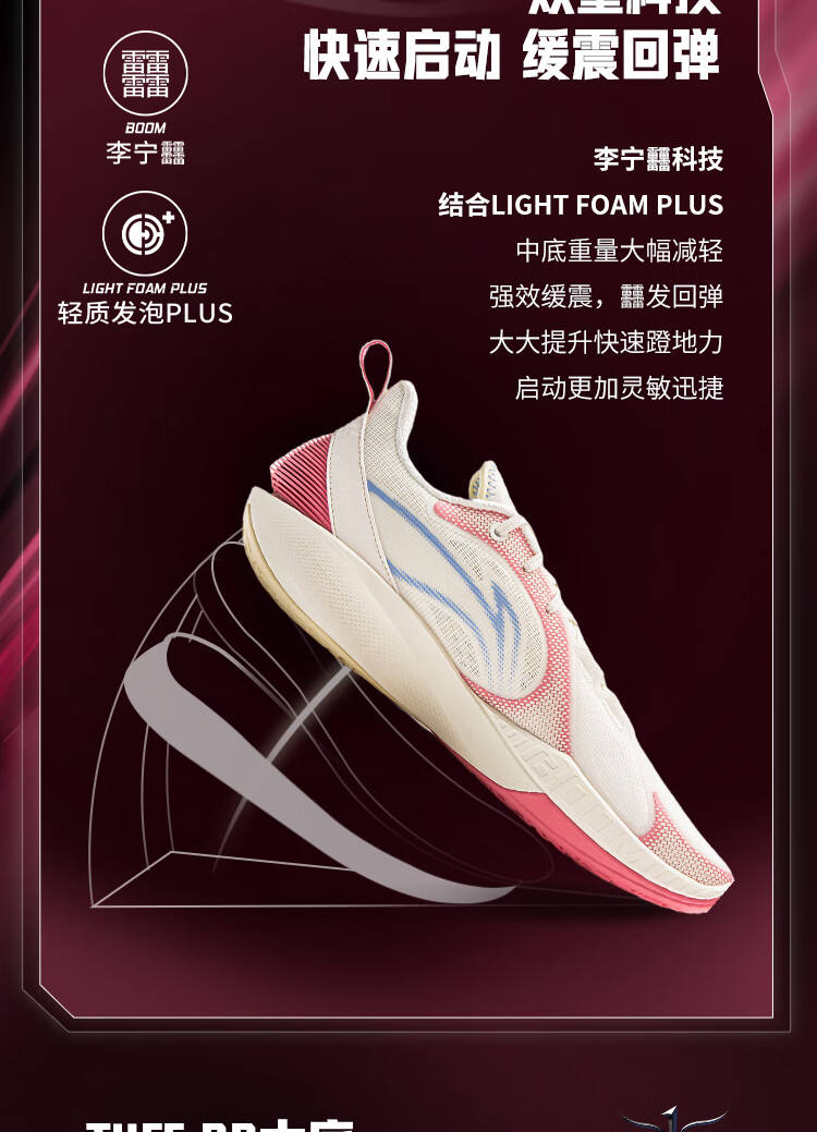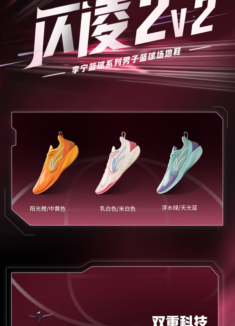 李宁闪凌2V2丨减震轻量高回弹篮球场地鞋男子专业运动鞋 乳白色/米白色-4 42