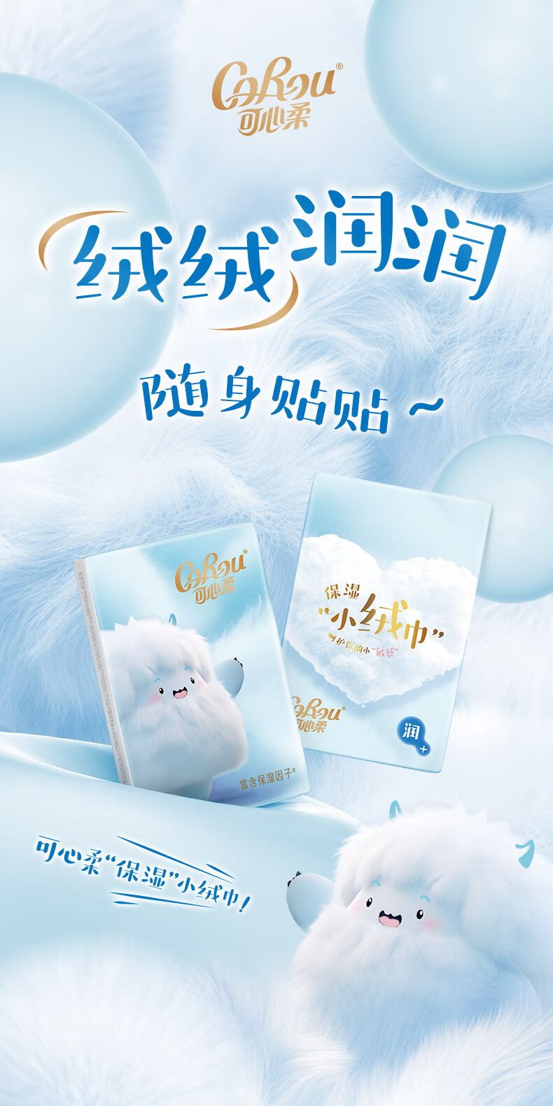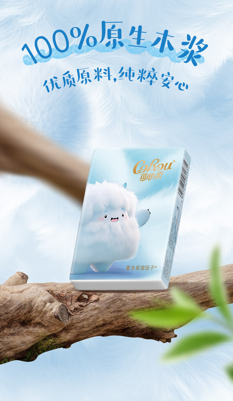 可心柔(COROU)绒感保湿 手帕纸 抽纸 4层10抽*10包 乳霜纸 云柔巾 便携餐巾纸