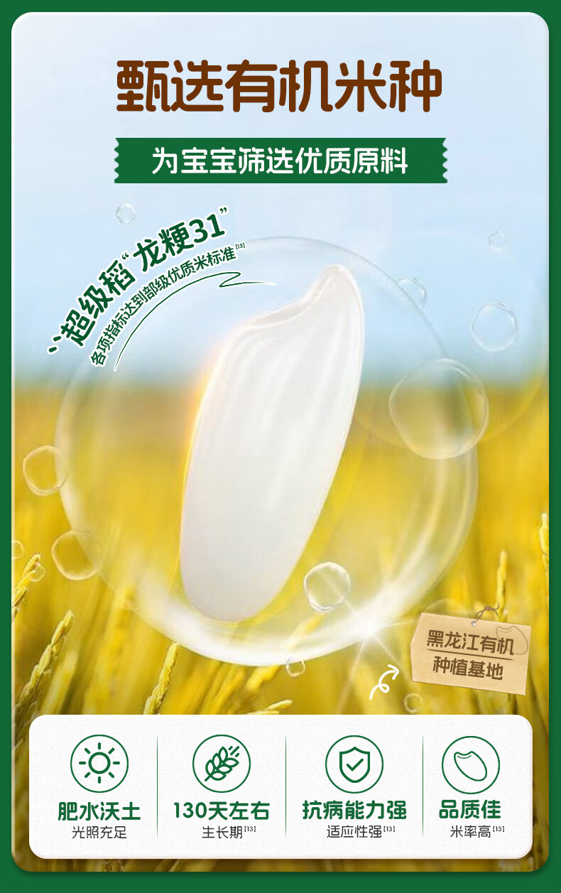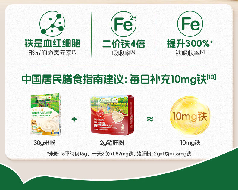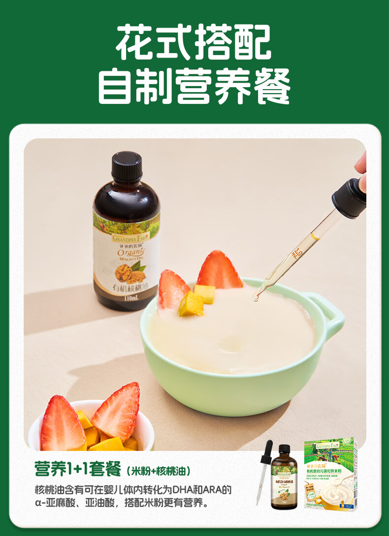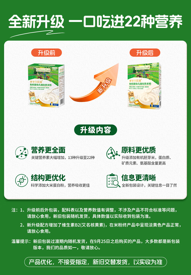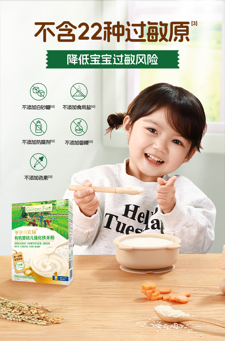 爷爷的农场婴幼儿有机原味高铁米粉6-36个月165g 营养辅食 米糊便携装 6月+