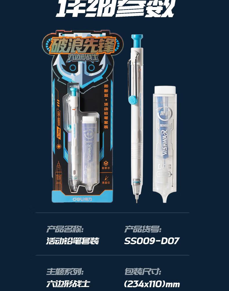 得力(deli)0.5mm/HB双按动自动铅笔活动铅(1笔20芯) 防摔笔尖守护学生文具考试绘图签字 SH316-05