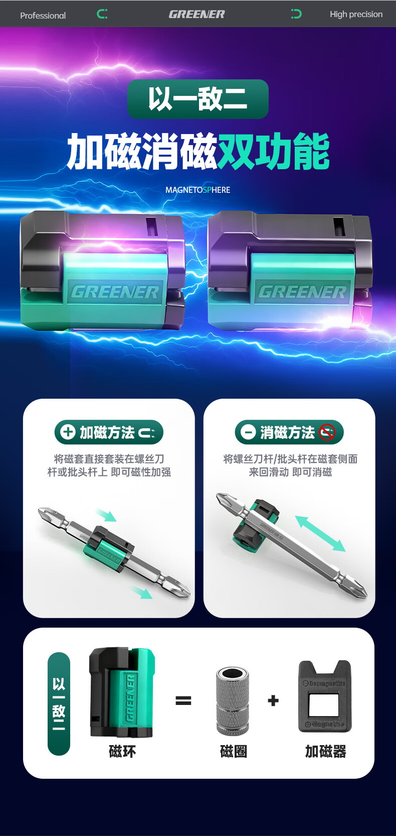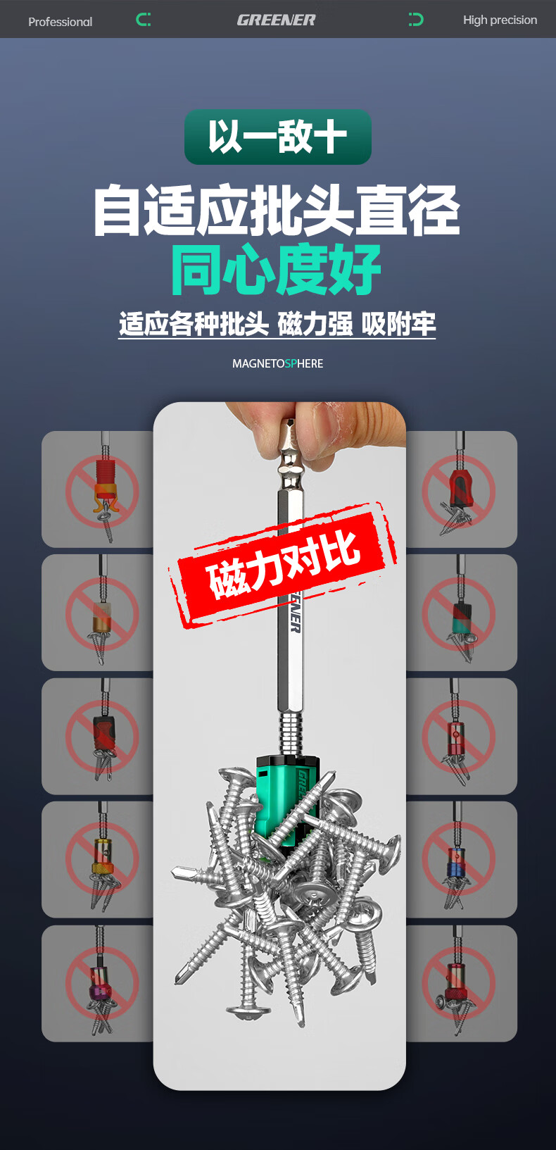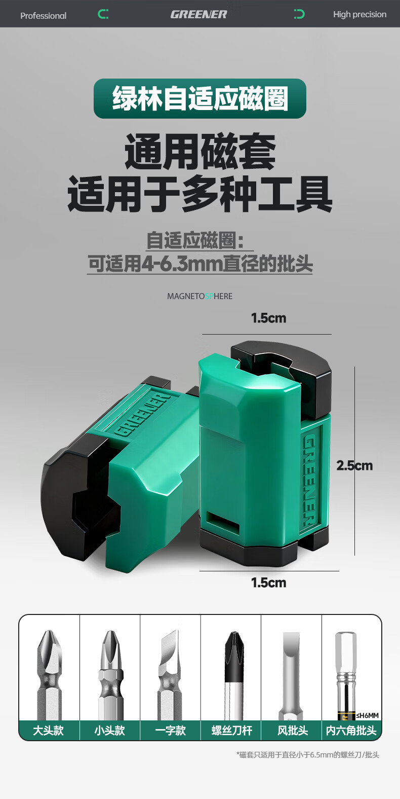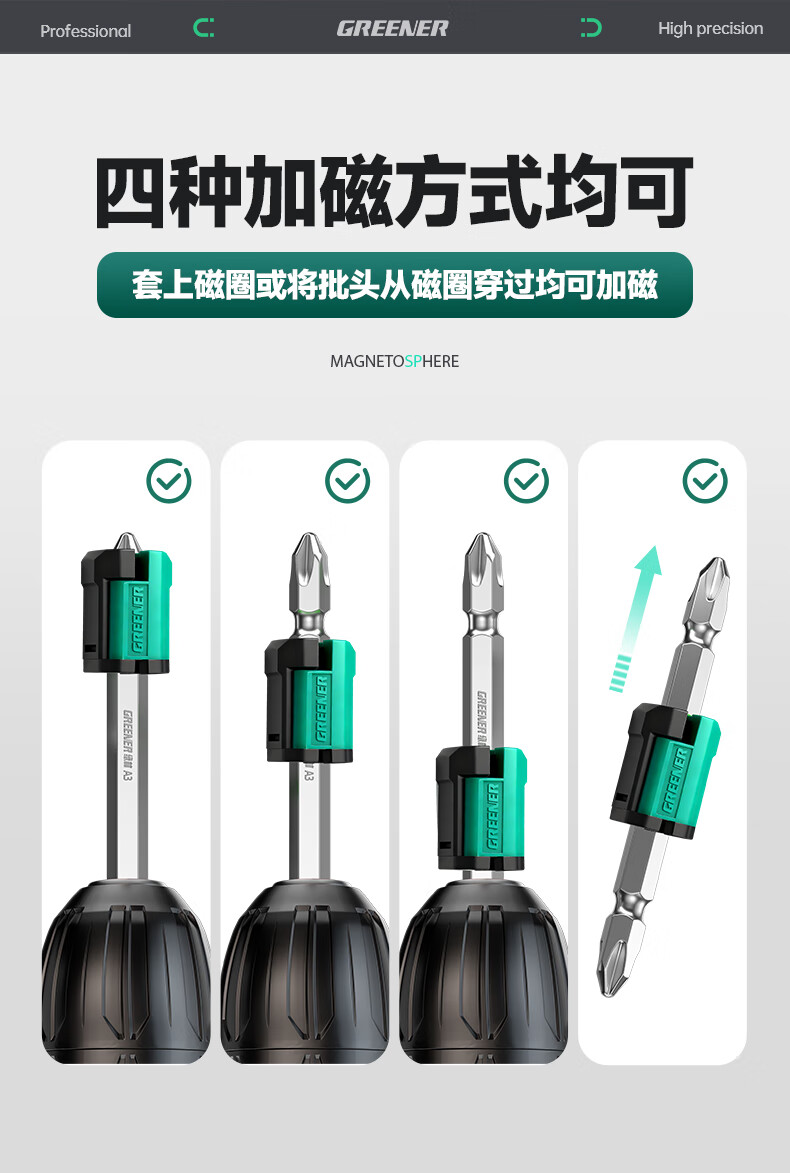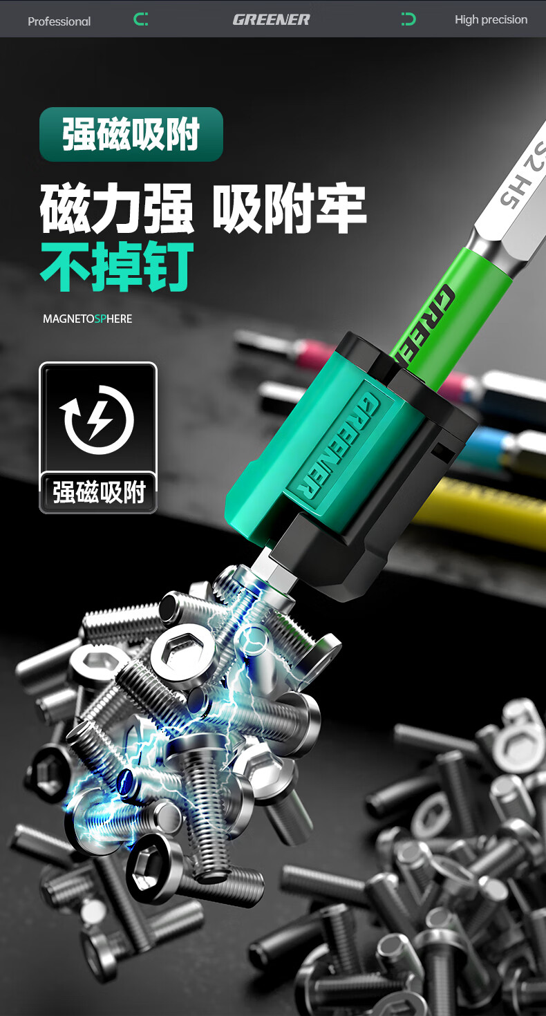 绿林(GREENER)强磁圈十字批头强力磁铁加磁器磁环电动螺丝刀头磁性高硬套装 【5个】(4-6.3mm)自适应磁圈