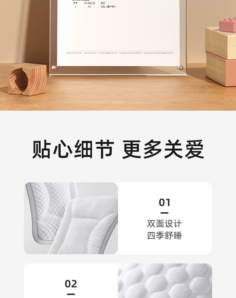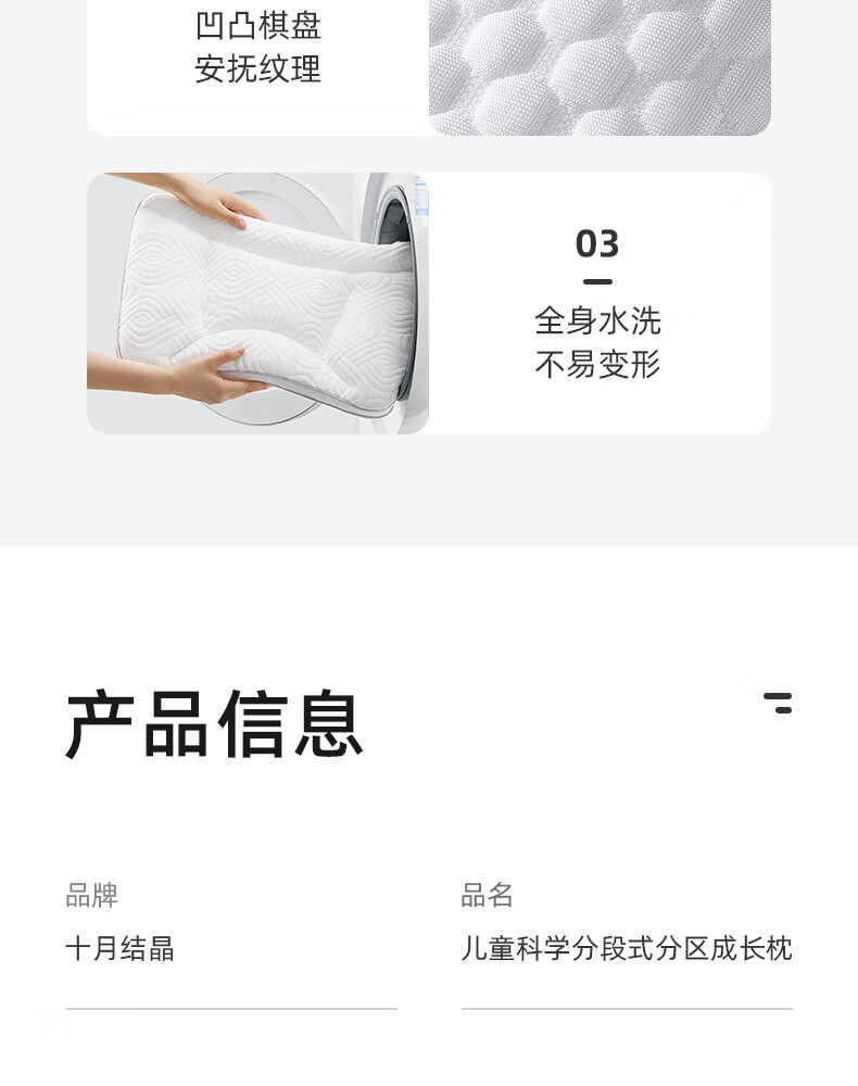 十月结晶儿童枕头1-3岁午睡枕小学生宝宝护颈枕四季通用京东自营白