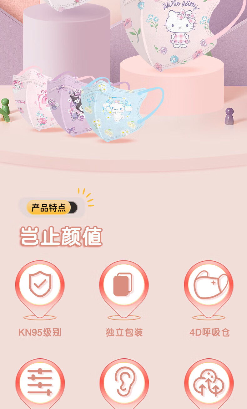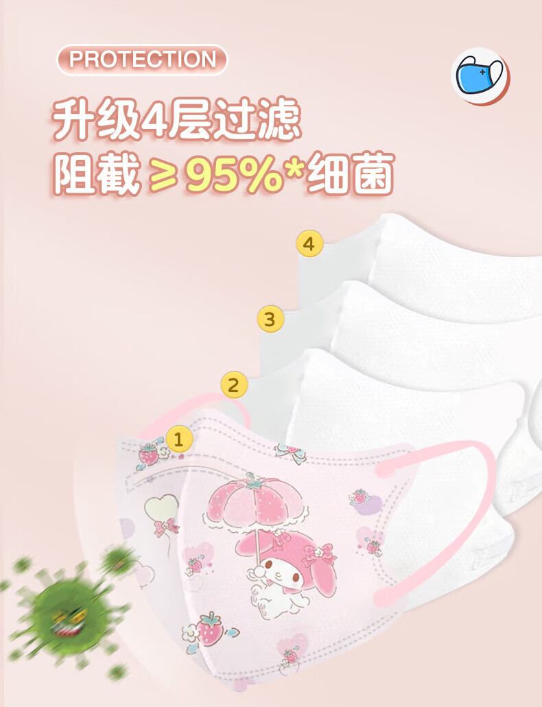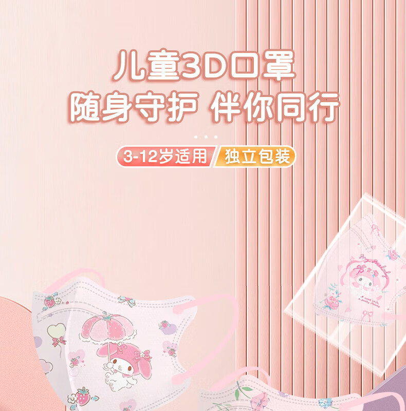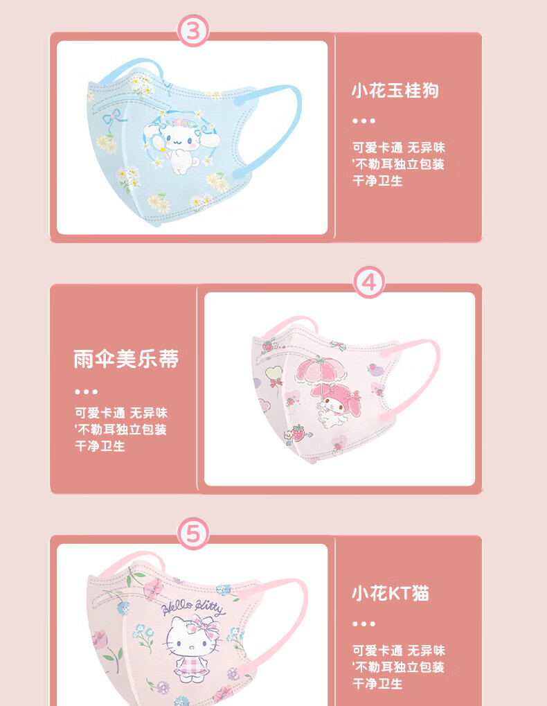 卫士立儿童KN95防护口罩美乐蒂库洛米3D立体透气卡通印花高颜值独立包装 新款【50只】随机混搭 独立包装