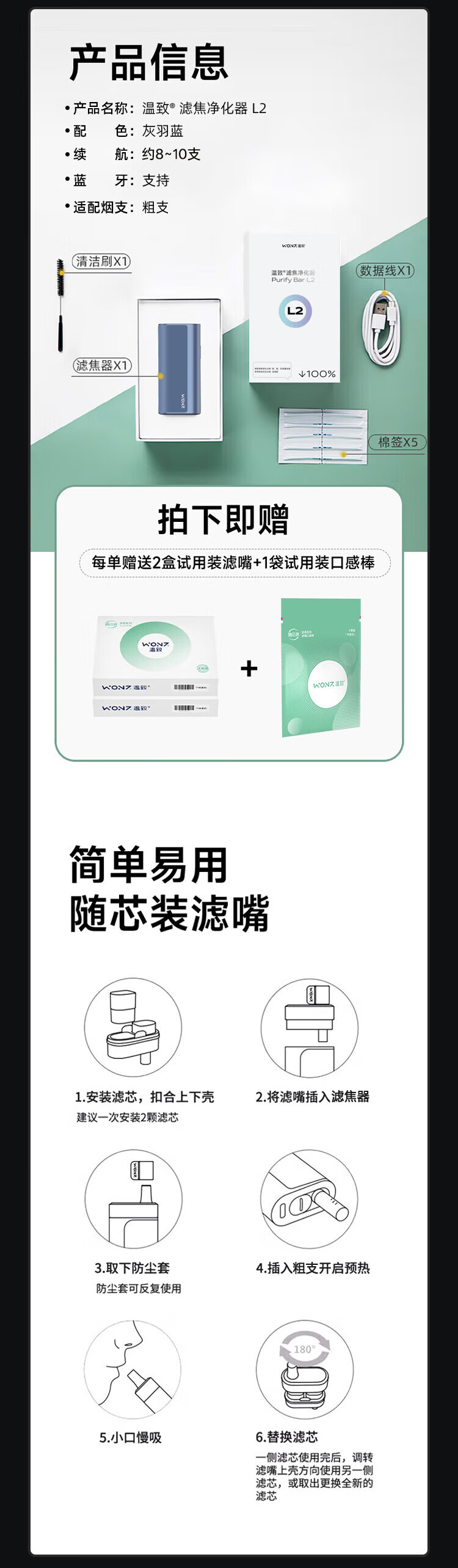 温致WONZ智能滤焦器L2车载不掉灰神器焦油过滤器送男友送爸爸礼物 L2粗支鎏光金【现货顺丰包邮】 8支 联系客服备注滤嘴口味