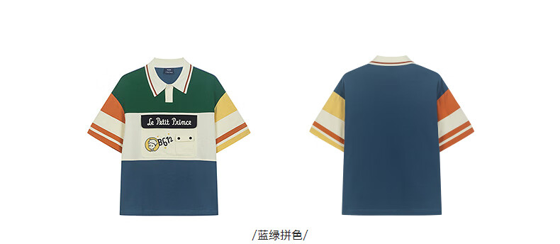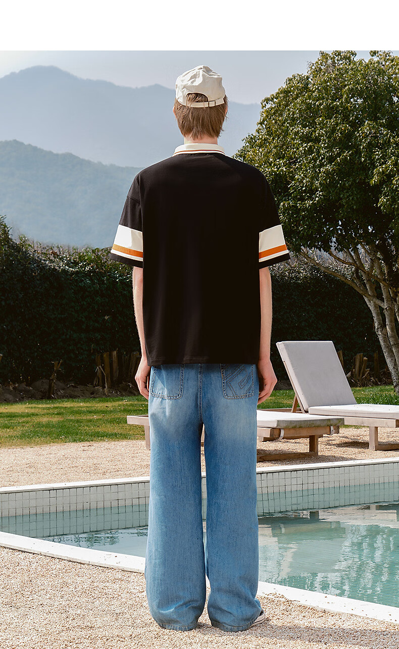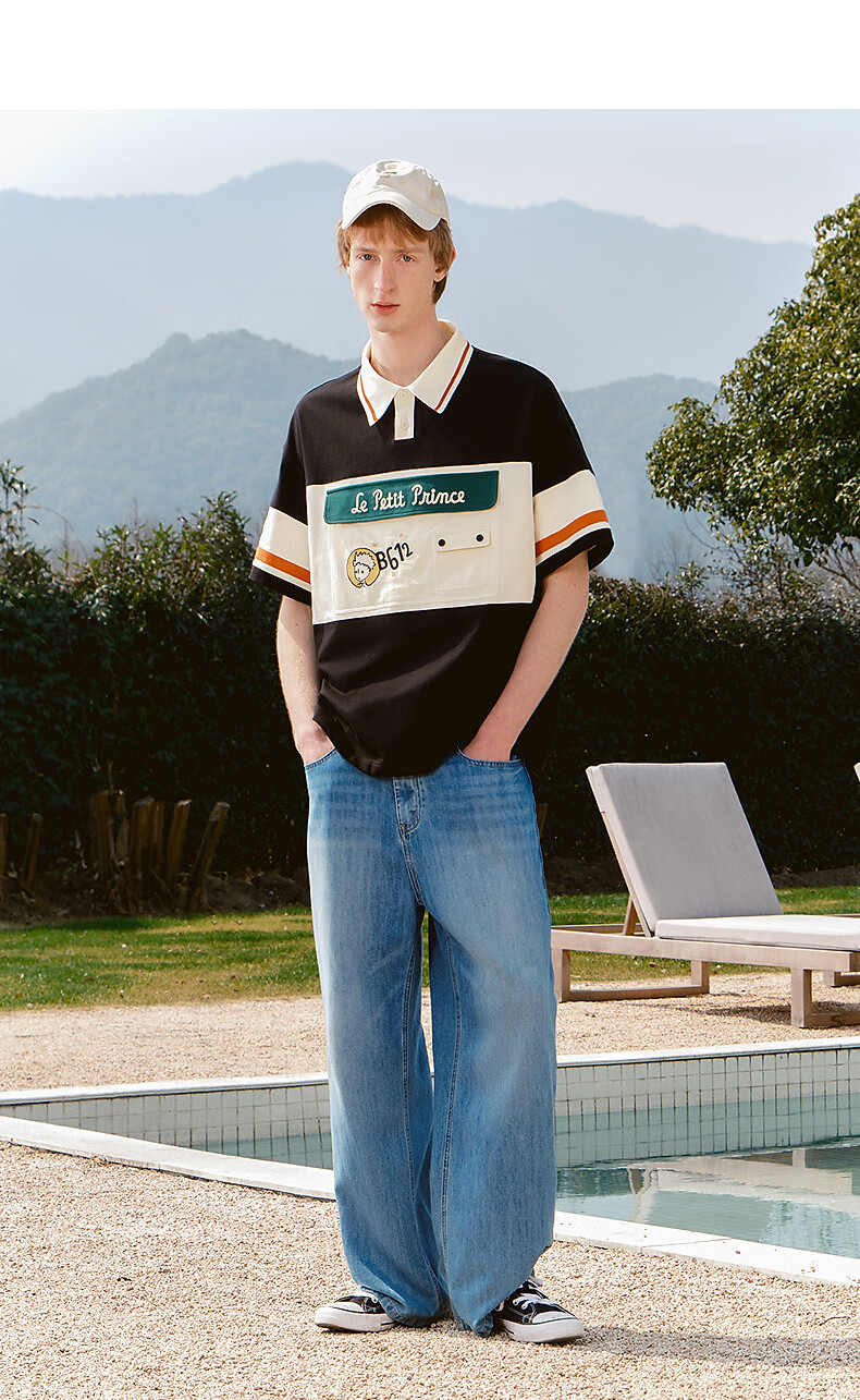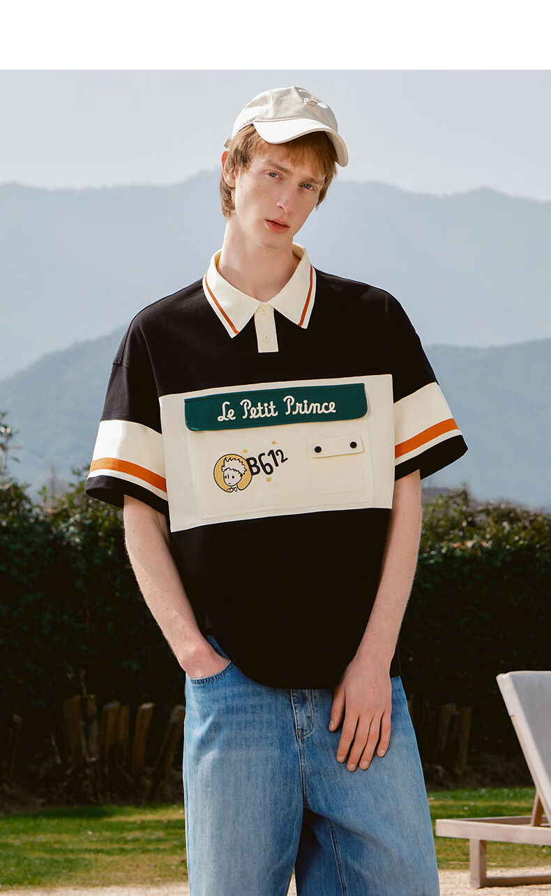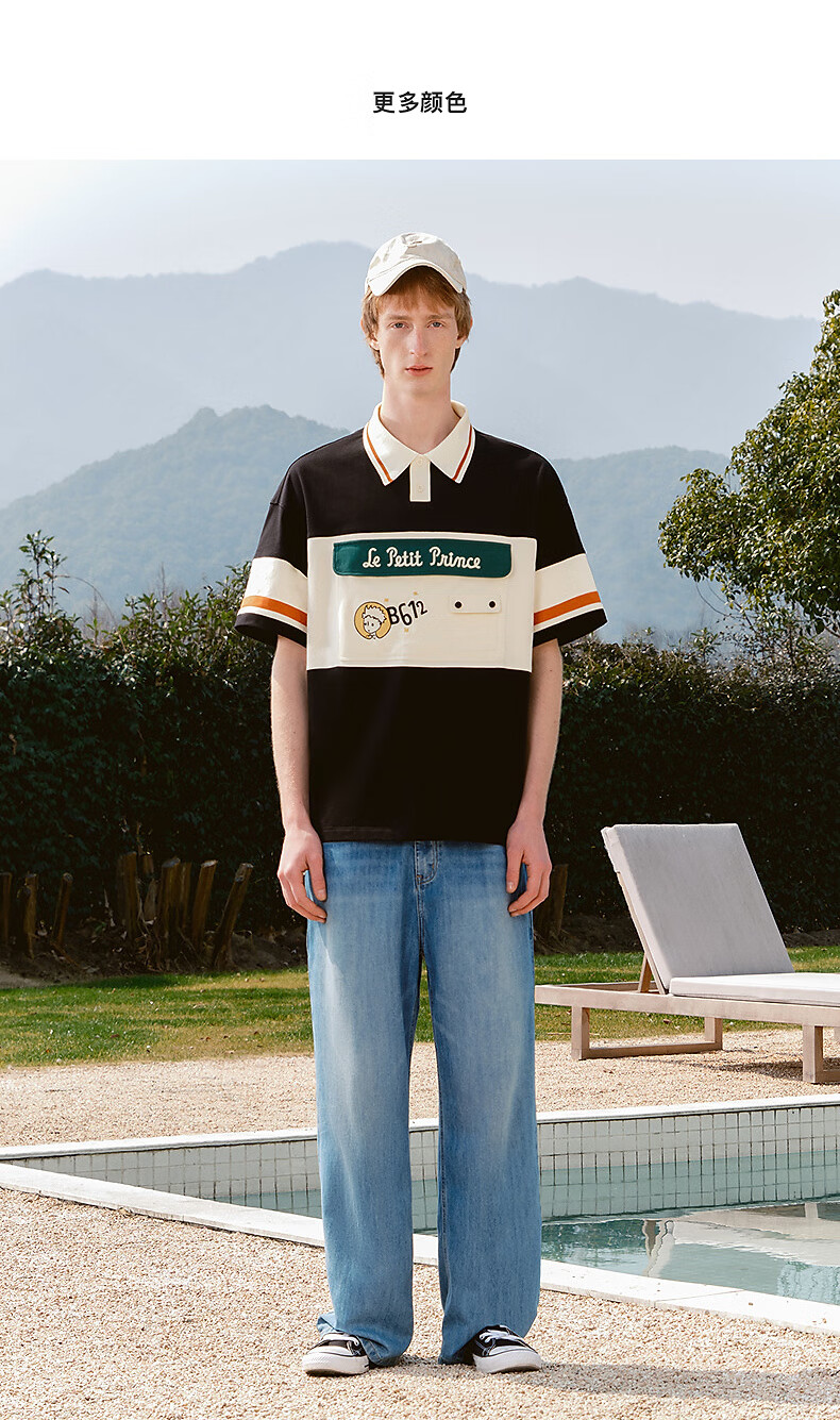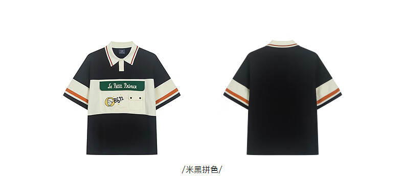 bosie【小王子】伯喜2025年夏季新款撞色短袖polo衫男情侣翻领T恤 米黑拼色 XS