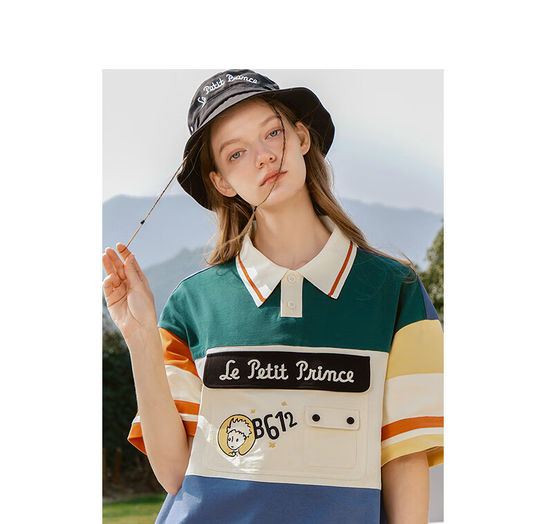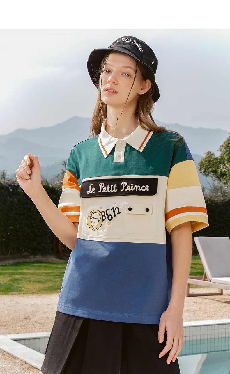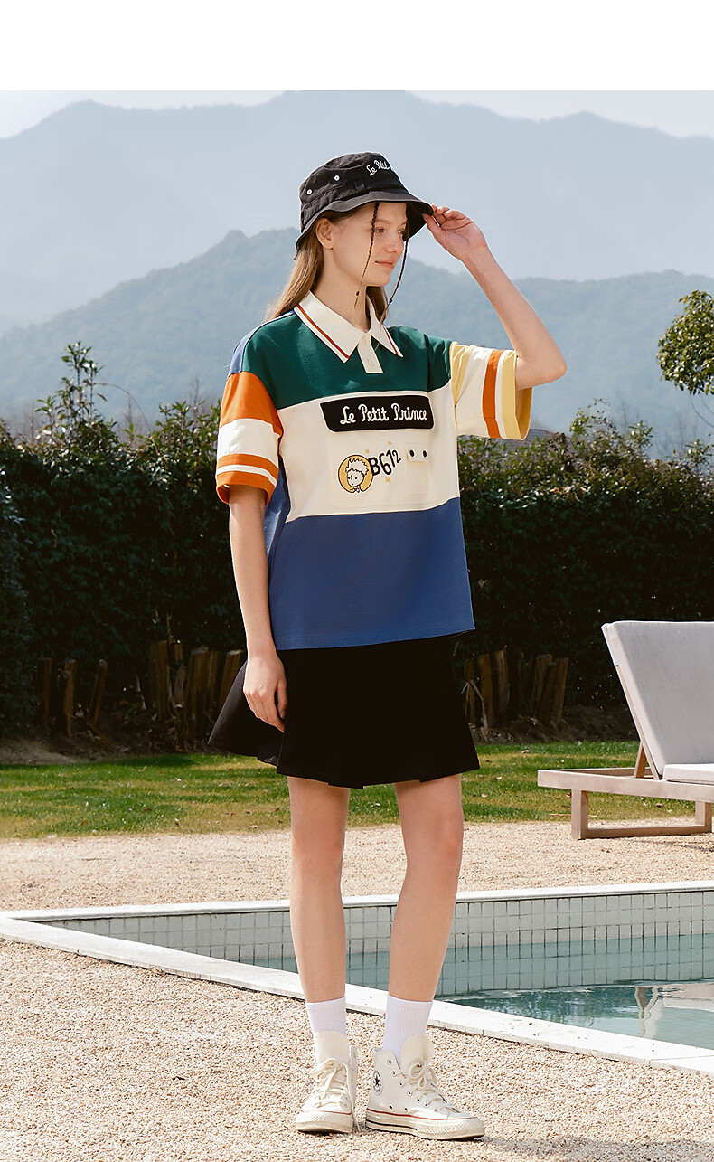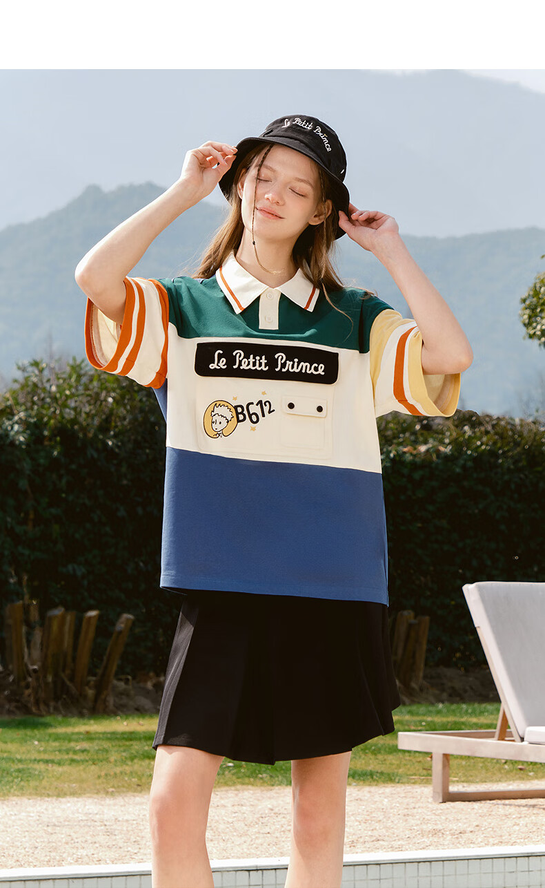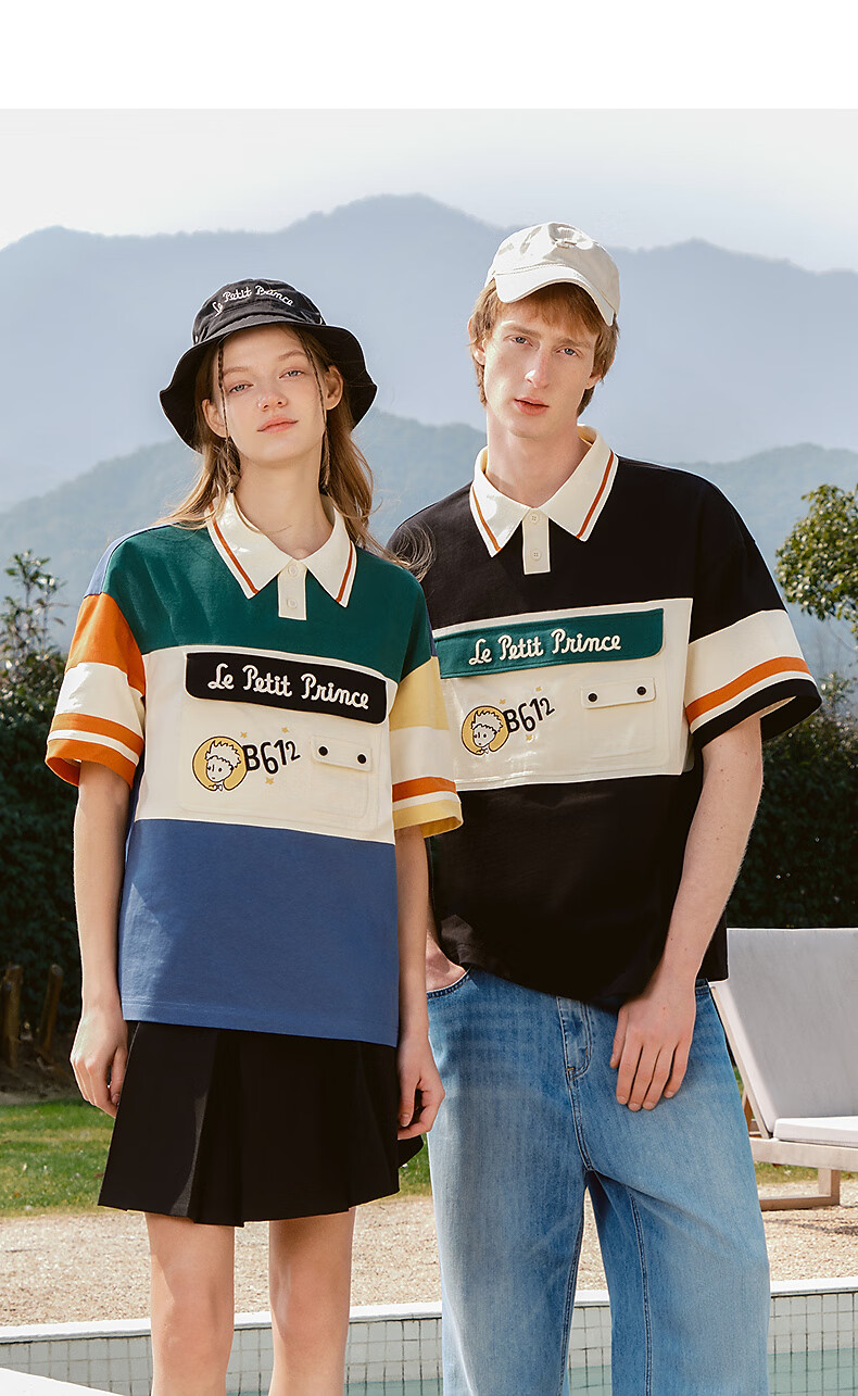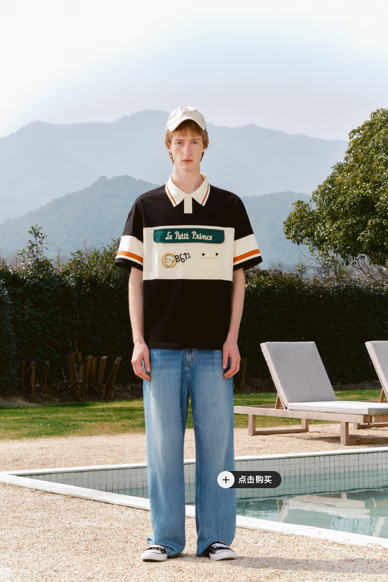 bosie【小王子】伯喜2025年夏季新款撞色短袖polo衫男情侣翻领T恤 米黑拼色 XS