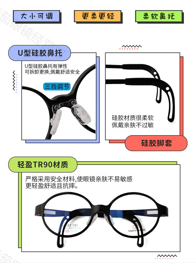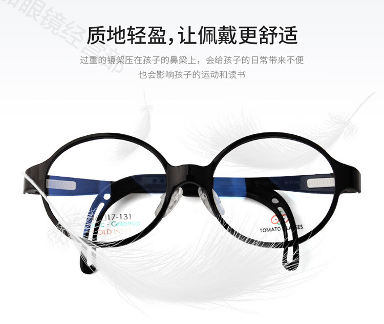 TOMATO韩国进口番茄儿童眼镜架框架超轻适配离焦镜片近视远视矫正TKBC款 TKBC14 黑色 46-17(建议8-10岁)