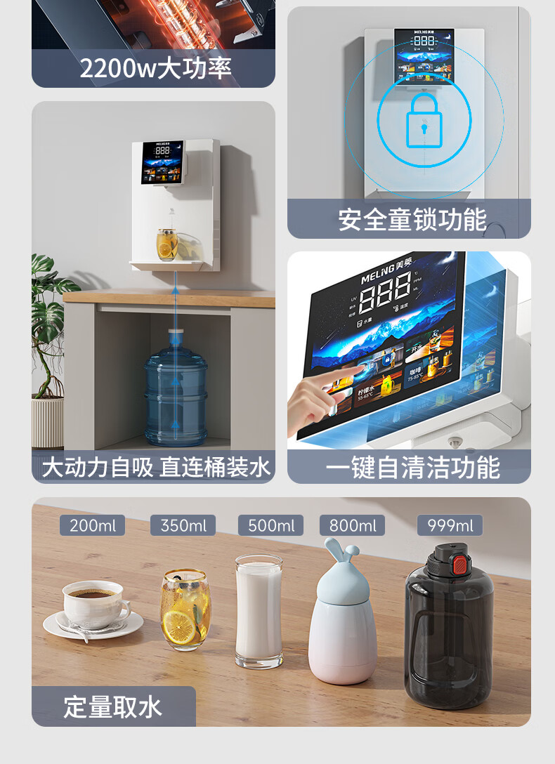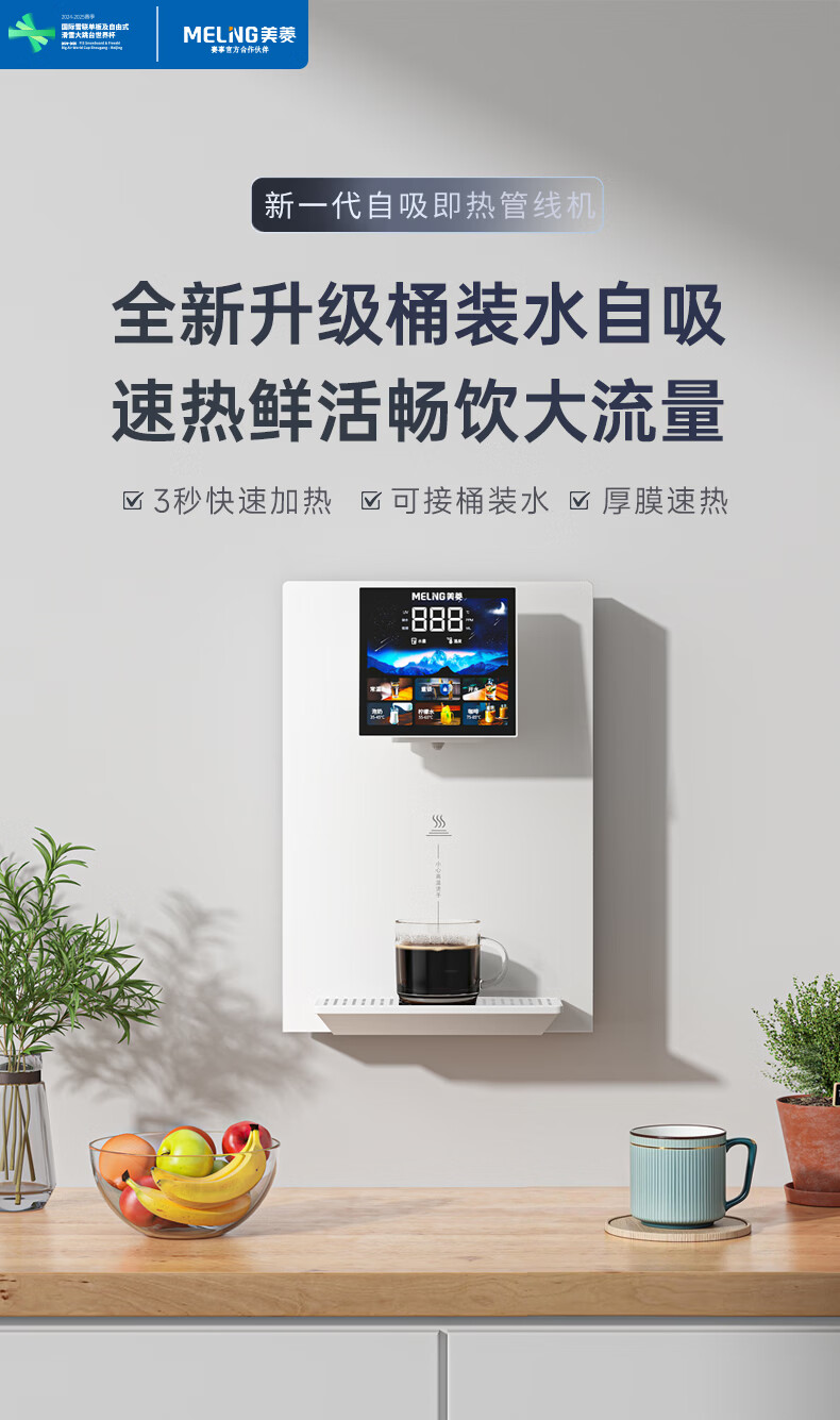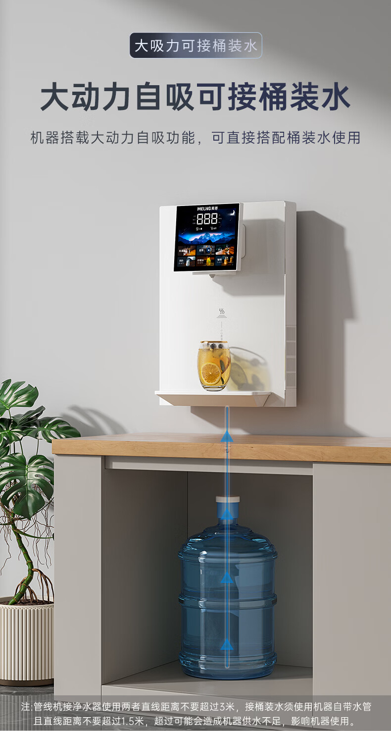 美菱(MeiLing)管线机壁挂式直饮水机家用餐边柜即热式饮水机自吸式大动力接桶装水 自行安装【无水箱·自吸桶装水】奶油白高温杀菌