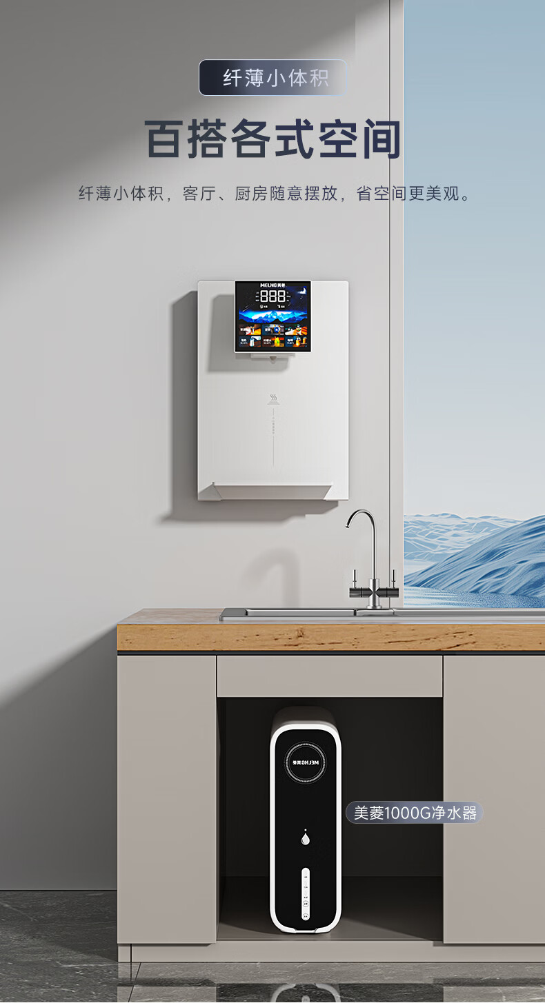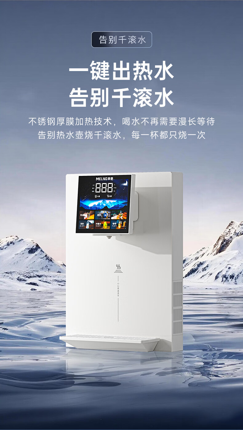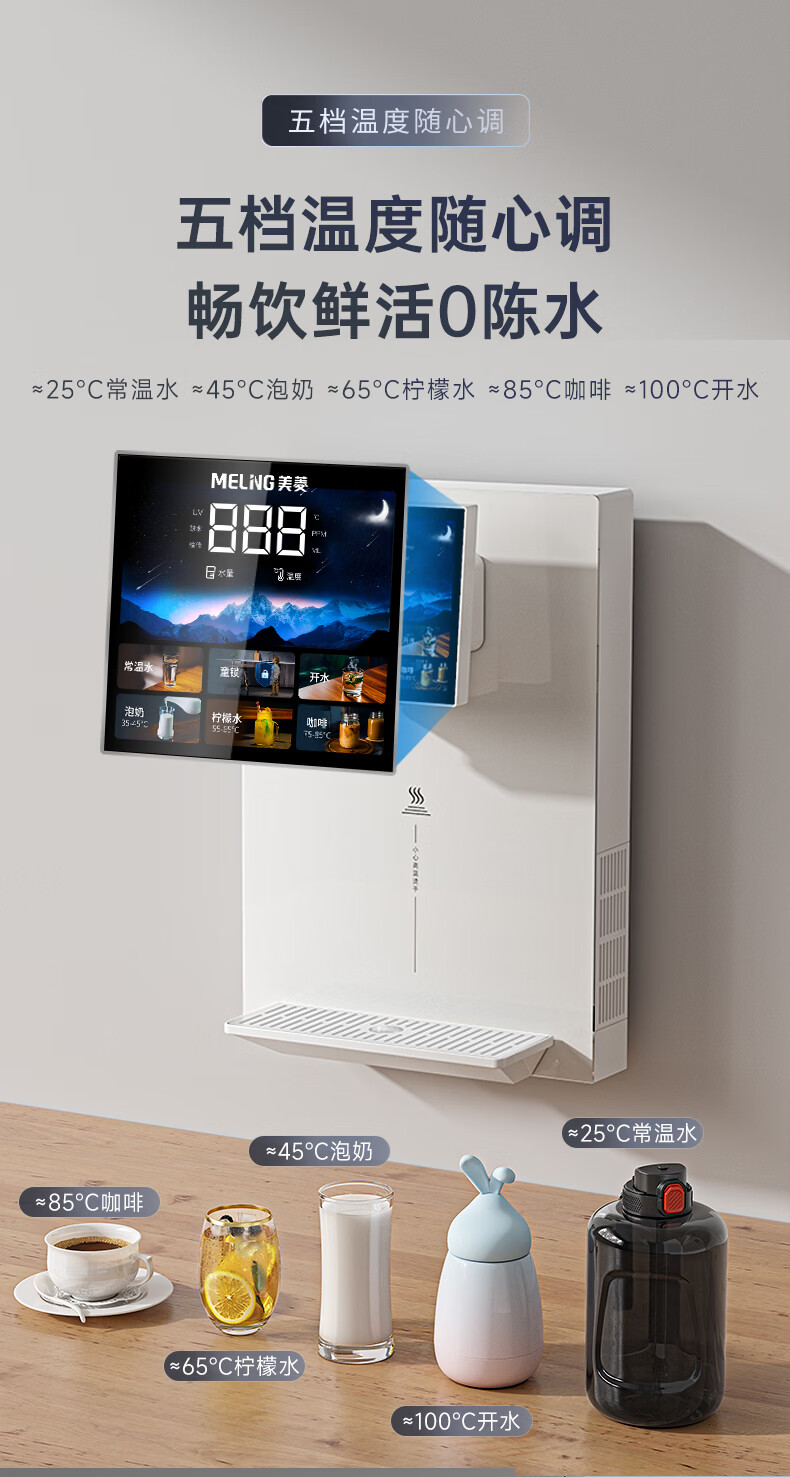 美菱(MeiLing)管线机壁挂式直饮水机家用餐边柜即热式饮水机自吸式大动力接桶装水 自行安装【无水箱·自吸桶装水】奶油白高温杀菌