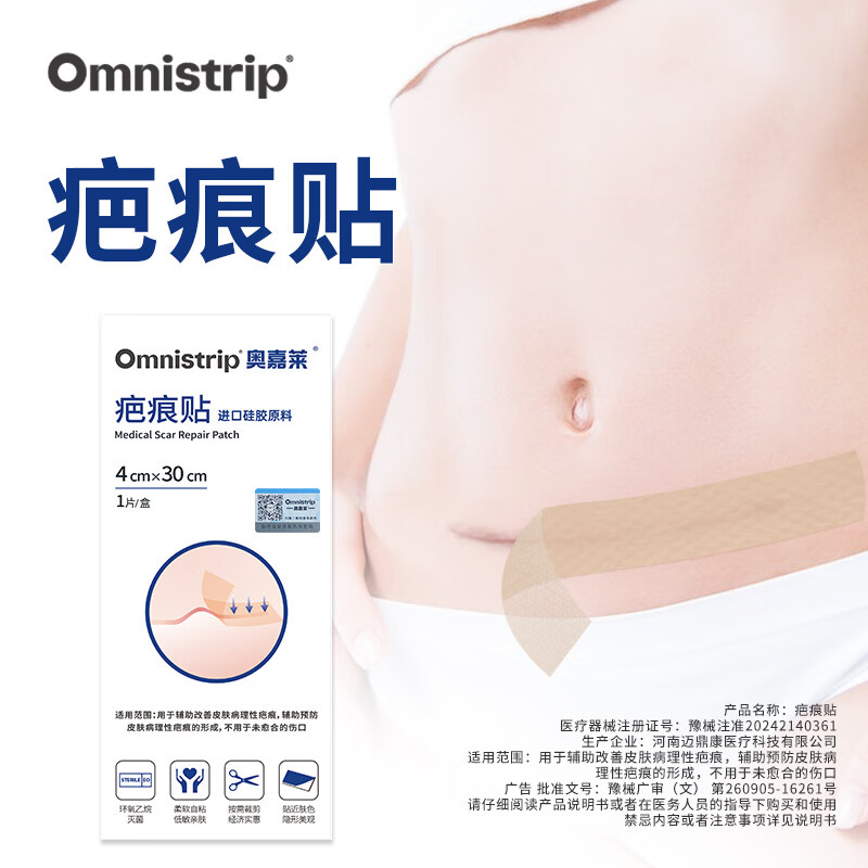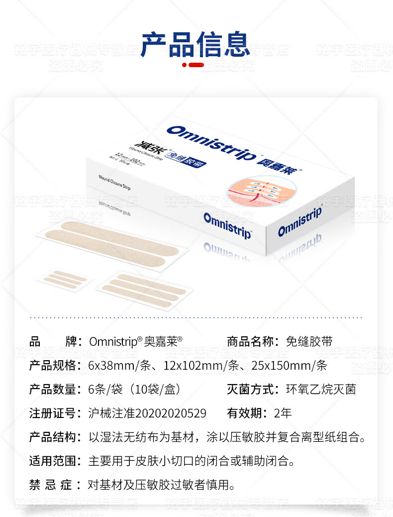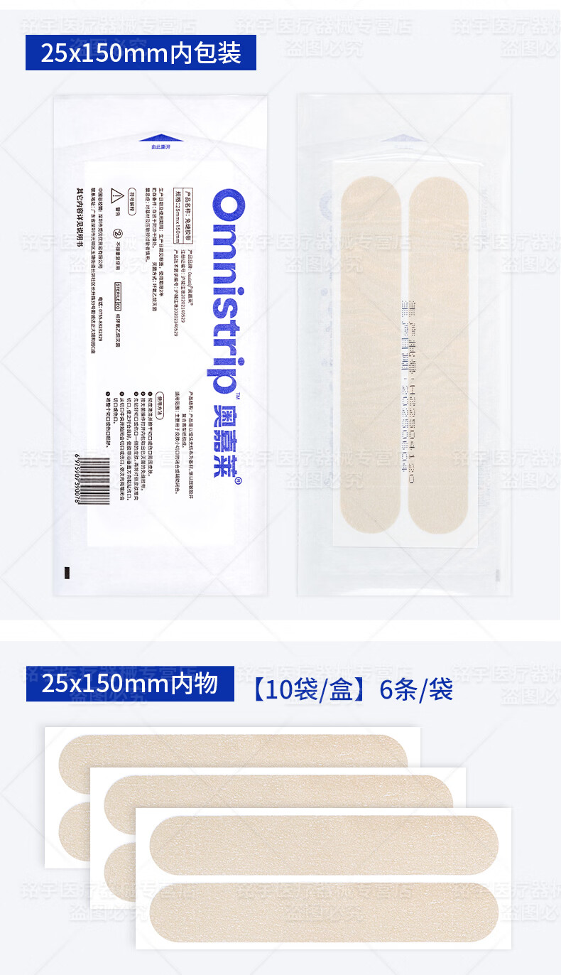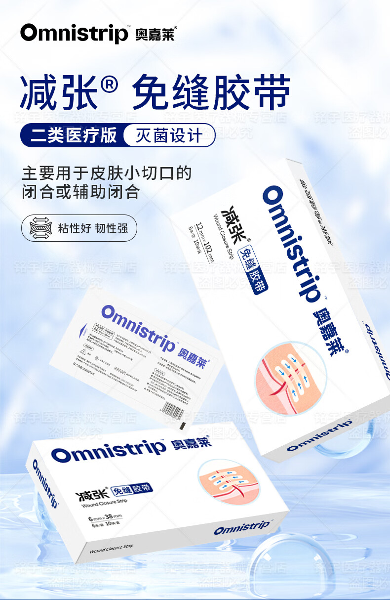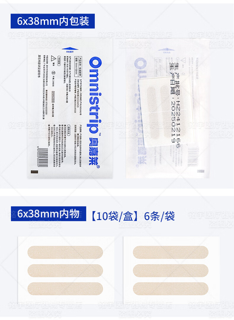 奥嘉莱0mnistrip医疗灭菌版免缝胶带减张贴疤痕贴防变宽儿童可用 6mm×38mm【5包/30条 】