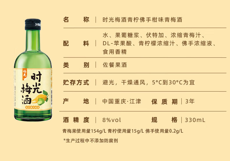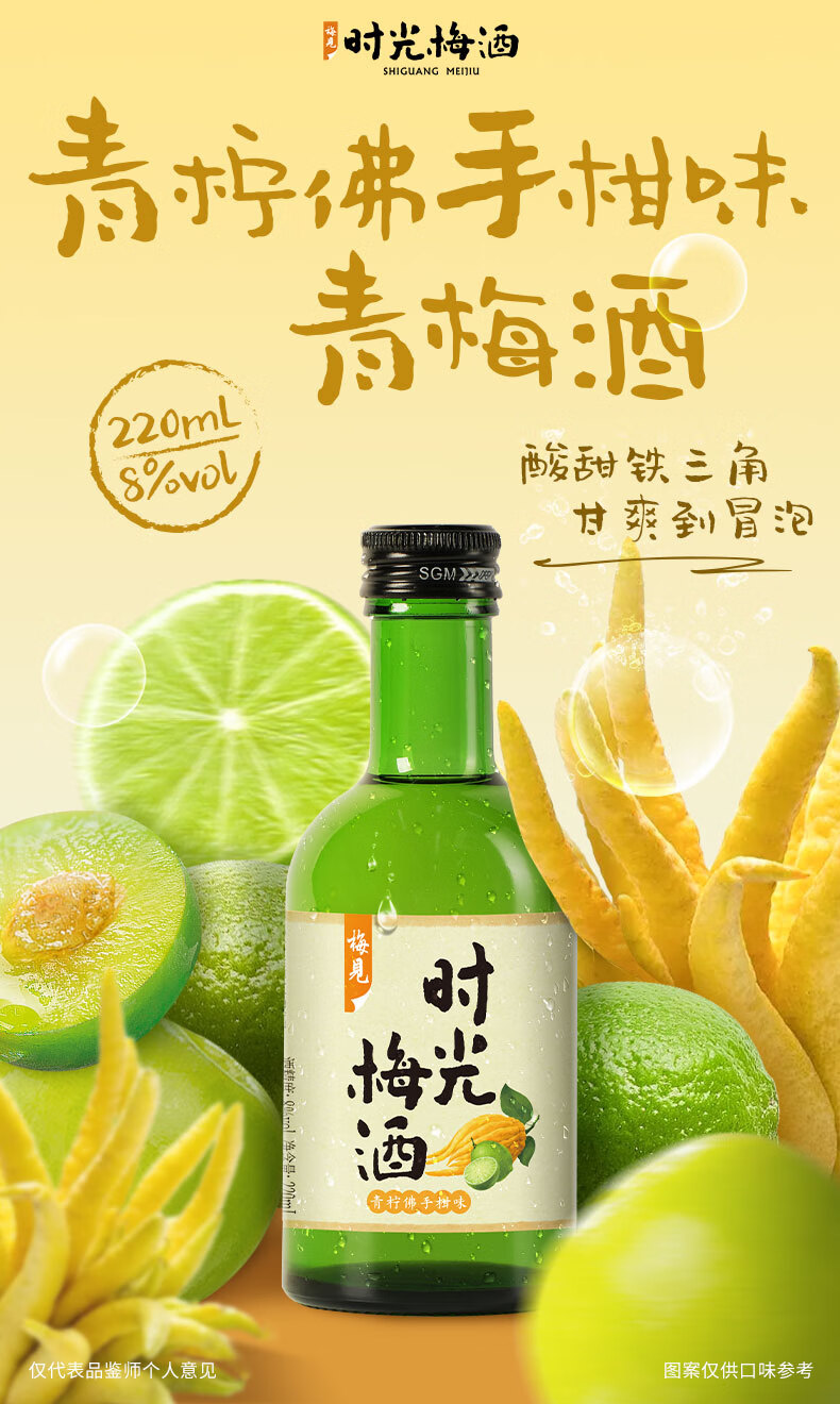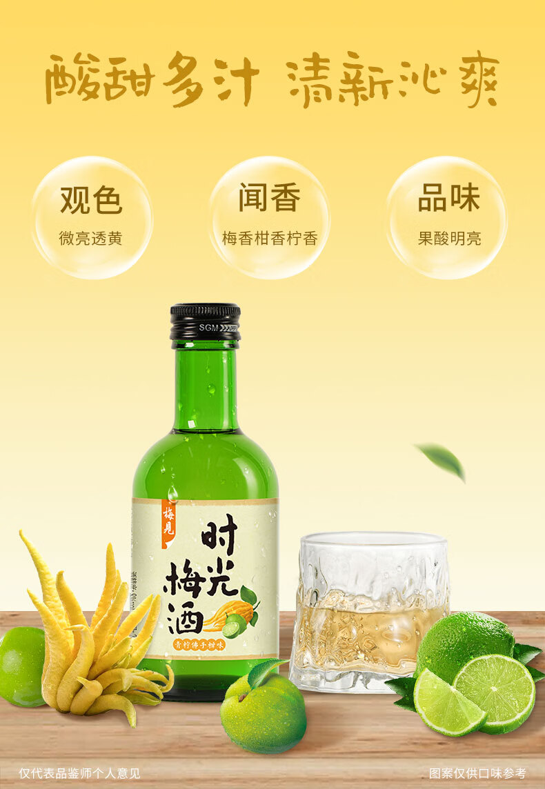 梅见 青梅酒原味时光梅青柠佛手柑味组合 男女士低度微醺果酒节日送礼 青柠佛手柑味220ml*2