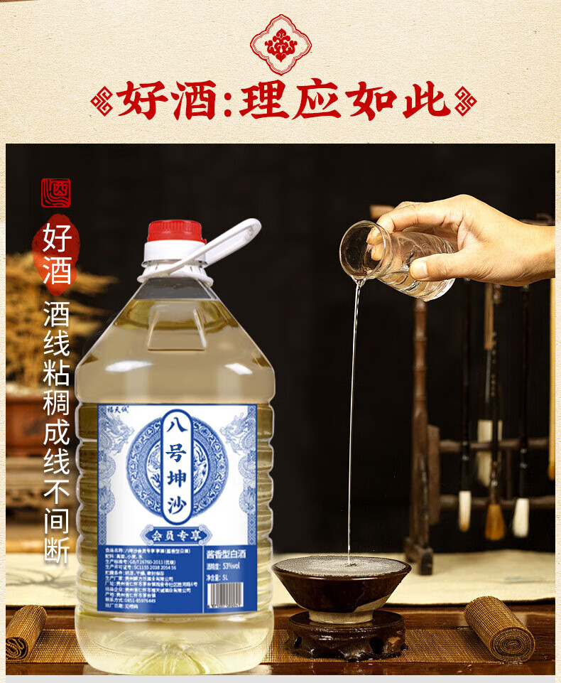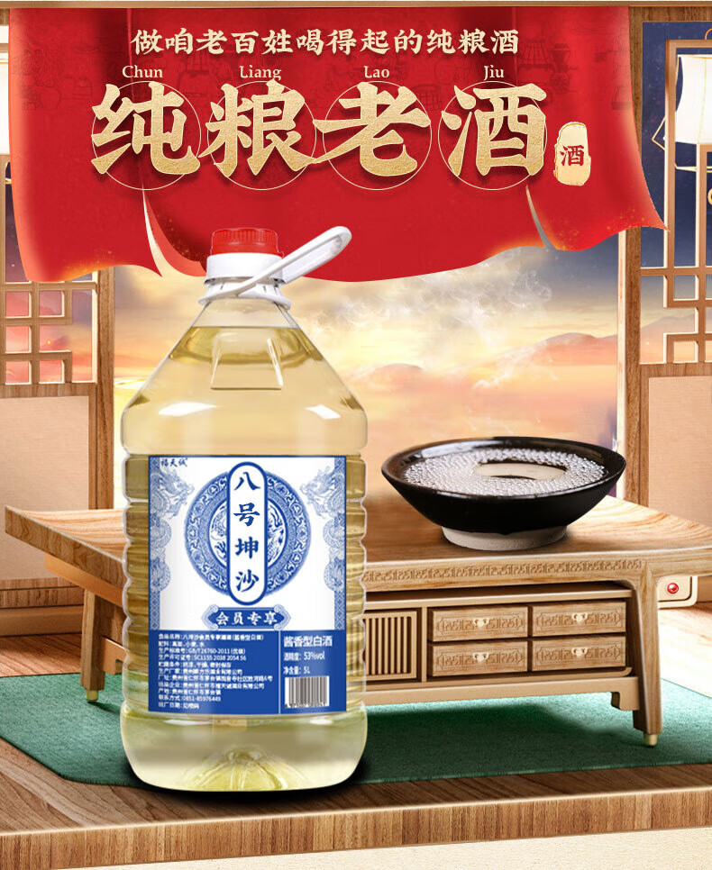 宗家贵州酱香型白酒53度口粮酒自饮散装白酒高粱坤沙十斤桶装泡酒 53度 5000mL 1桶 八号窖藏老酒