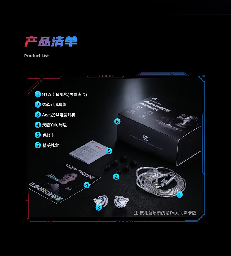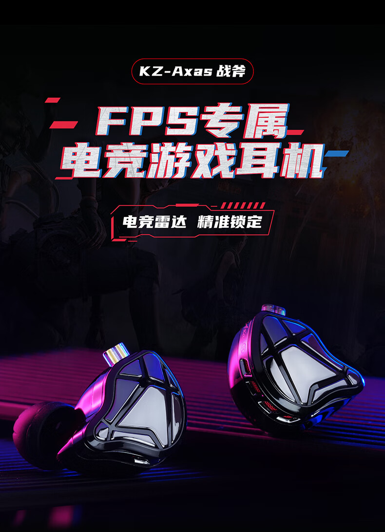 KZ【YOLO专属】Axas战斧 入耳式有线电竞游戏耳机FPS专属HIFI音效适用于三角洲吃鸡无畏等FPS游戏 黑色带麦【声卡版C口】