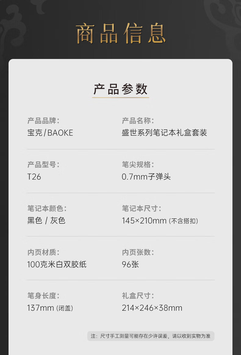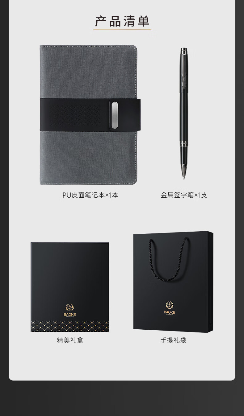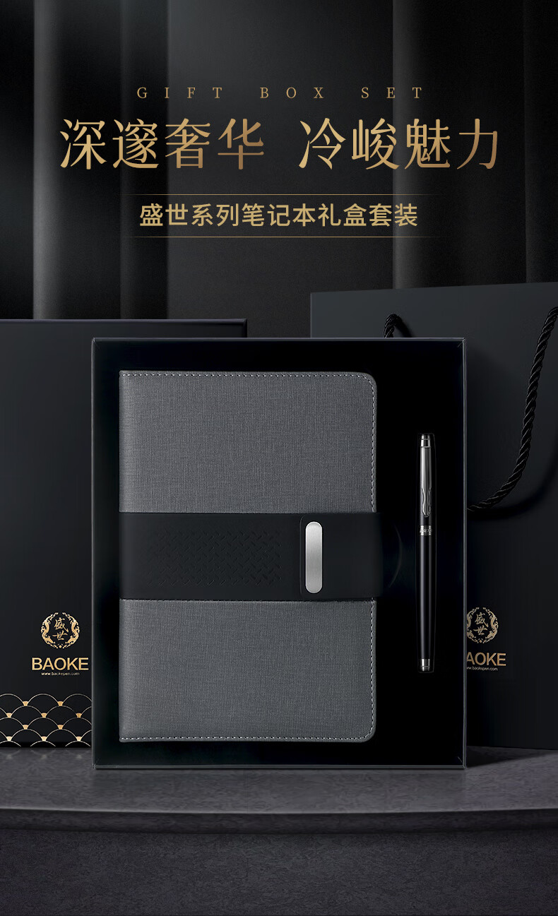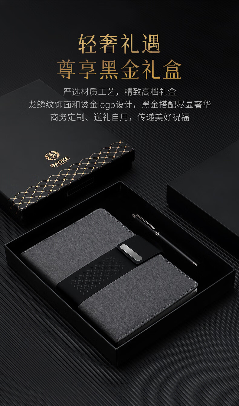 宝克(BAOKE)【新年礼物】T26盛世系列轻奢笔记本礼盒套装 商务奢华高档皮面磁吸记事本带金属笔企业礼品 T26 黑色【签字笔+记事本礼盒套装】 礼盒装 包邮