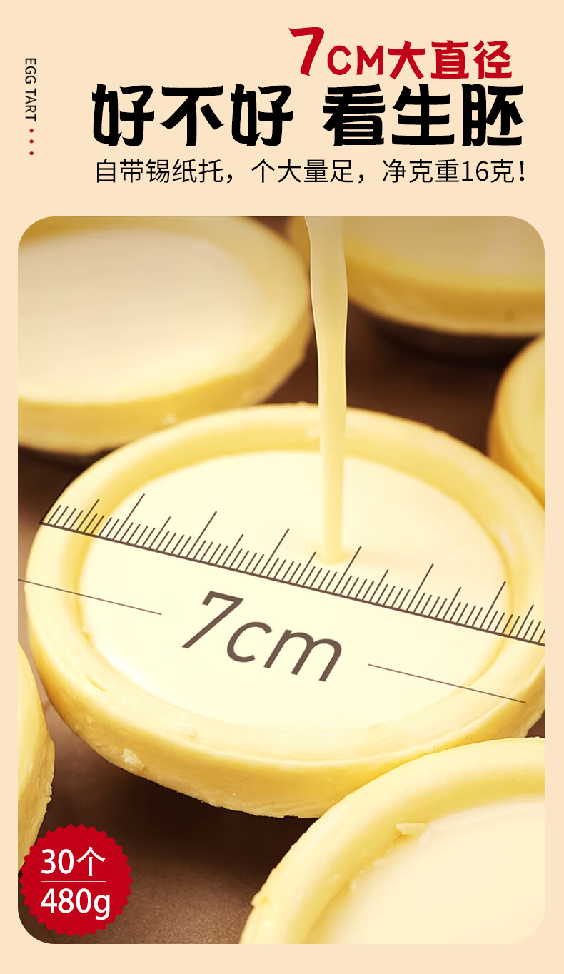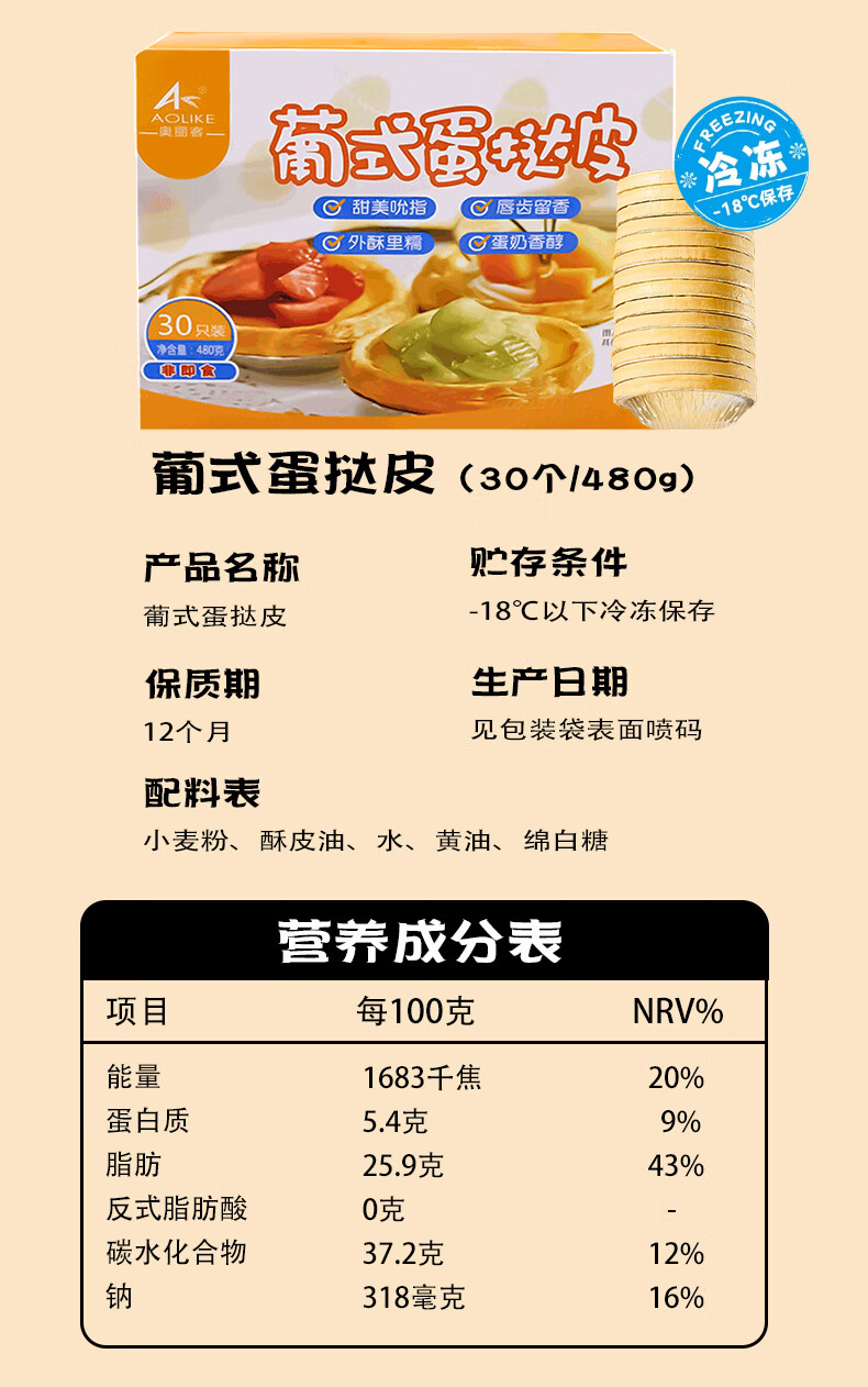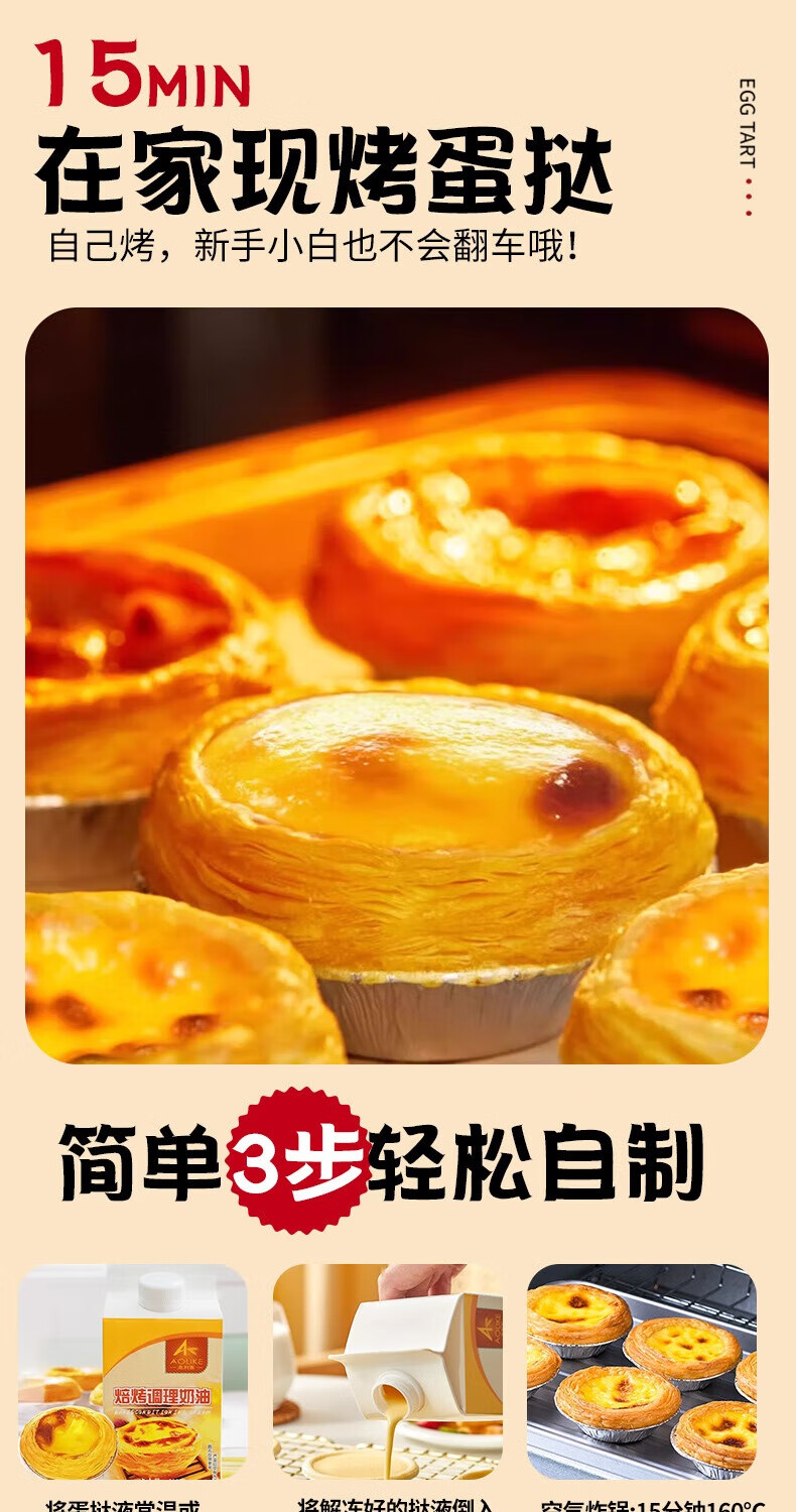 奥丽客大号葡式蛋挞皮蛋挞液组合装蛋挞皮蛋挞液空气炸锅食材早餐食品 蛋挞皮30个*1盒+蛋挞液500g*2盒