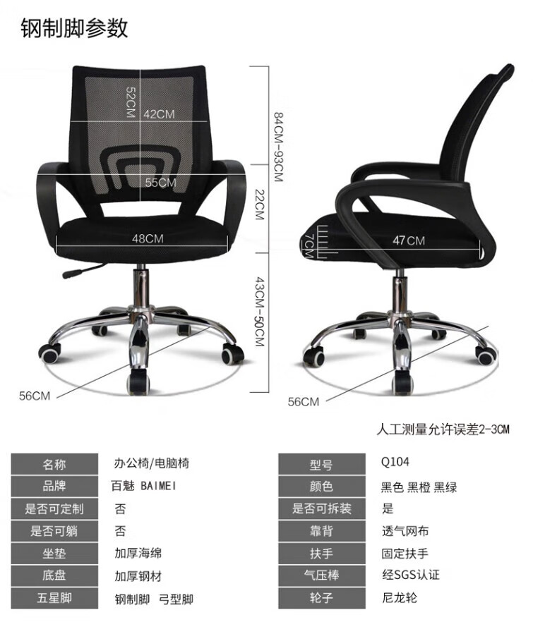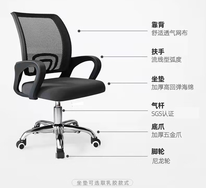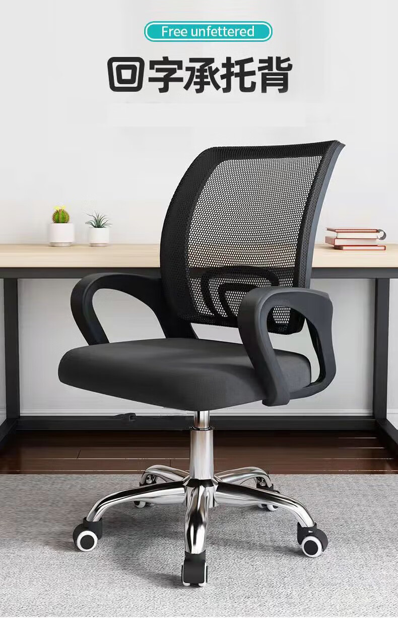百魅办公椅电脑椅子靠背家用学习椅 会议椅久坐老板椅家居培训椅 黑框黑网-可升降