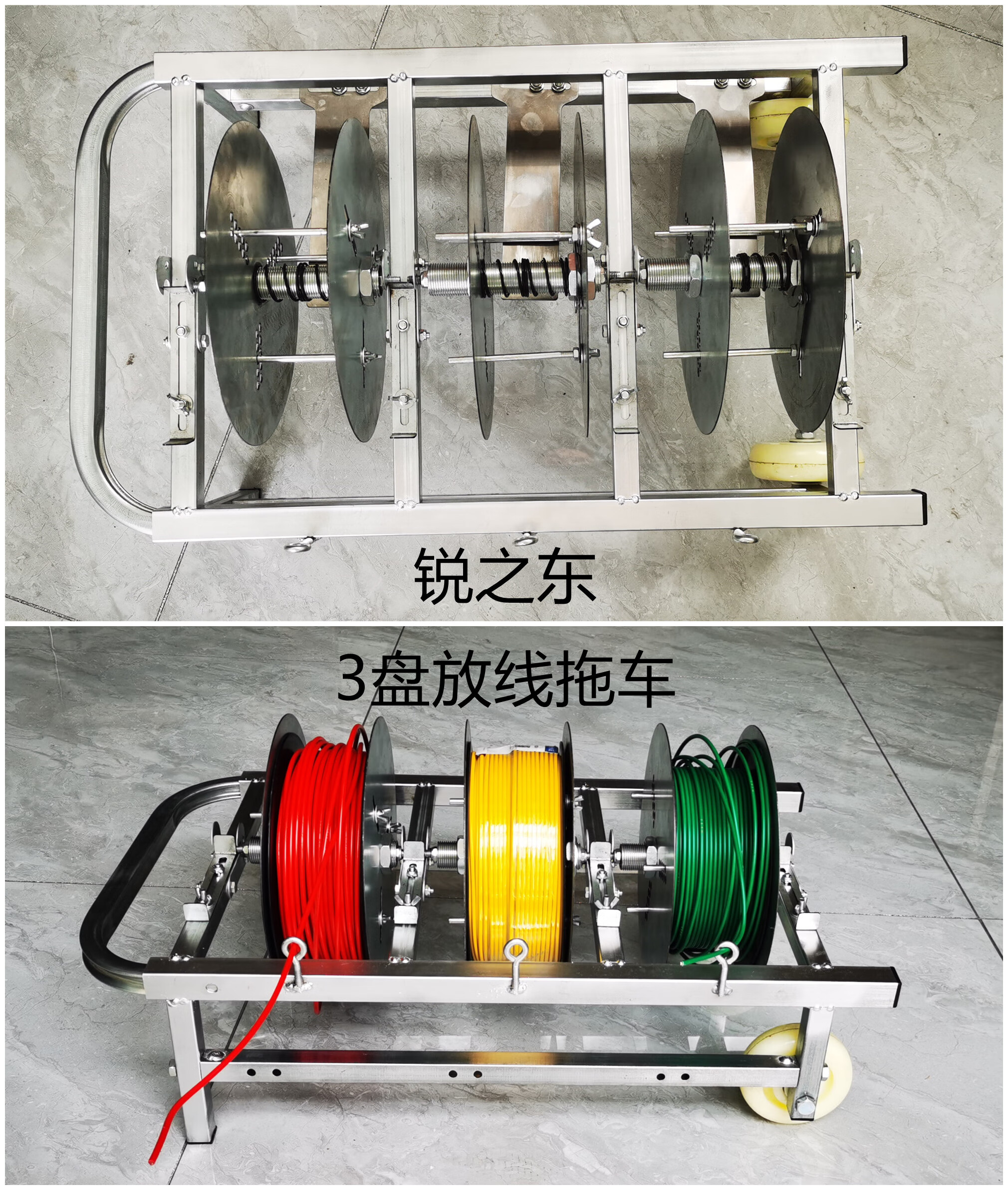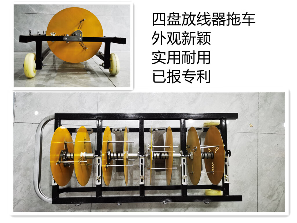 电线放线架带轮子可折叠加厚放线神器BV线三线多线家装线电工工具 四盘放线器拉车款