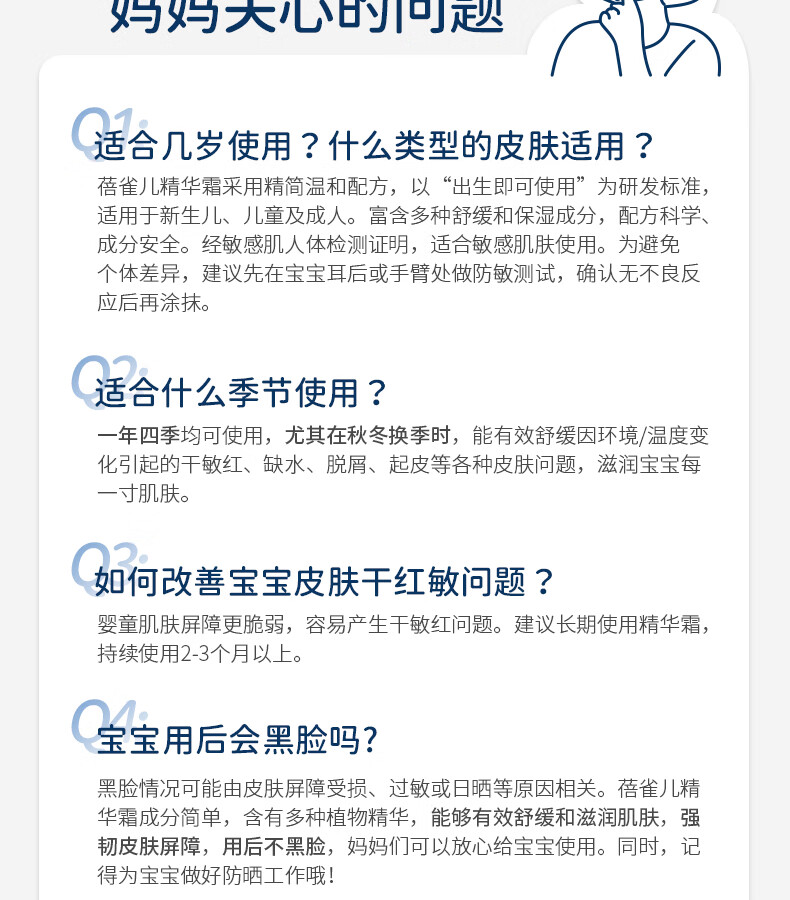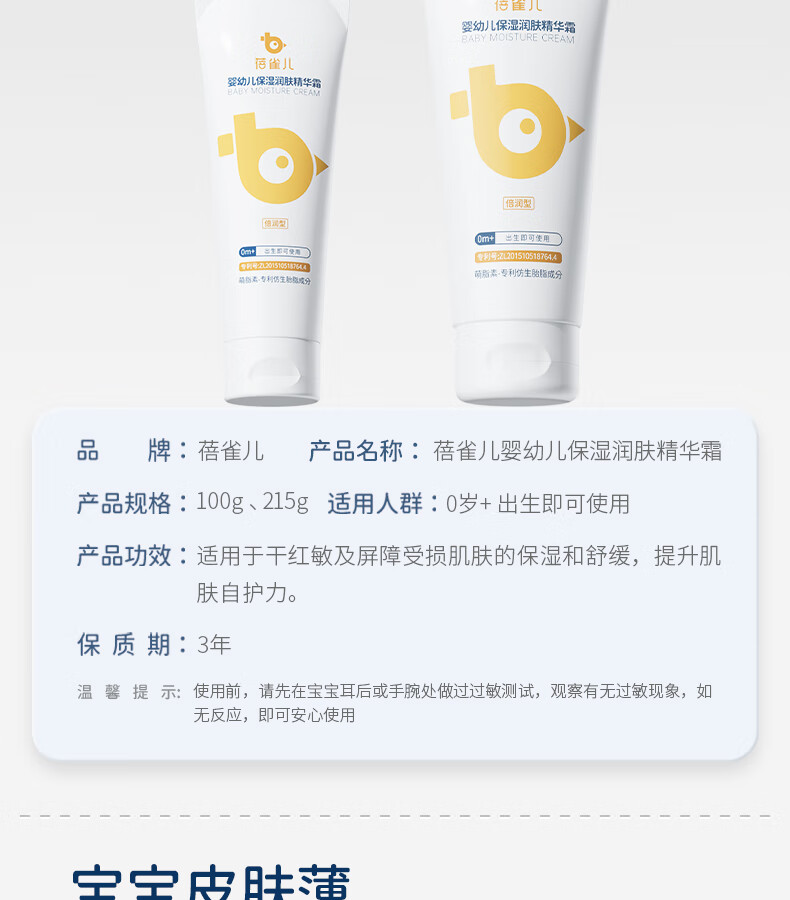 蓓雀儿宝宝润肤霜保湿补水滋润儿童新生婴儿面霜面部擦脸全身可用 【应急舒缓红点】85%客户优选精华霜100g
