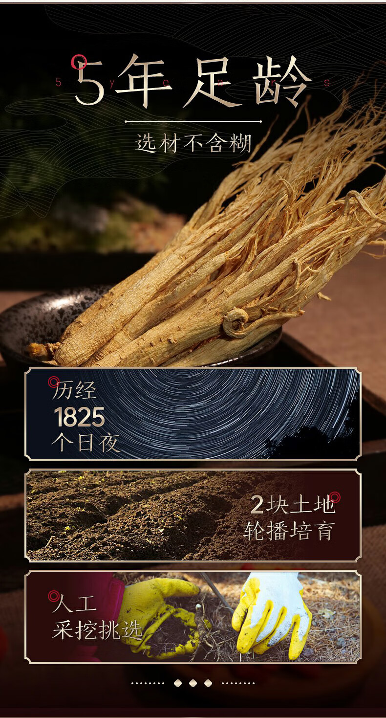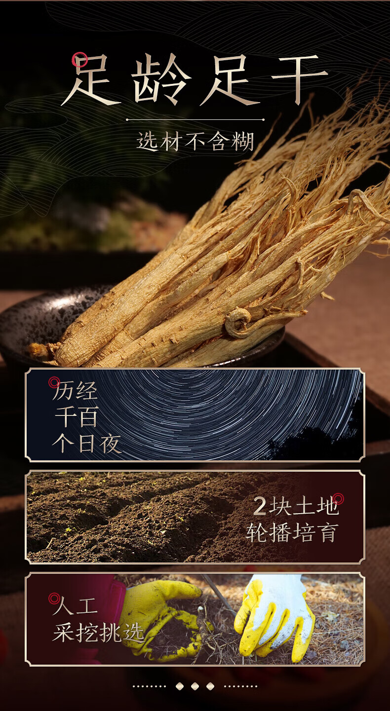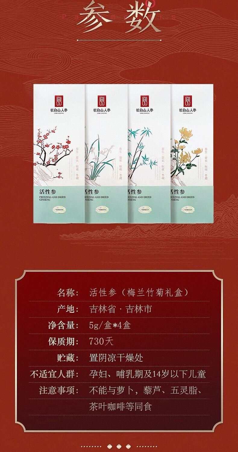 长白山人参活性冻干人参盒装送手袋梅兰竹菊套装煲汤泡水泡酒年货节礼盒 活性冻干人参4盒送2个礼袋