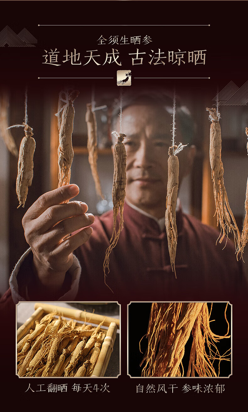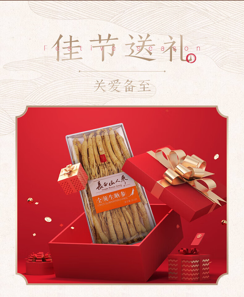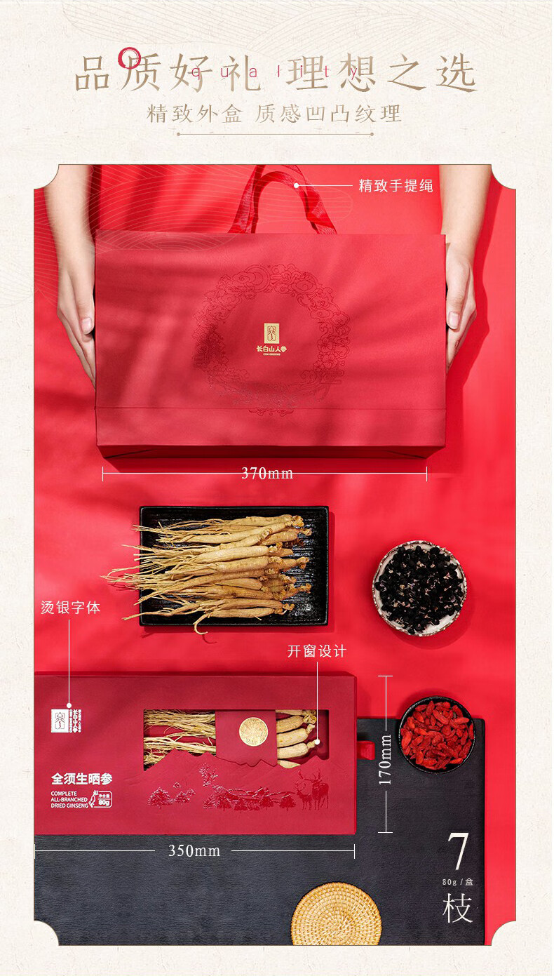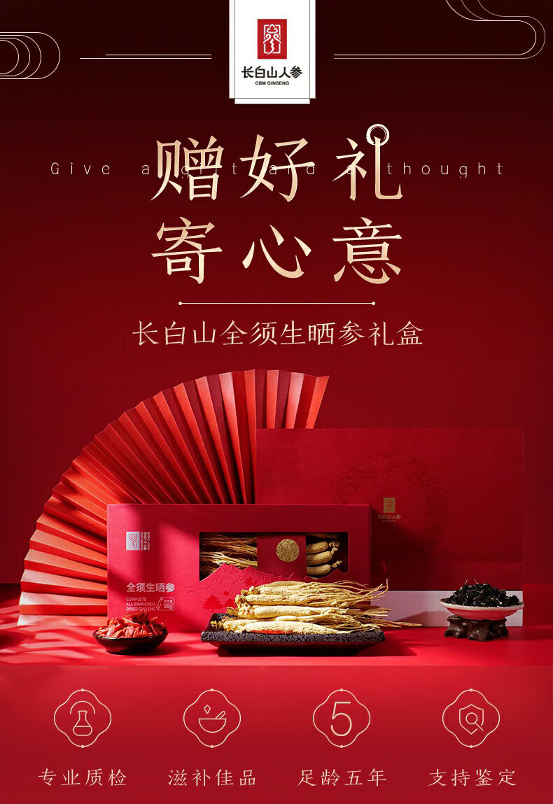 长白山人参干人参全须生晒参健康煲汤泡水泡酒材料年货送礼品盒皂苷丰富 全须生晒参2盒送1个礼袋