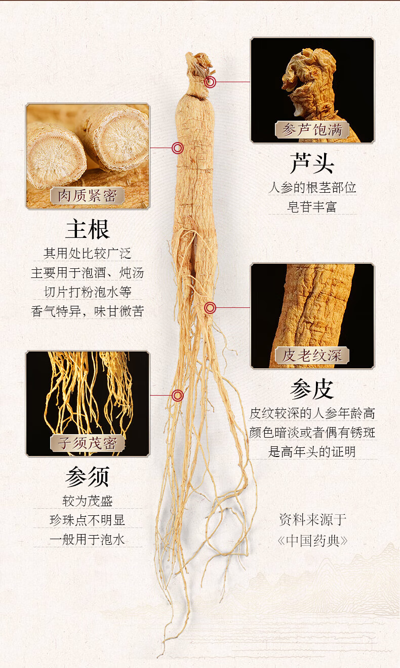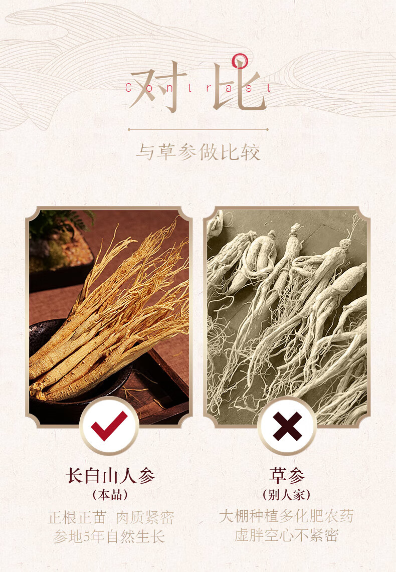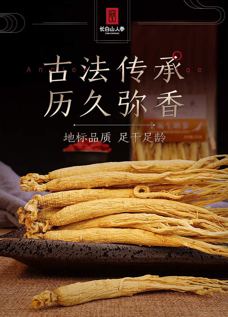长白山人参干人参全须生晒参健康煲汤泡水泡酒材料年货送礼品盒皂苷丰富 全须生晒参2盒送1个礼袋