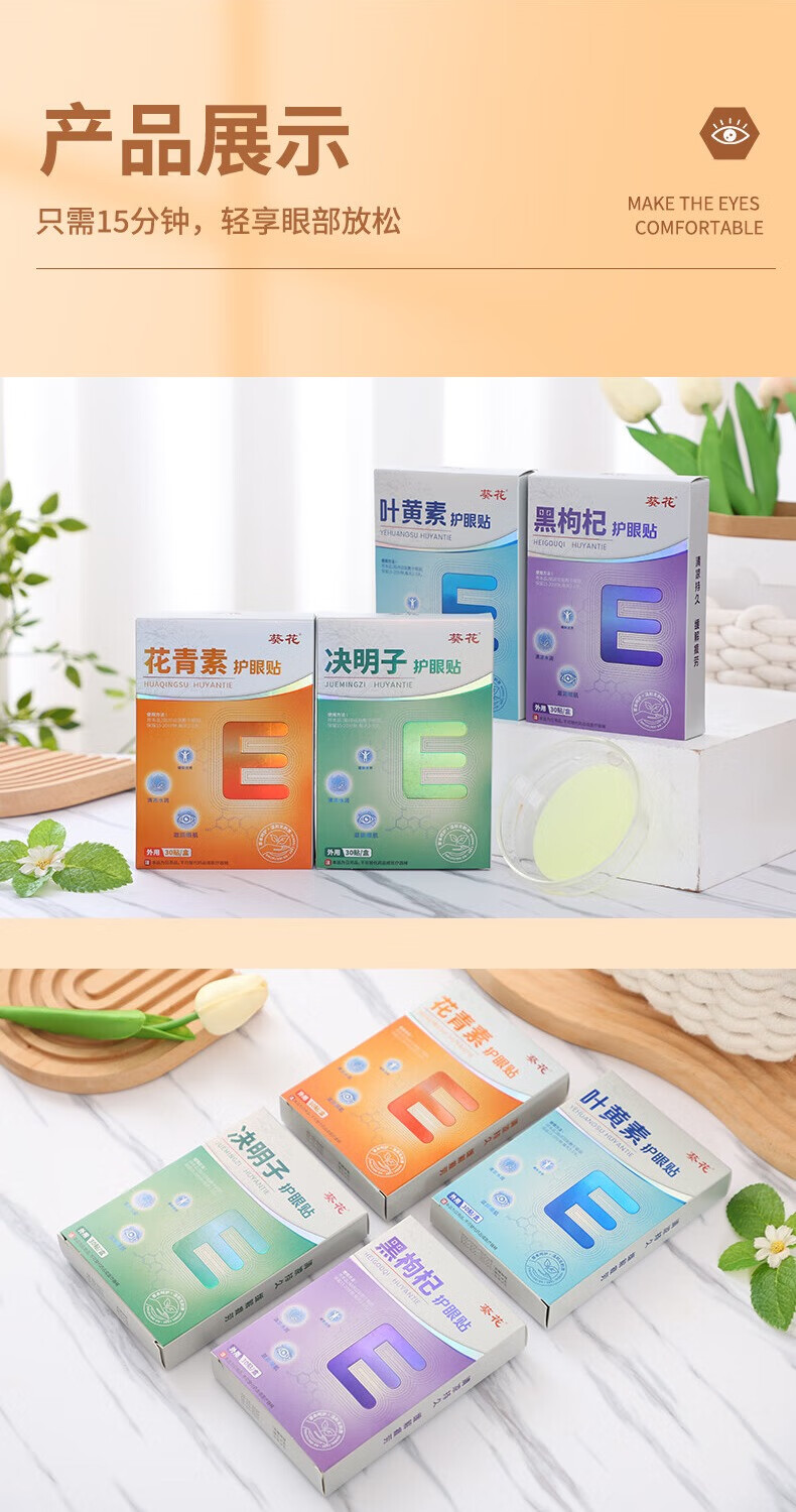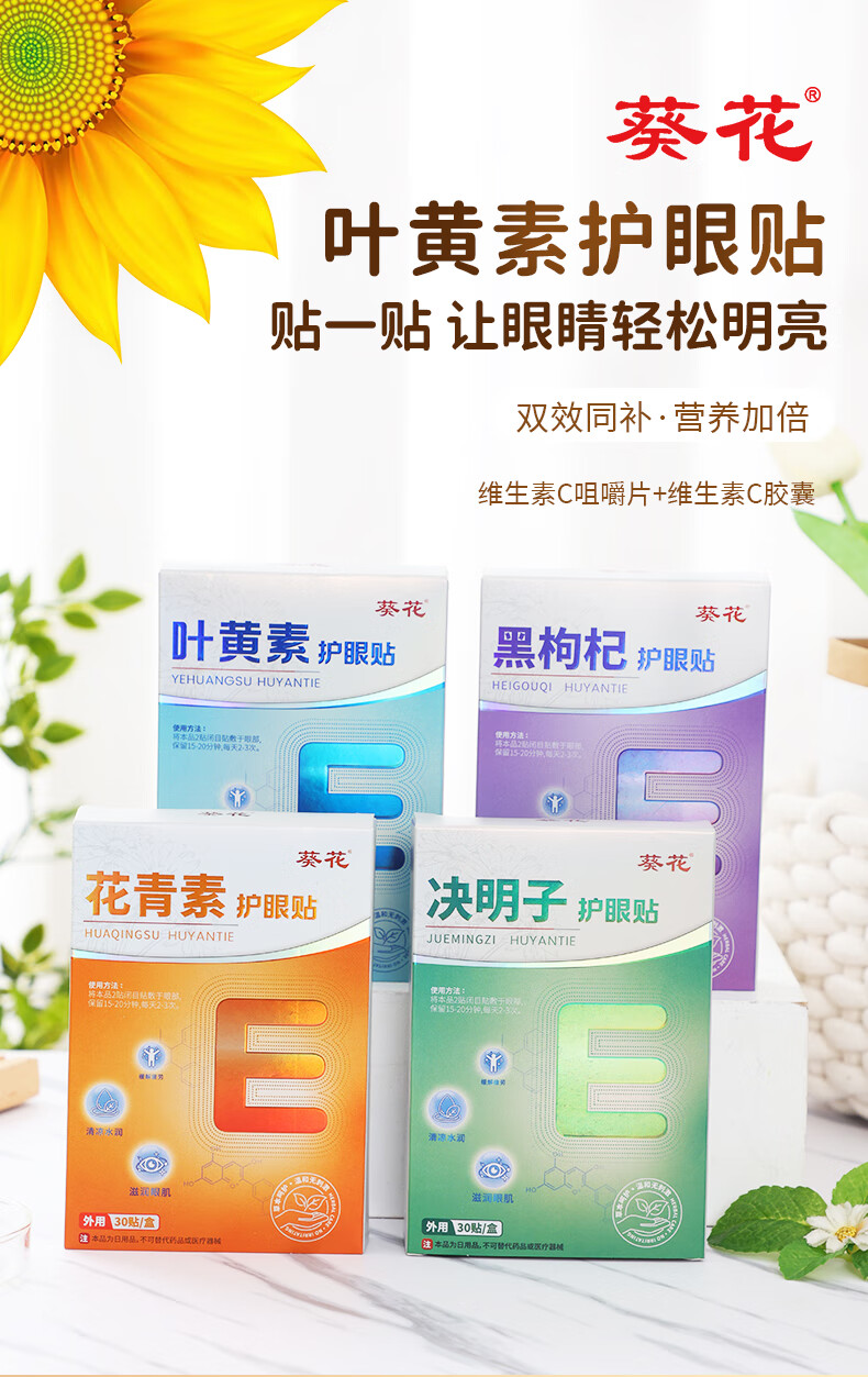 葵花叶黄素护眼贴缓解冷敷眼贴疲劳干涩近视呵护视力学生儿童通用 花青素眼贴 90贴