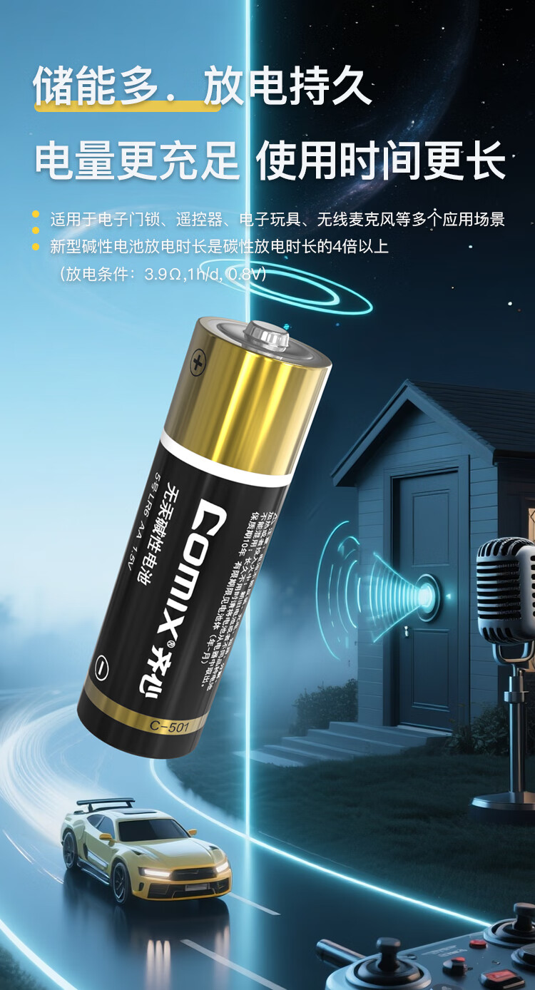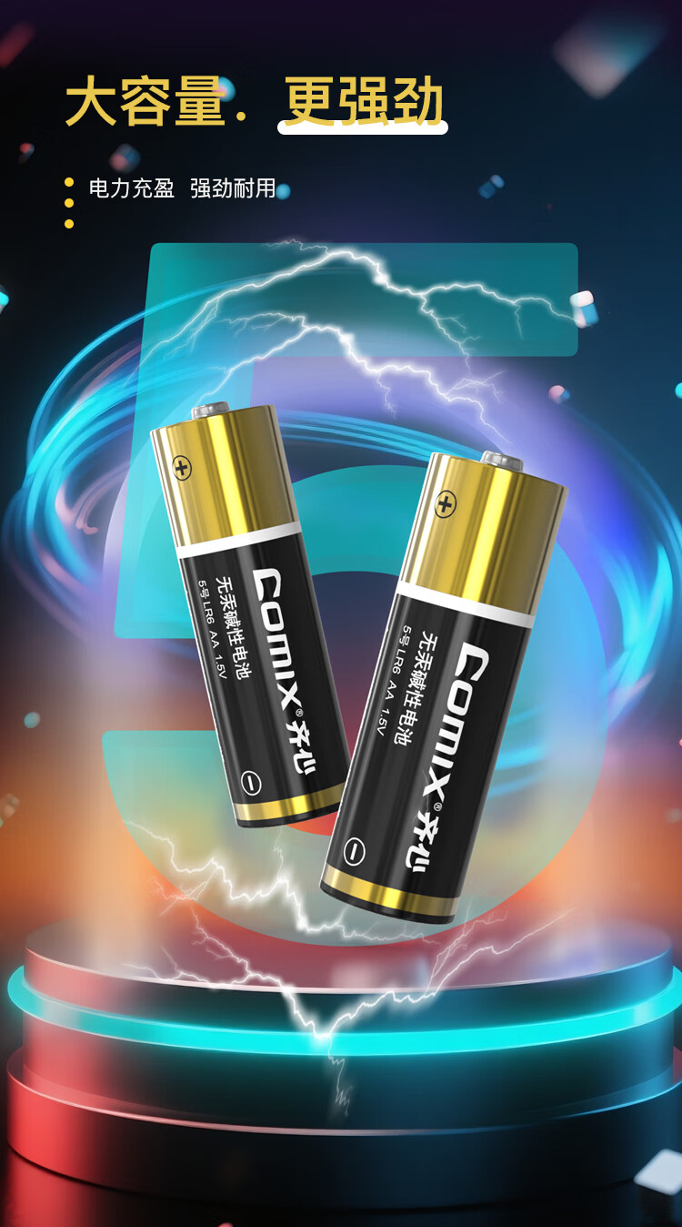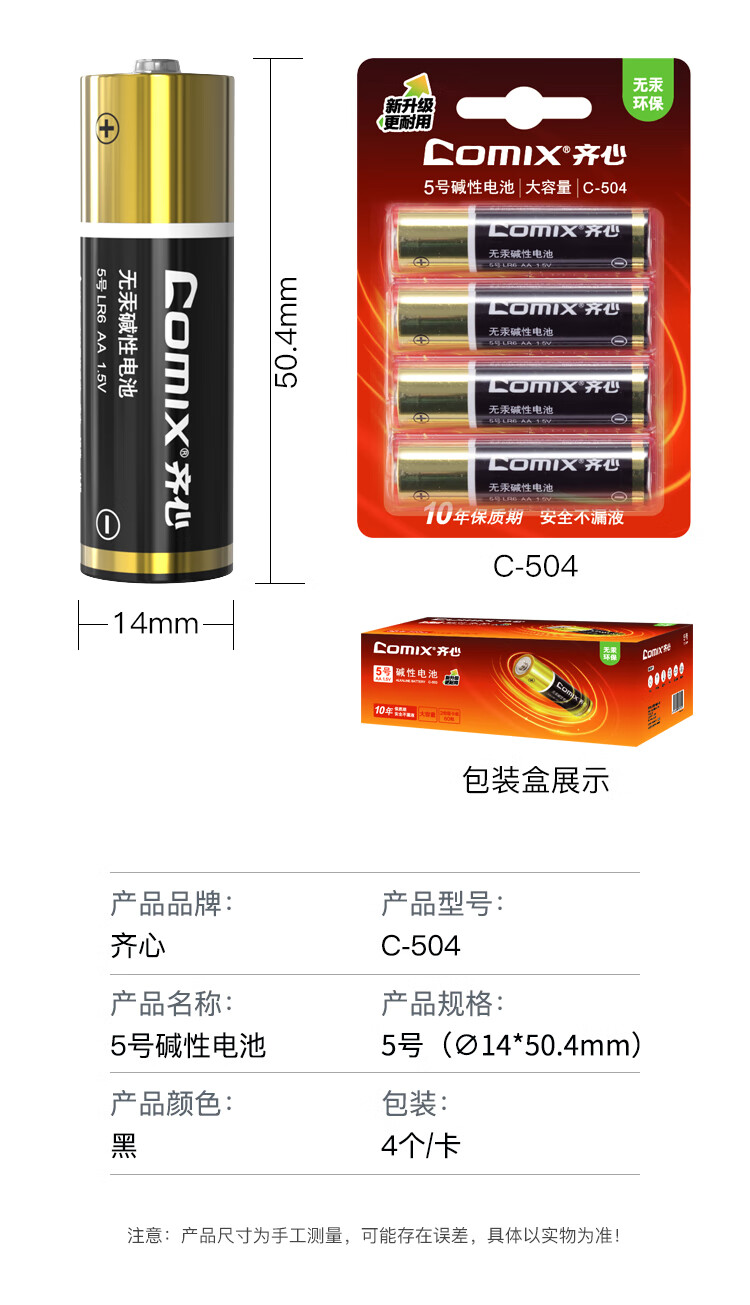 齐心(COMIX)5号碱性电池 适用于儿童玩具/血压计/血糖仪/挂钟/键盘/遥控器等(4粒装)办公用品 C-504