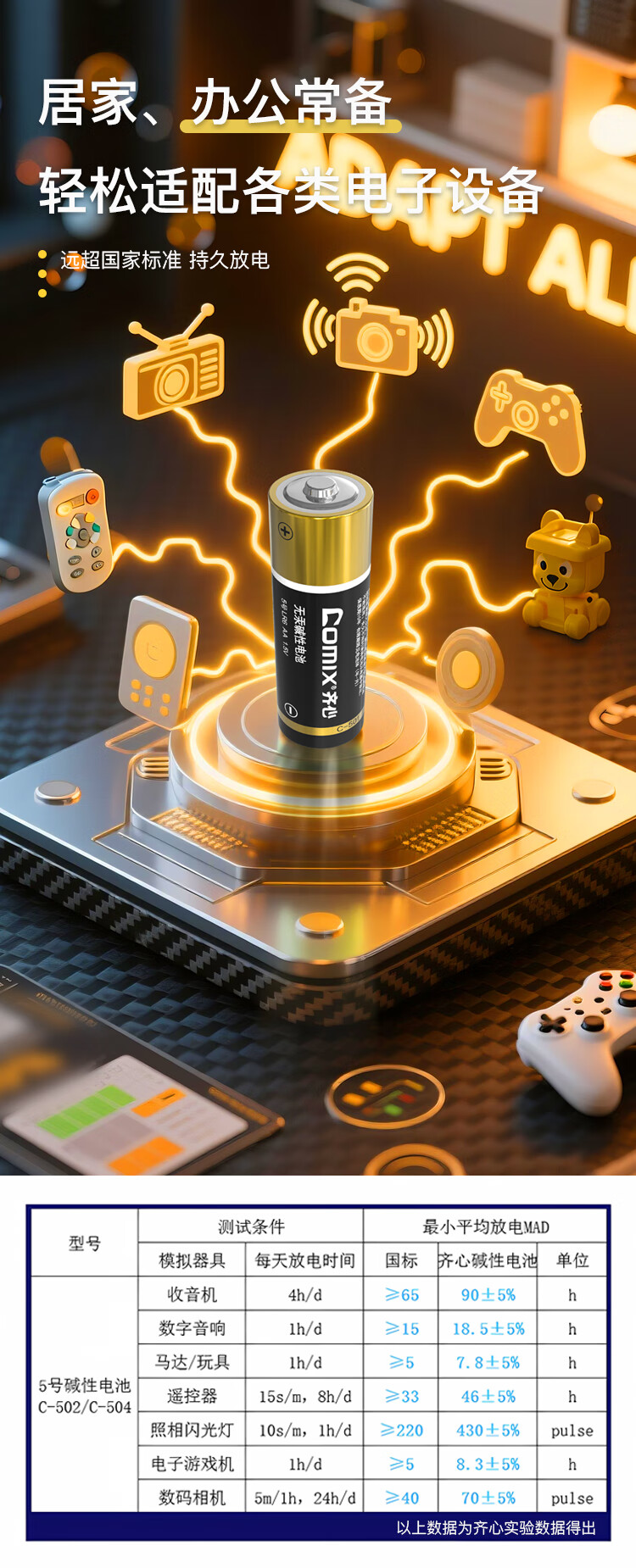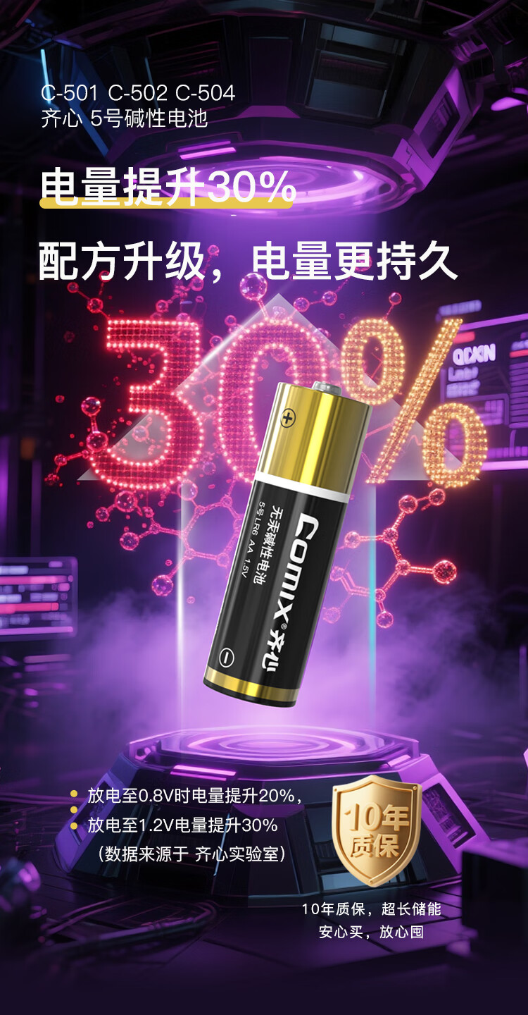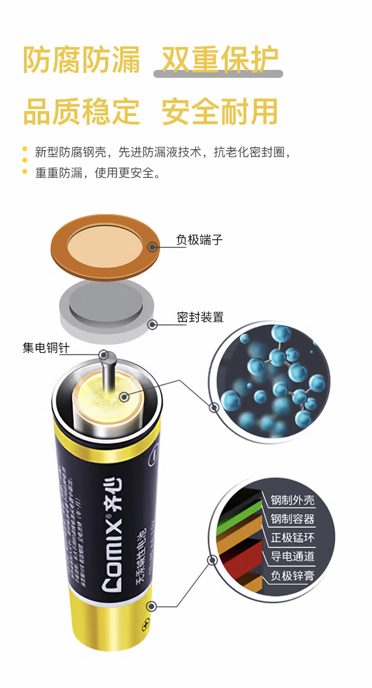 齐心(COMIX)5号碱性电池 适用于儿童玩具/血压计/血糖仪/挂钟/键盘/遥控器等(4粒装)办公用品 C-504