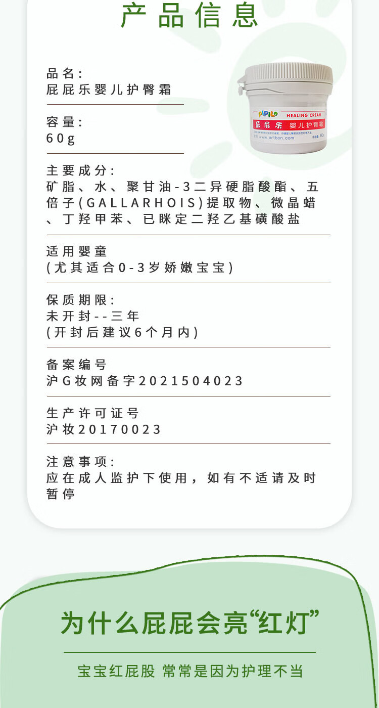 屁屁乐 护臀霜婴儿 宝宝护臀膏油 新生儿婴儿护肤霜60g