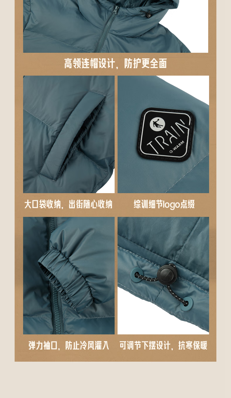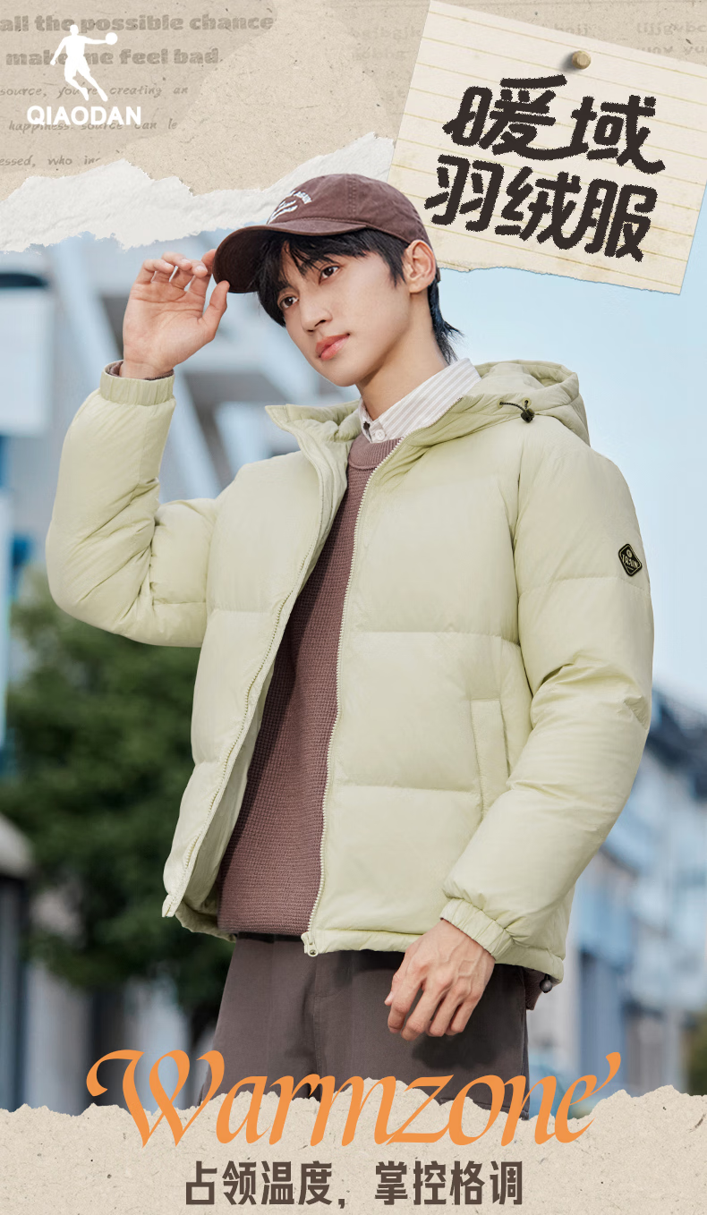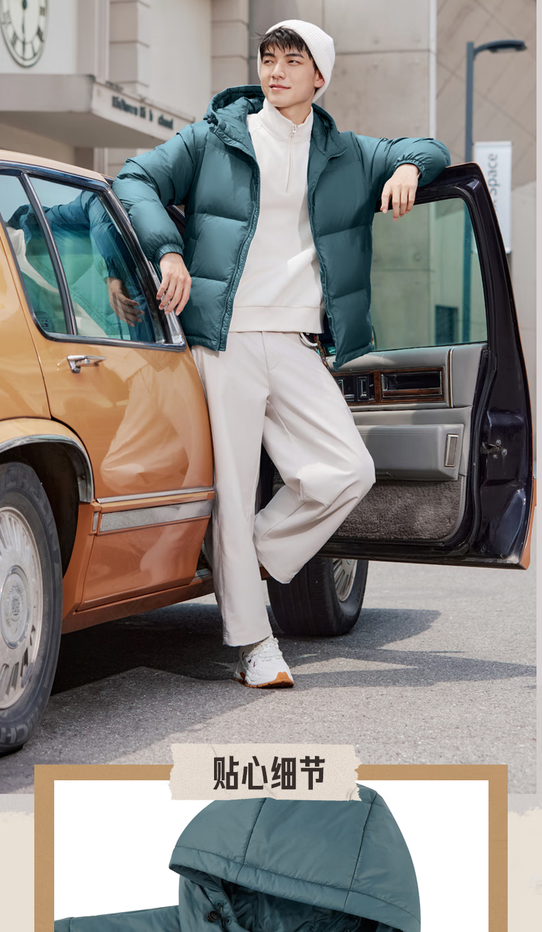 乔丹羽绒服男外套冬季保暖防寒防泼水连帽运动休闲夹克风衣 黑色 L 充绒量148g