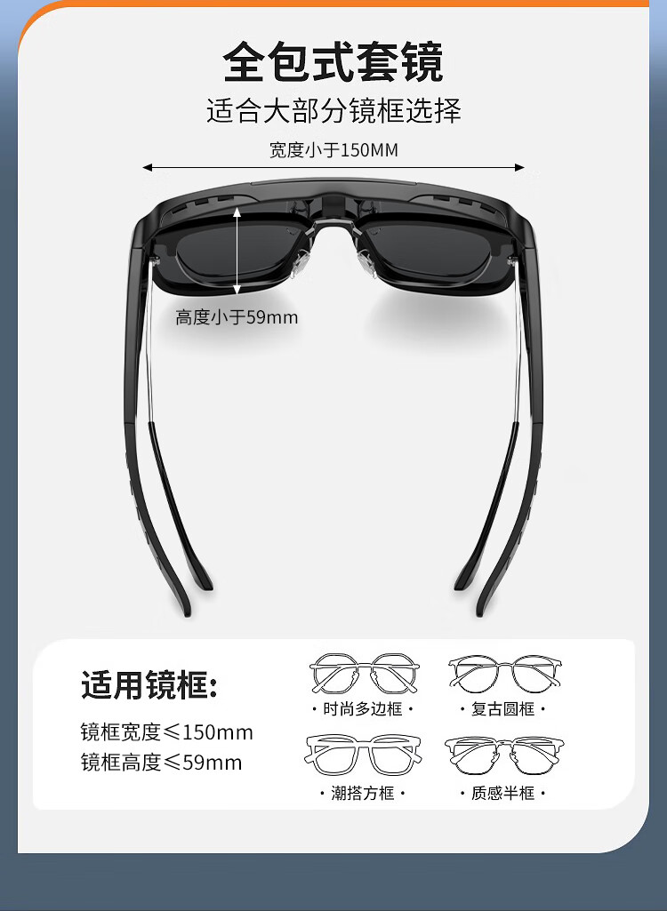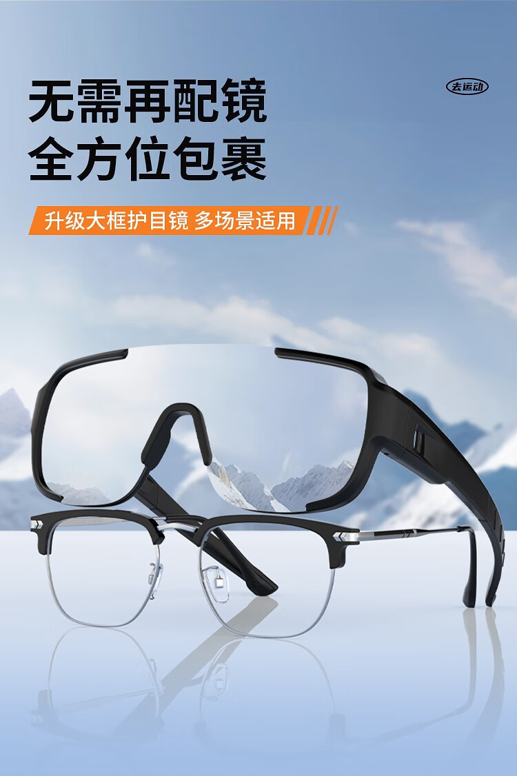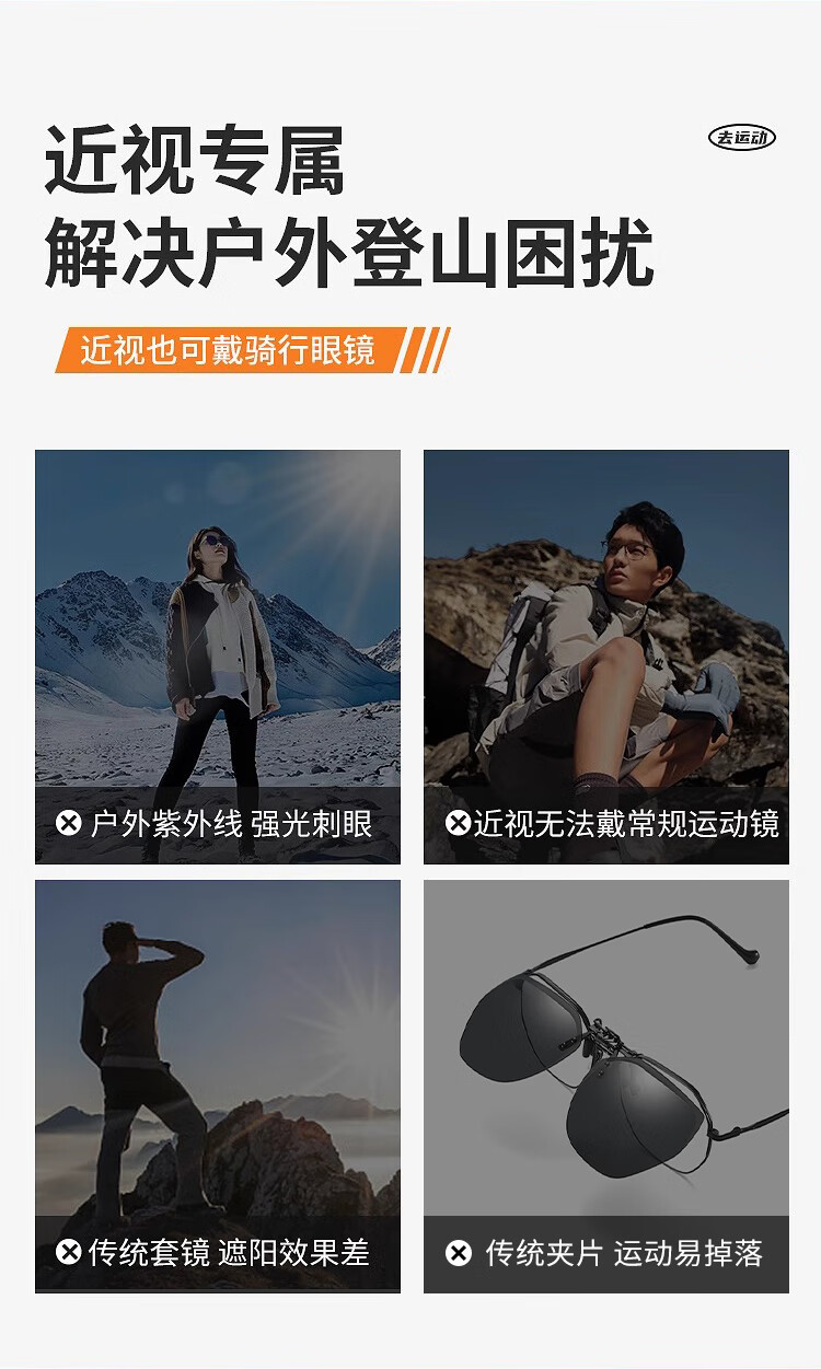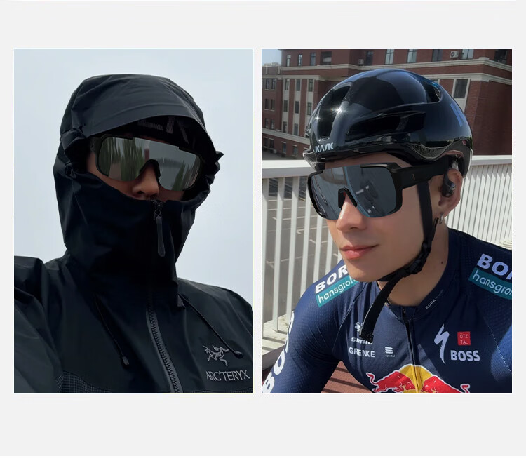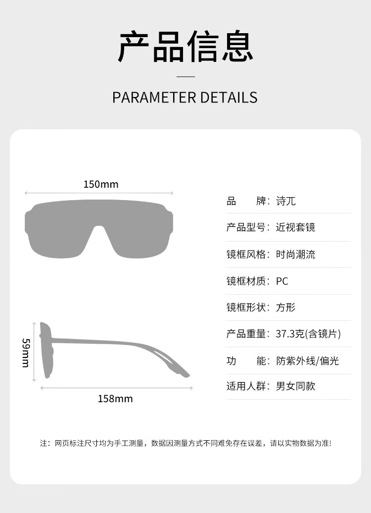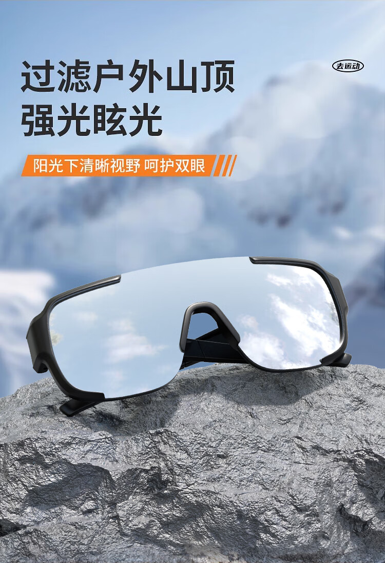 诗兀徒步登山眼镜防紫外线可戴近视眼镜男女骑行墨镜护目镜黑框白水银