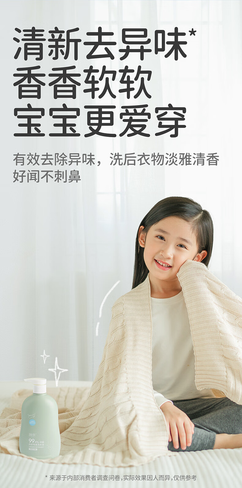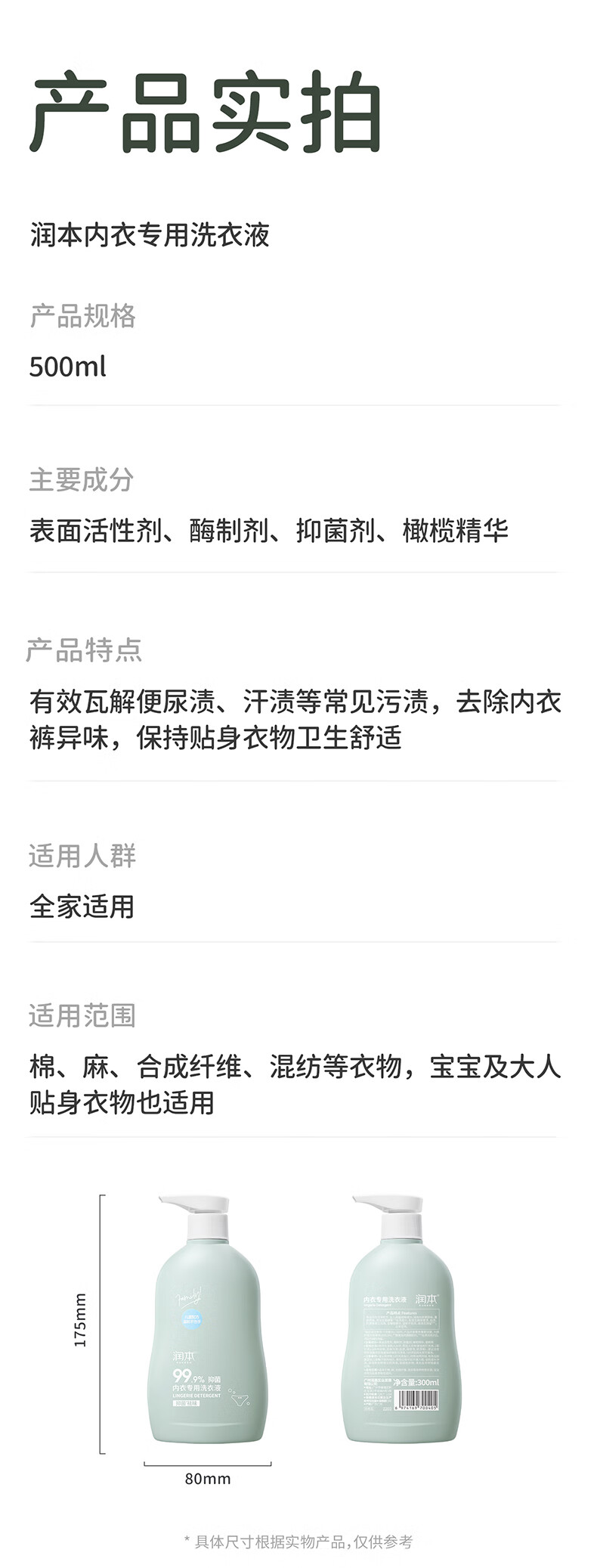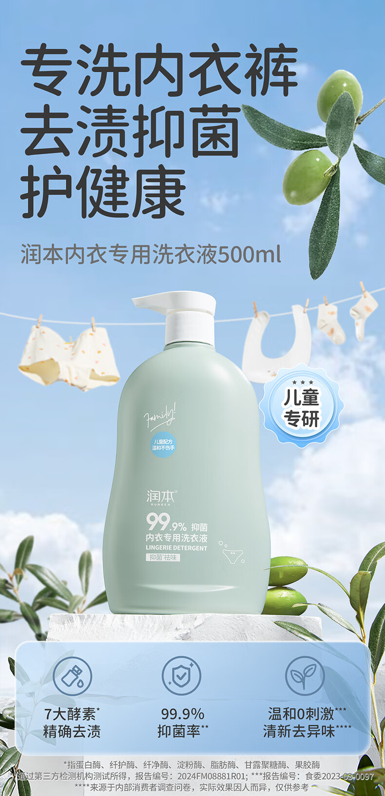 润本(RUNBEN)儿童内衣内裤专用洗衣液500ml 婴儿大人可用洗衣液抑菌祛味大容量