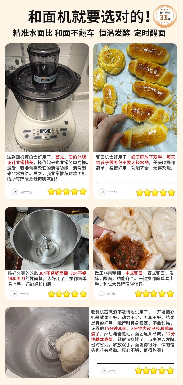 利仁(Liven)2025新款和面机家用全自动和面揉面一体机5L专利控水箱厨师机发酵发面搅面机面包面食机HMJ-D5621