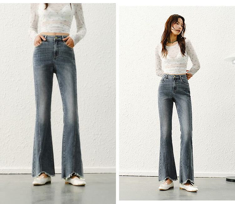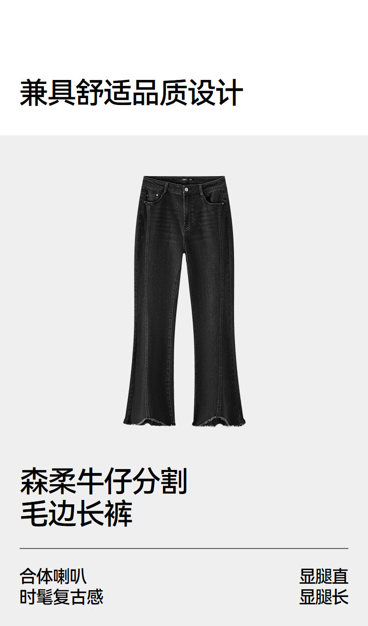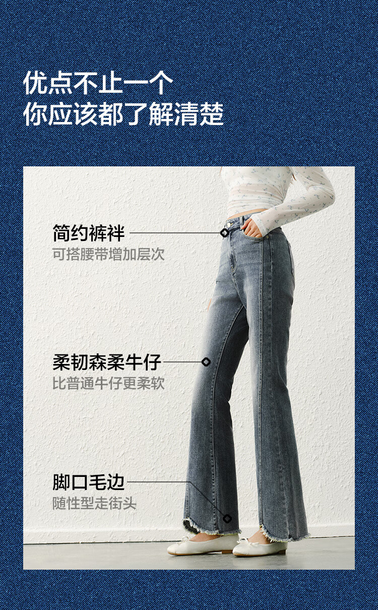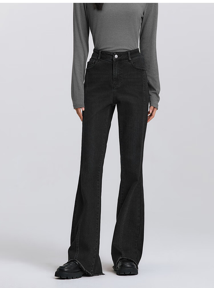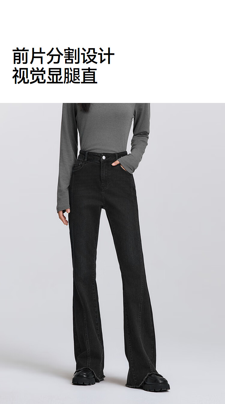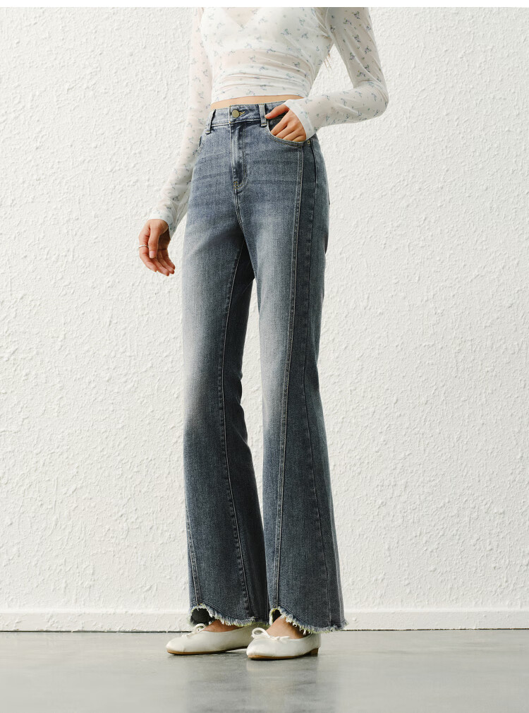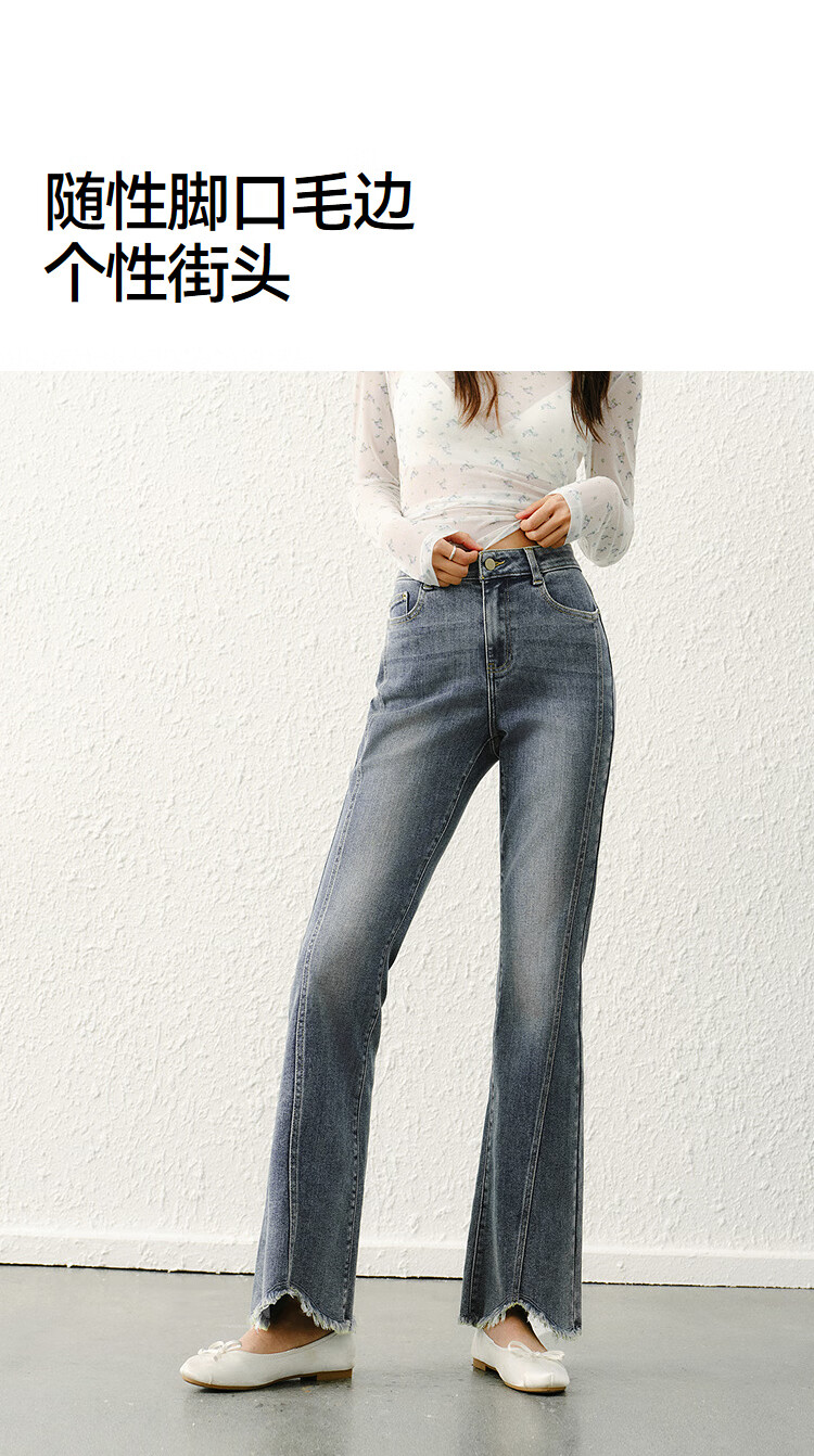 森马(Semir)森柔|牛仔裤女春季毛边分割长裤显腿长设计感喇叭裤103125124003A