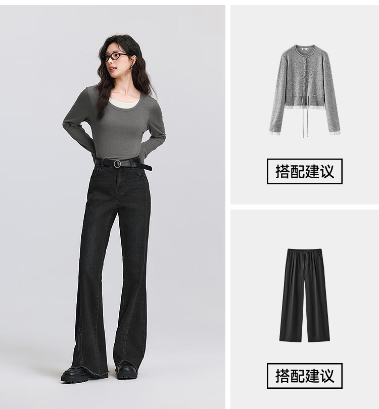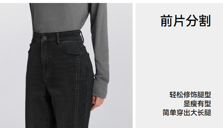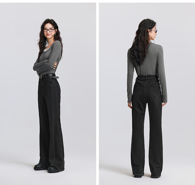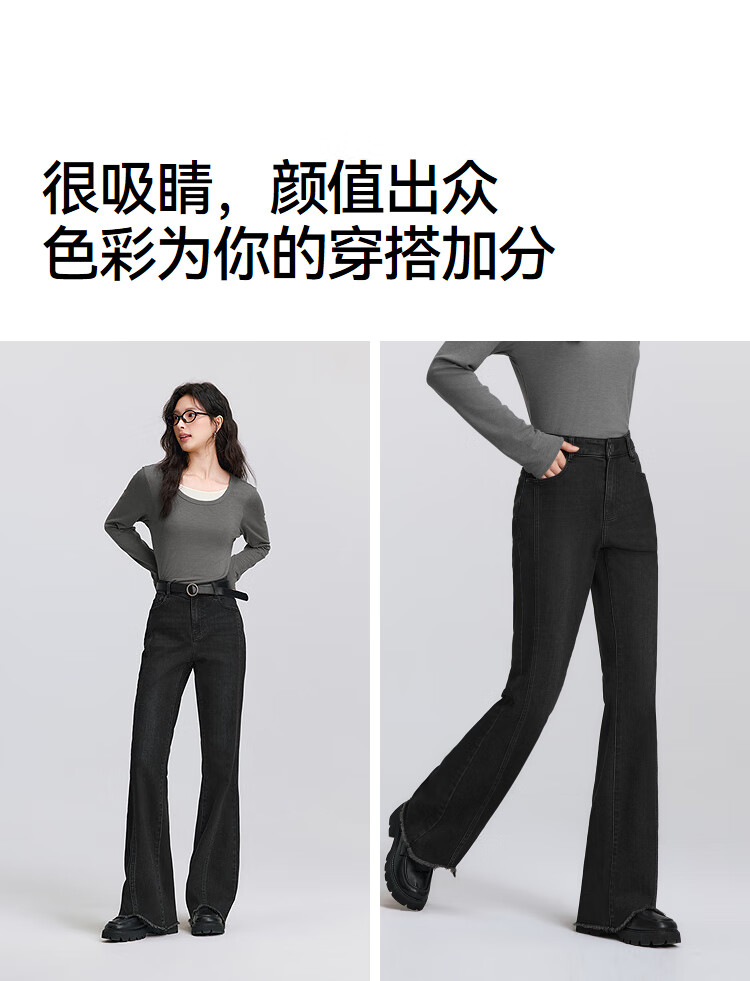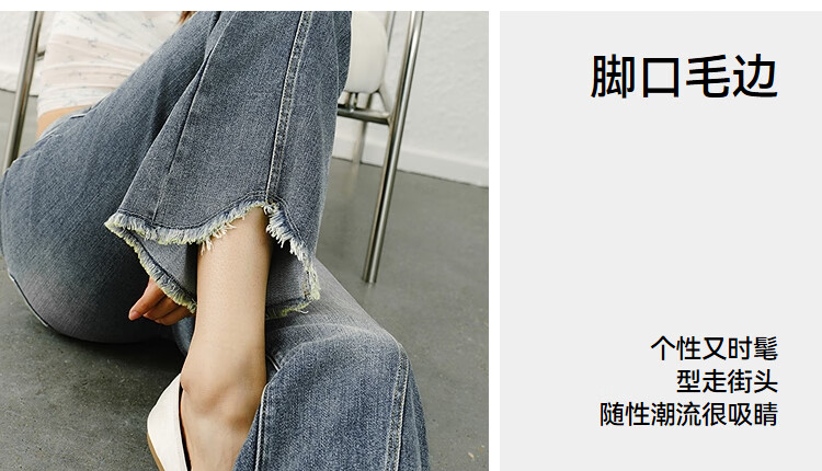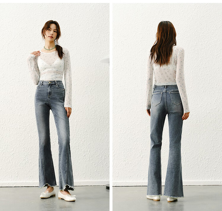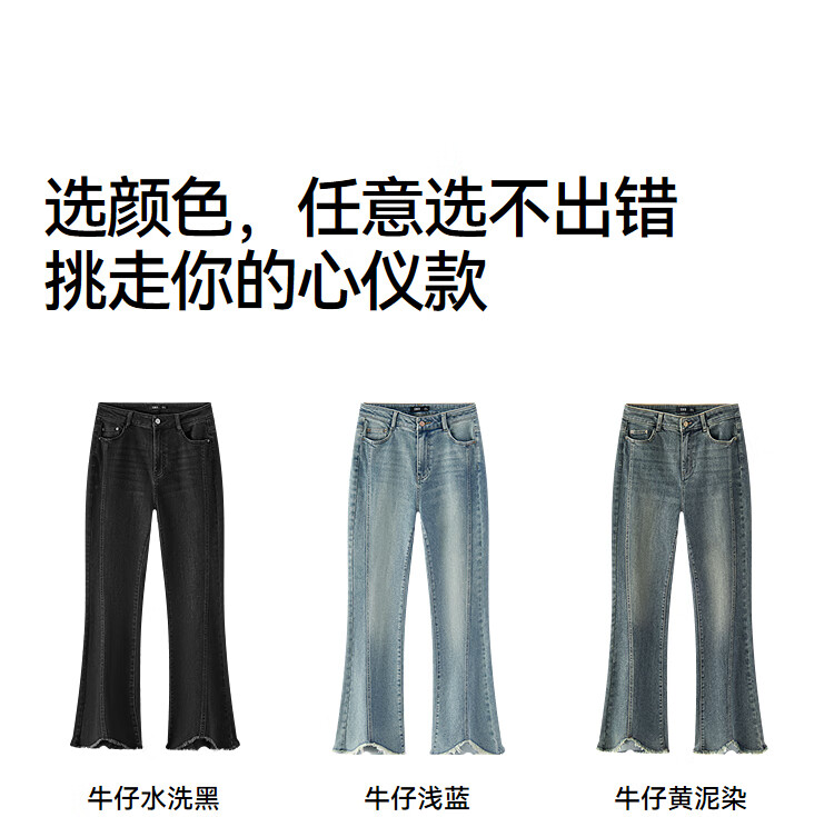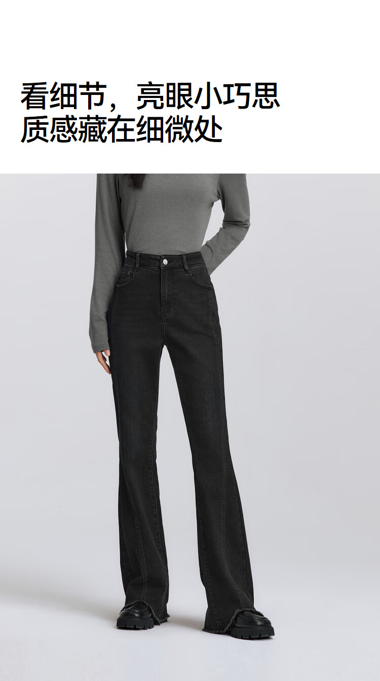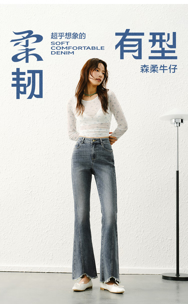 森马(Semir)森柔|牛仔裤女春季毛边分割长裤显腿长设计感喇叭裤103125124003A