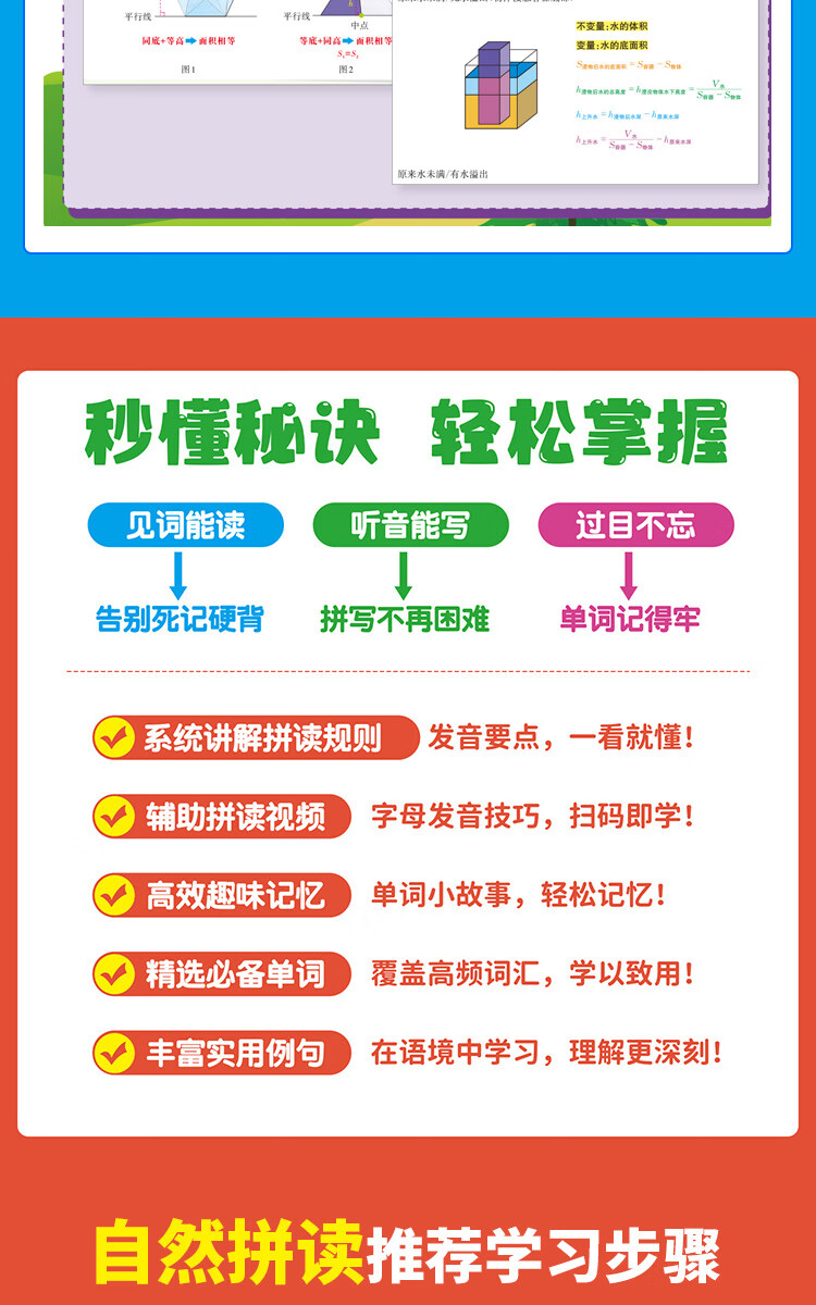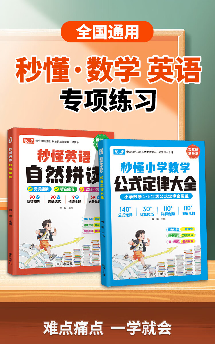卷恋秒懂英语自然拼读零基础学英语字母书写速记发音规则串记秒懂小学数学公式定律大全 归纳总结小学数学常用公式定律计算技巧一本全 秒懂英语自然拼读 小学通用