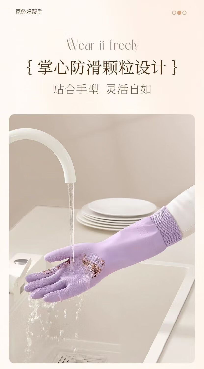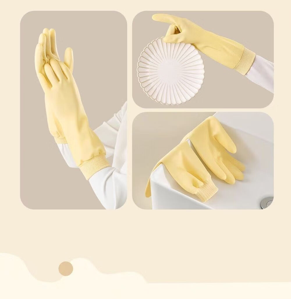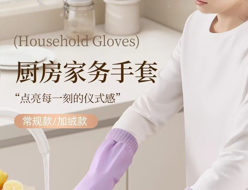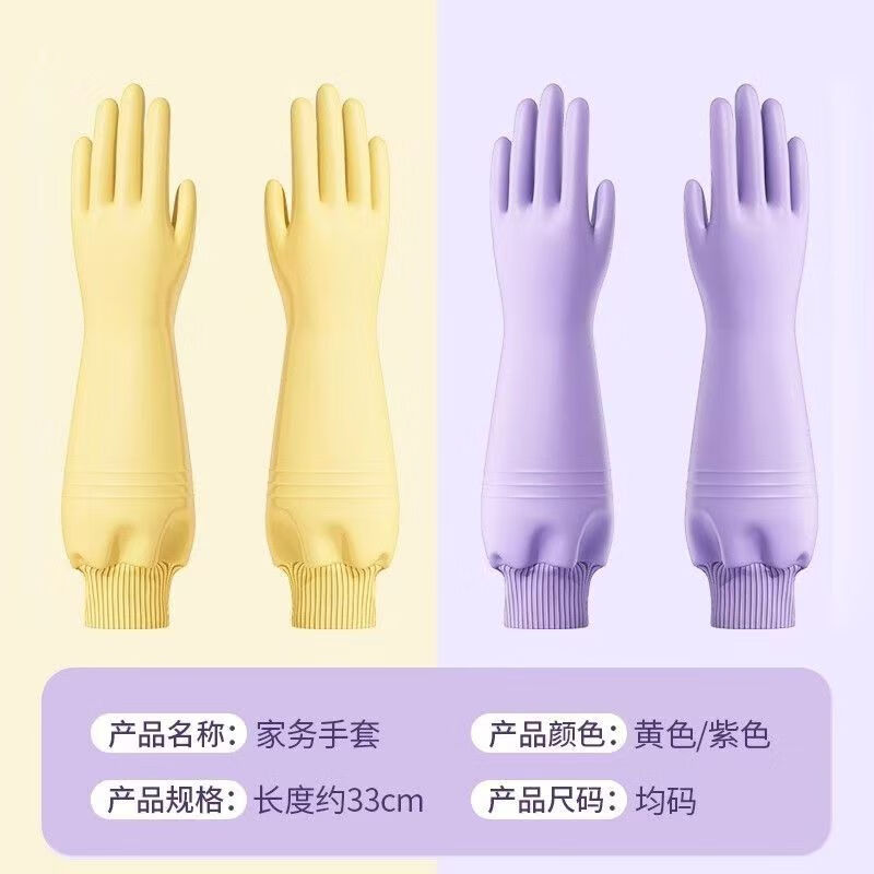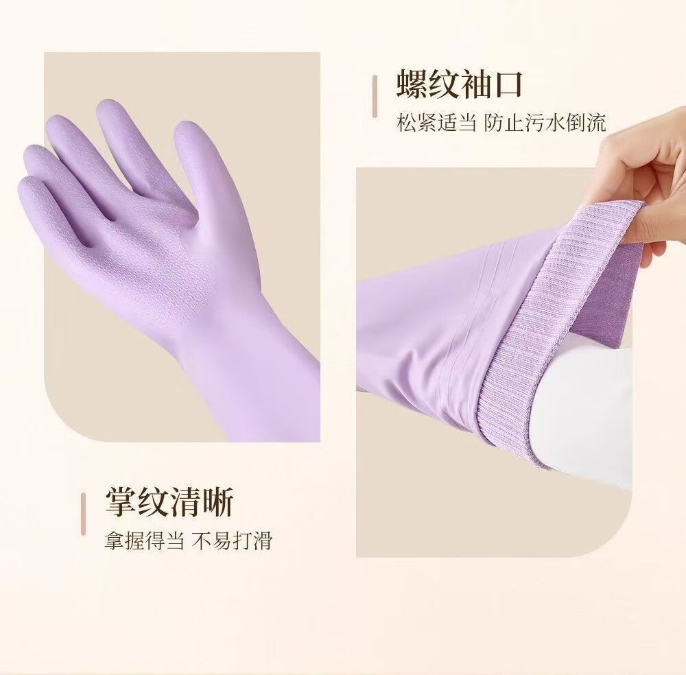 洋臣加厚螺纹束口刷碗洗碗手套橡胶清洁防水防滑家务厨房清洁耐用手套 螺纹袖束口3双【加绒款】颜色随机
