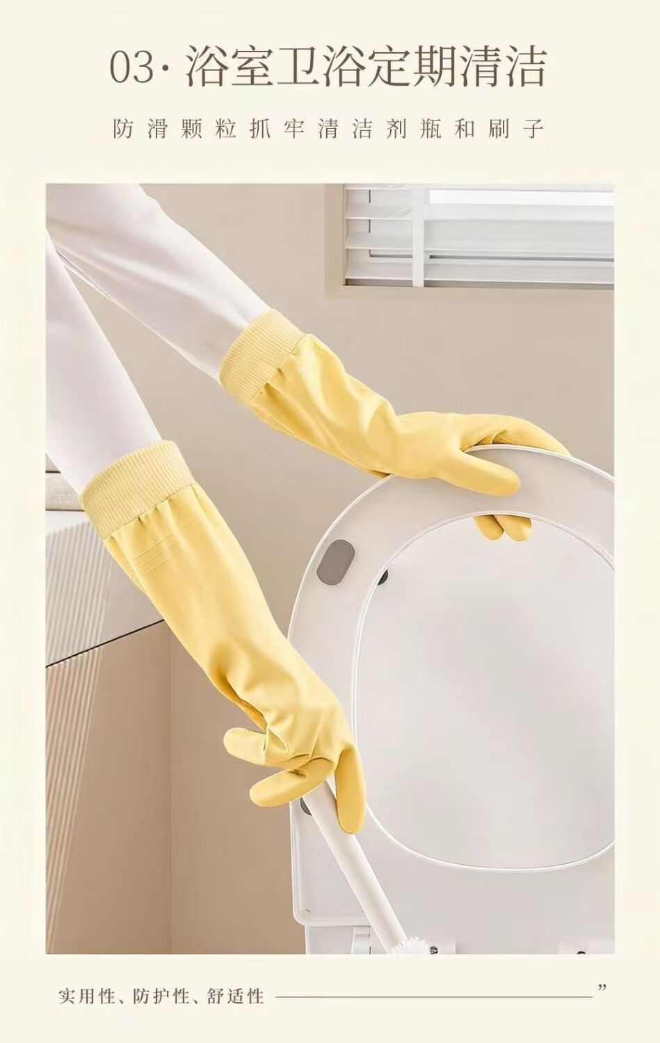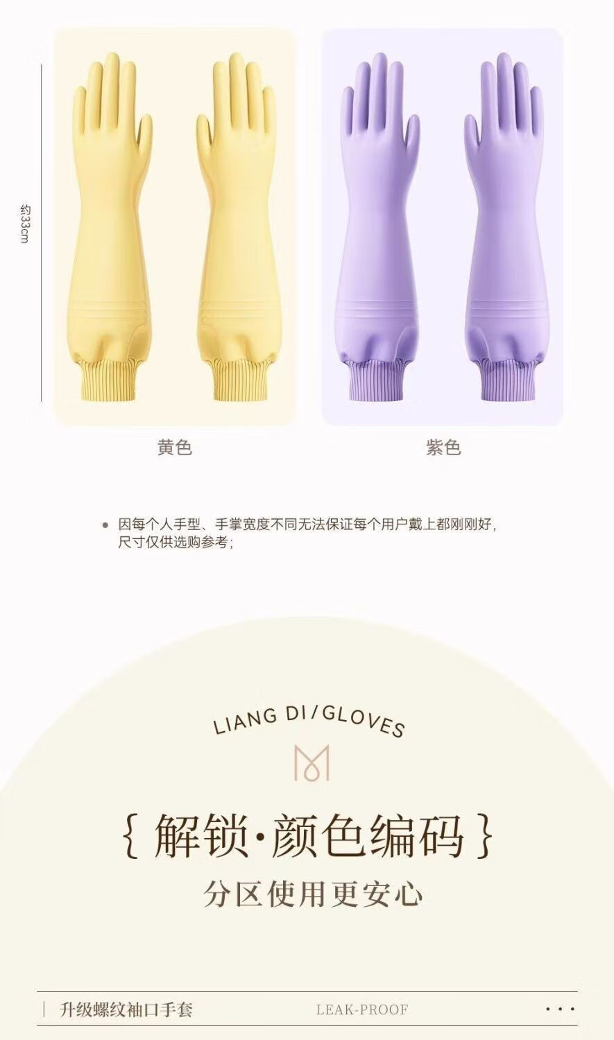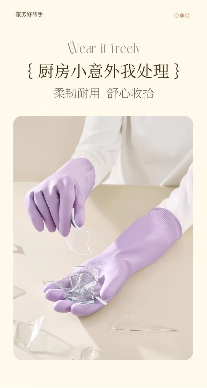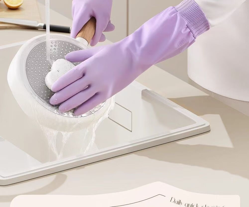 洋臣加厚螺纹束口刷碗洗碗手套橡胶清洁防水防滑家务厨房清洁耐用手套 螺纹袖束口3双【加绒款】颜色随机