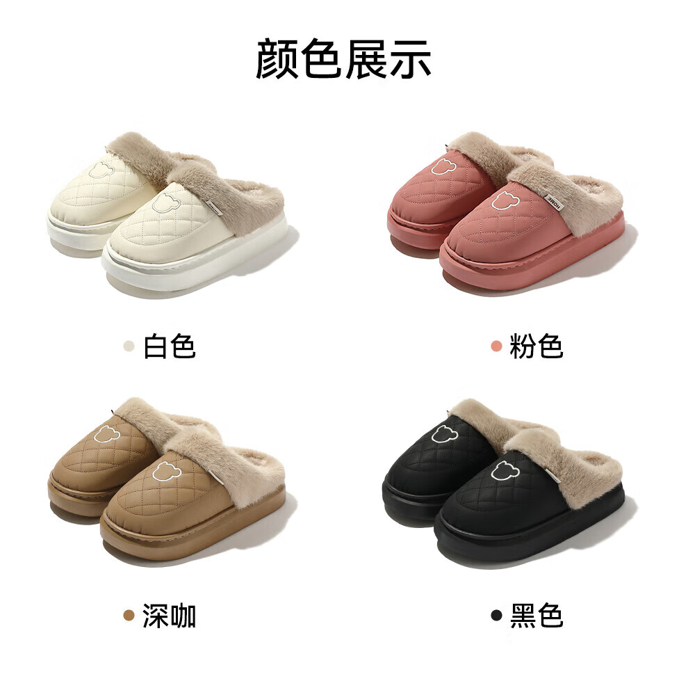 朴西女士防水棉拖鞋秋冬季居家室内保暖可拆卸毛绒厚底增高男士拖鞋 树莓红 36-37