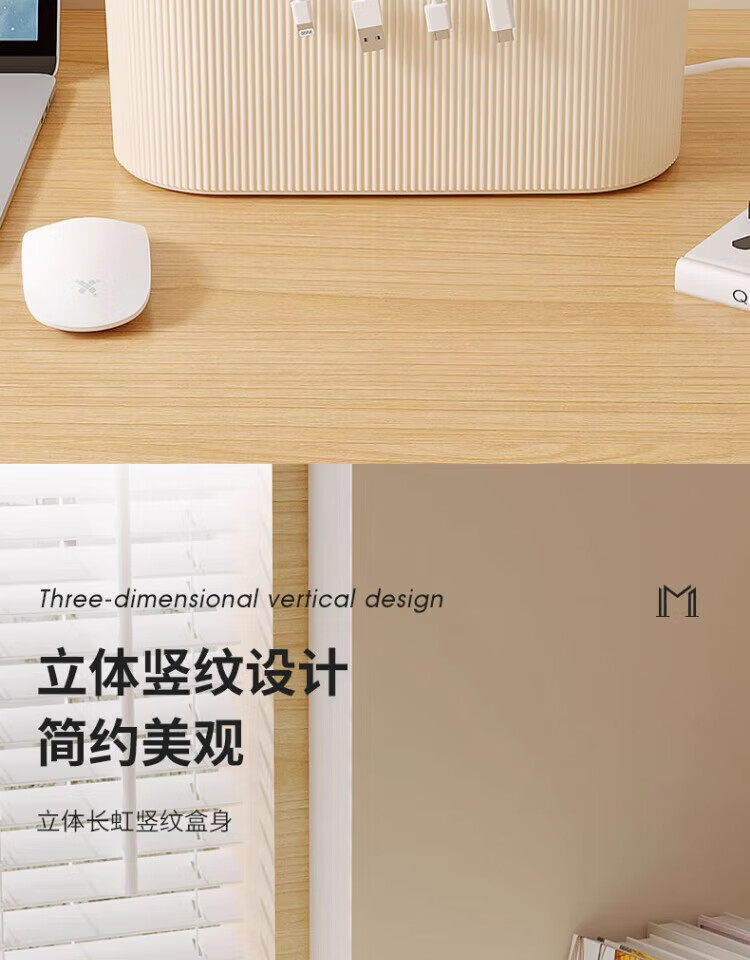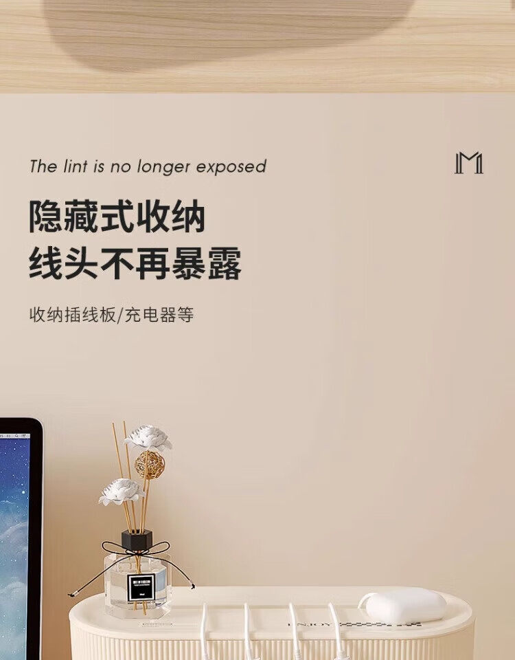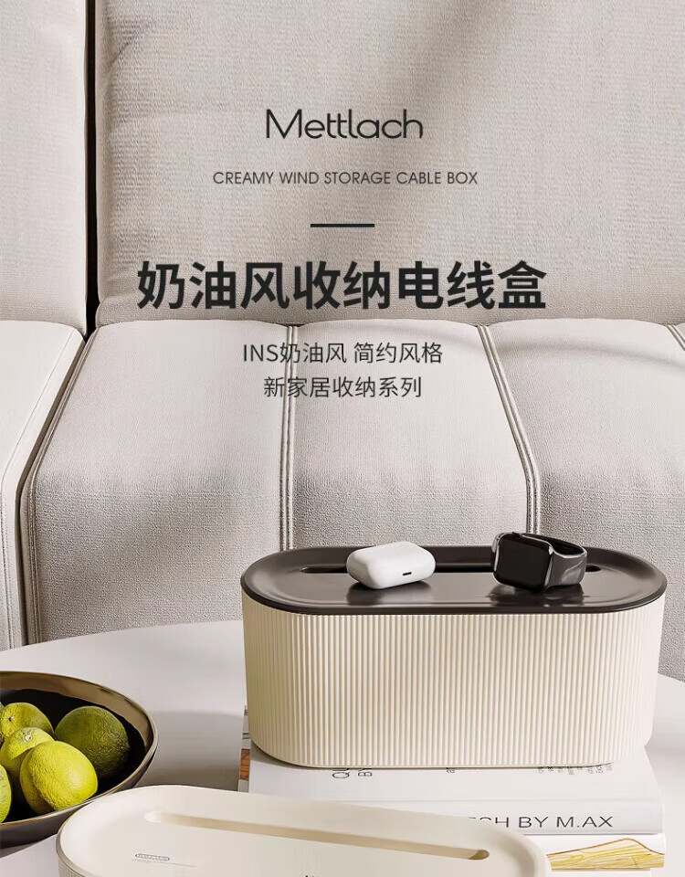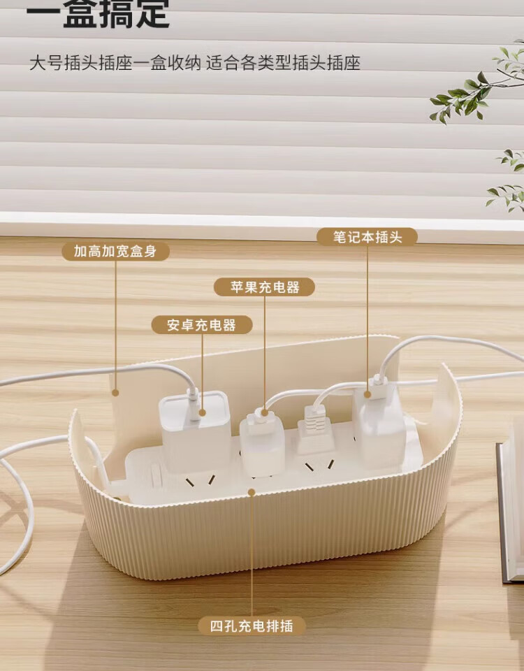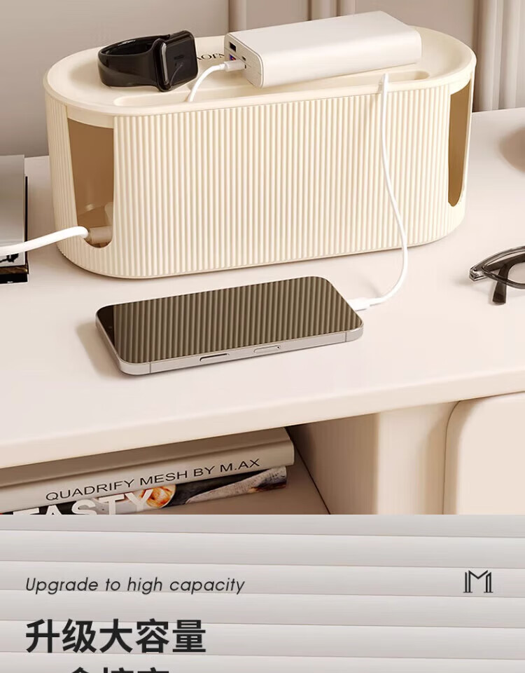 木格格数据线收纳盒充电线收纳盒充电器遥控器收纳盒桌面储物盒置物盒子 奶油白盖子遮挡神器收纳盒