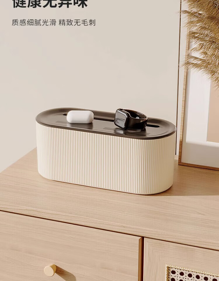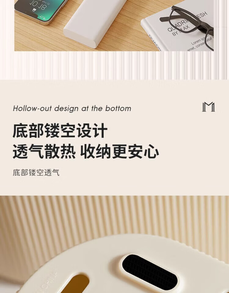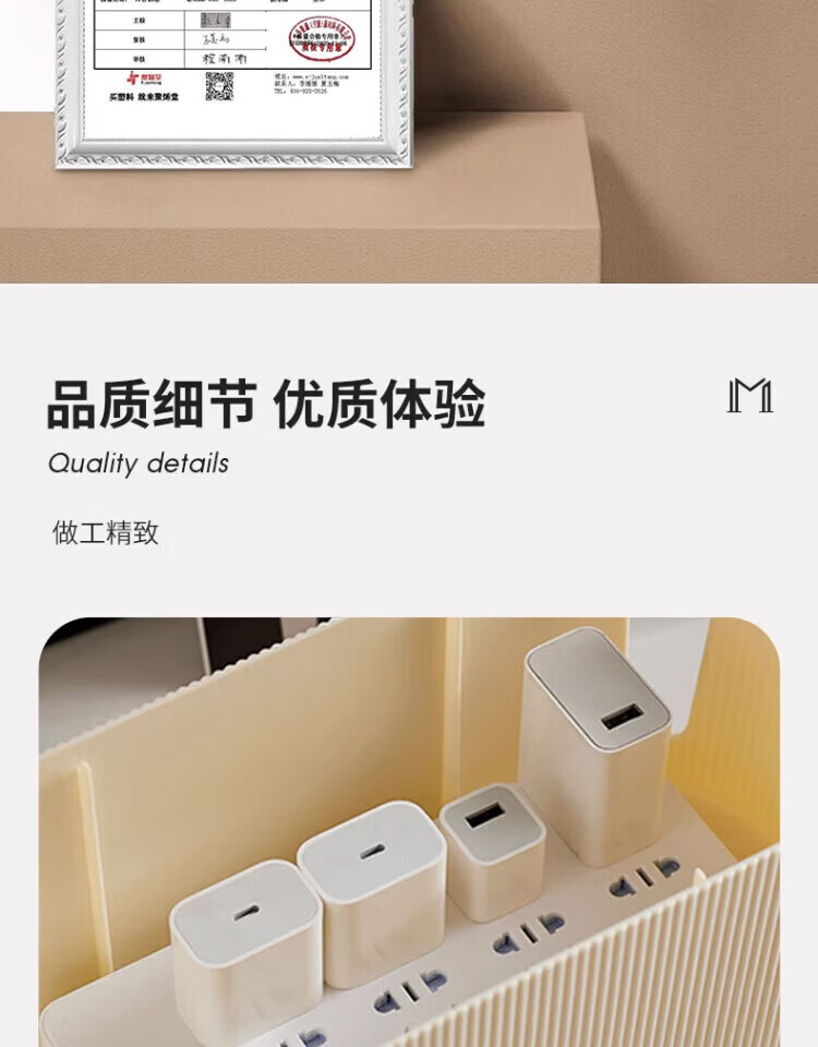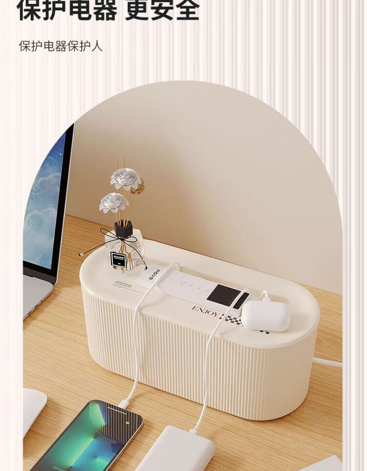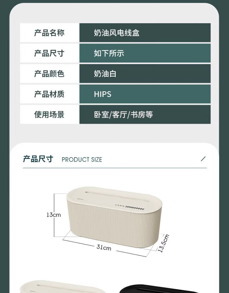 木格格数据线收纳盒充电线收纳盒充电器遥控器收纳盒桌面储物盒置物盒子 奶油白盖子遮挡神器收纳盒