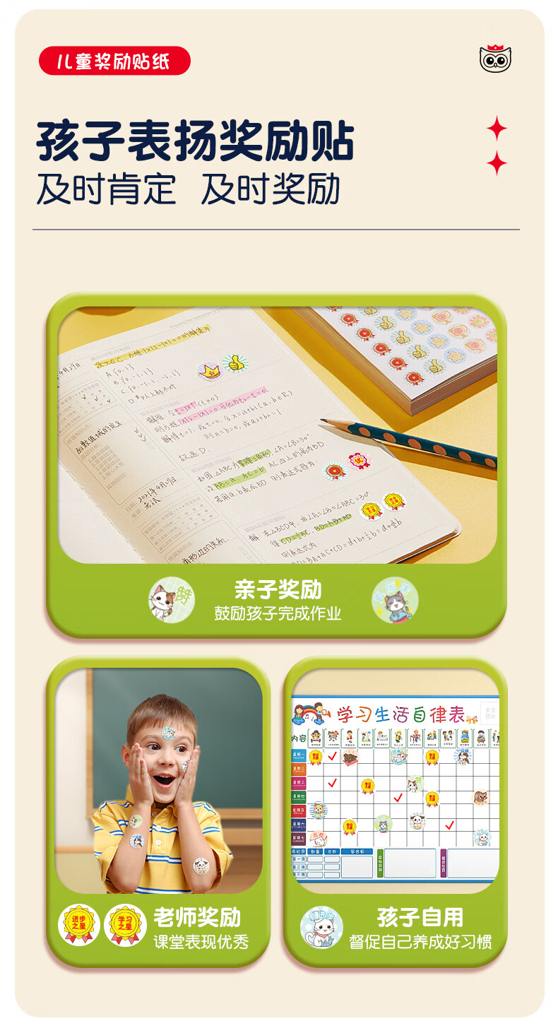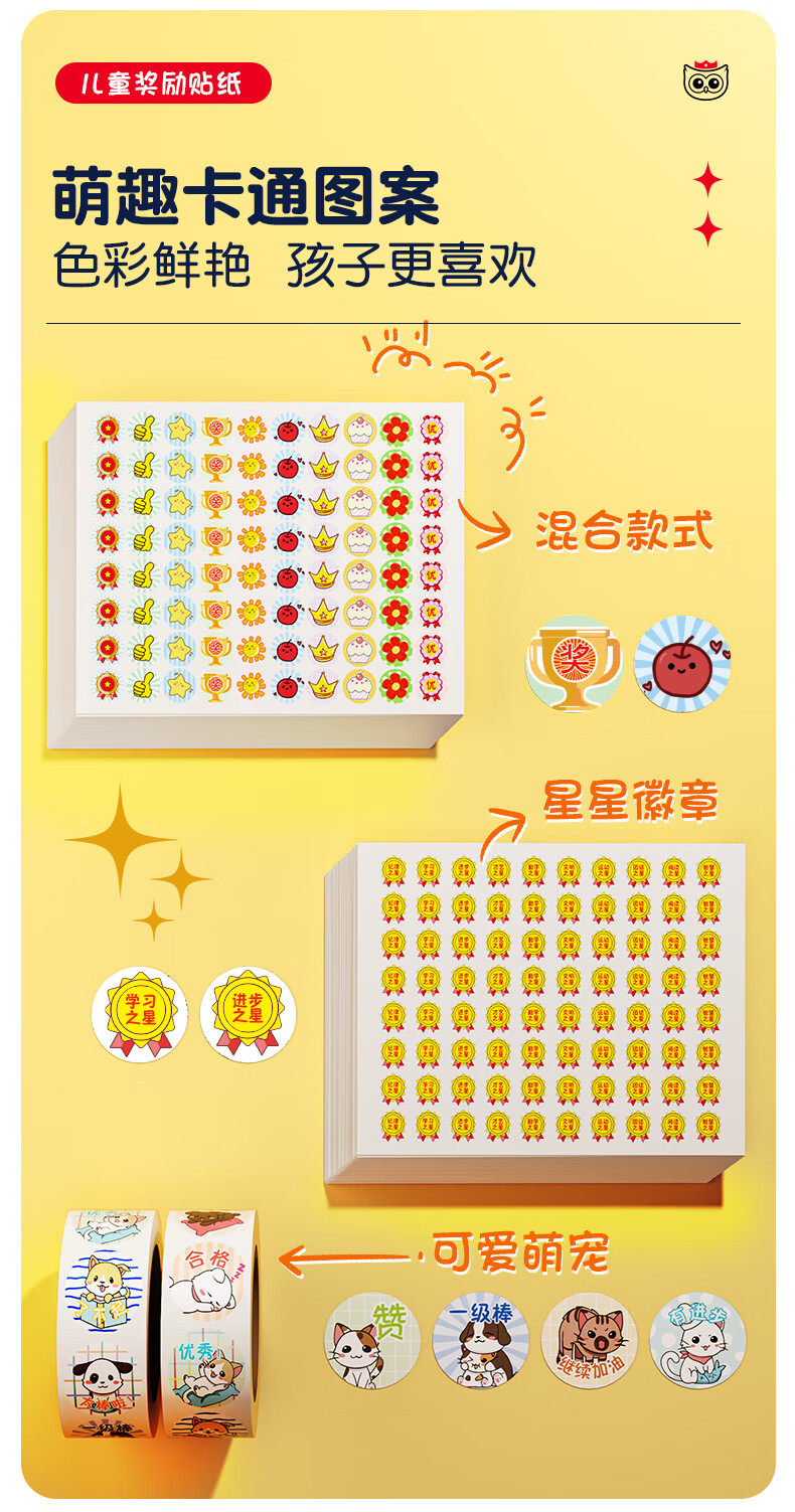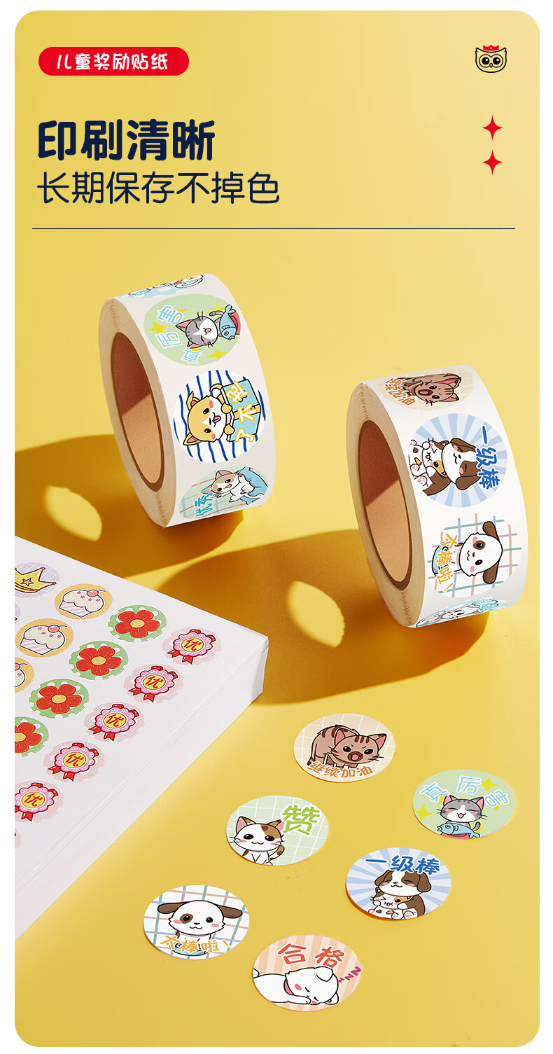 猫太子小红花奖励贴纸儿童贴画幼儿园表扬贴纸教师用自律打卡表鼓励贴贴画习惯养成神器 混合贴纸4000枚/50张
