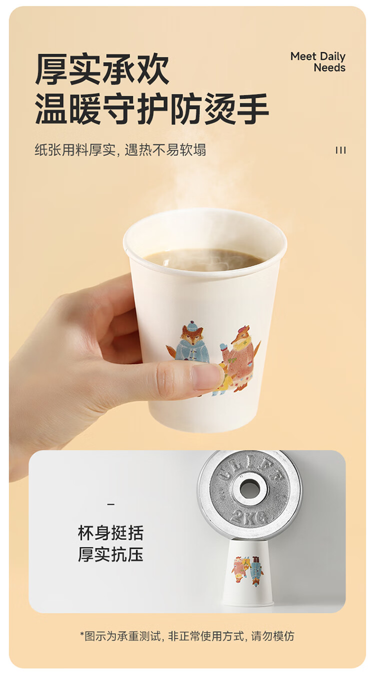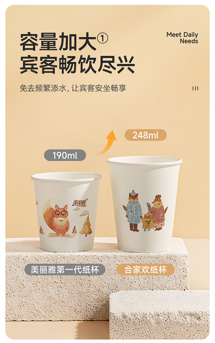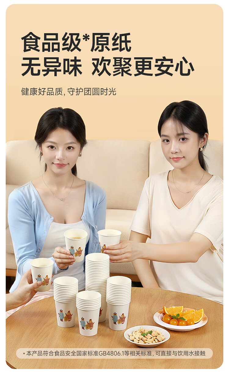 美丽雅纸杯一次性杯子 248ml*60只大号加厚食品级办公商务家用水杯