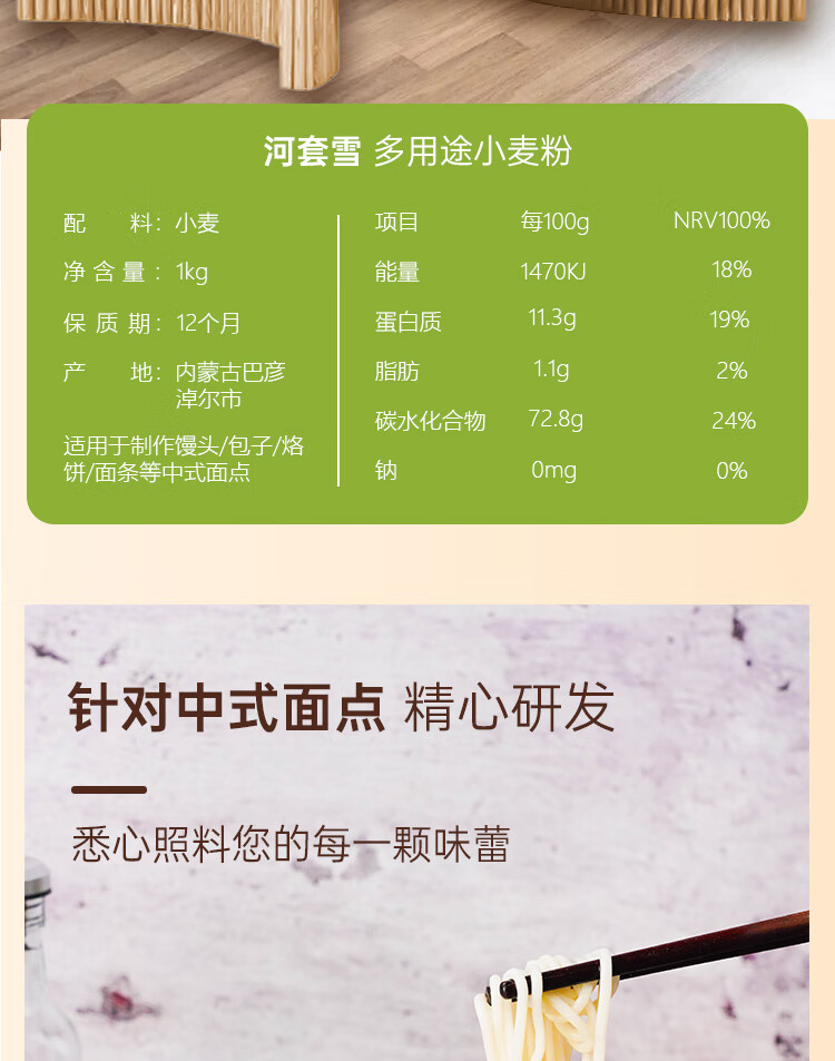 河套雪2斤 小麦面粉面粉馒头粉家用粉多用途粉 中华老字号