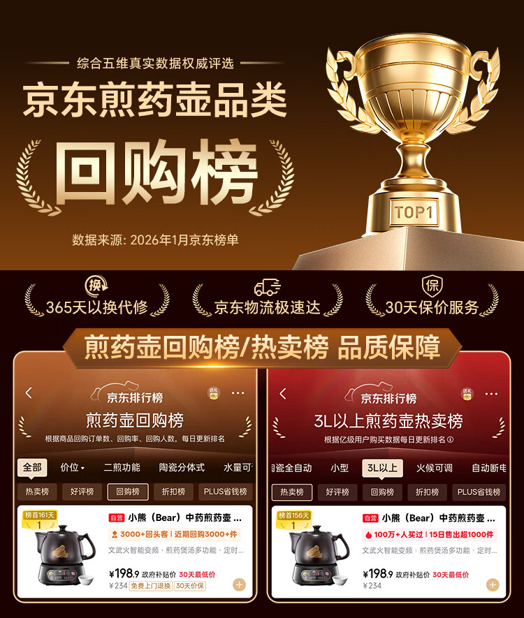 小熊(Bear)中药煎药壶 中药锅 熬药电砂锅全自动中药罐 中药煲3升大容量分体式陶瓷 JYH-A30A1